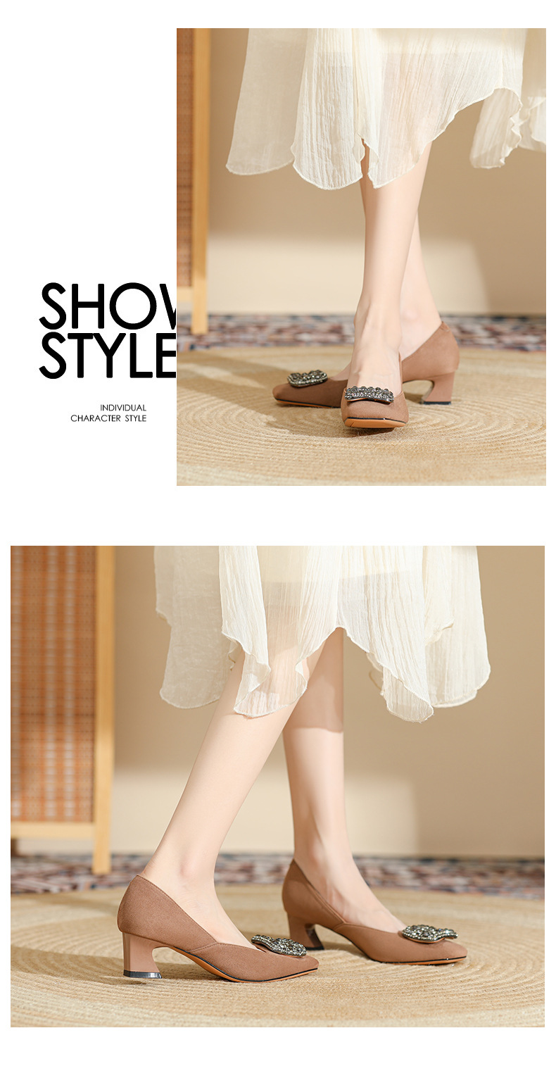 Đôi giày nữ với thiết kế mũi vuông và quai ngang cài đá lấp lánh, mang đến vẻ đẹp thanh lịch. Form giày ôm chân vừa vặn, phần gót hình vuông vững chãi giúp bạn dễ dàng di chuyển. Chất liệu da mềm mại tạo cảm giác thoải mái khi mang trong thời gian dài. Sản phẩm phù hợp để phối cùng nhiều kiểu trang phục khác nhau như quần âu hay váy liền, cho bạn thêm phần tự tin trong những dịp gặp gỡ hàng ngày. | Tên sản phẩm: Giày Cao Gót Nữ Gắn Đá Gót Vuông - Giày Dép Nữ | Mã sản phẩm: k0197 - Giá: 890.000đ | Mã nhà sản xuất: HURYAN-G03Hình ảnh sản phẩm