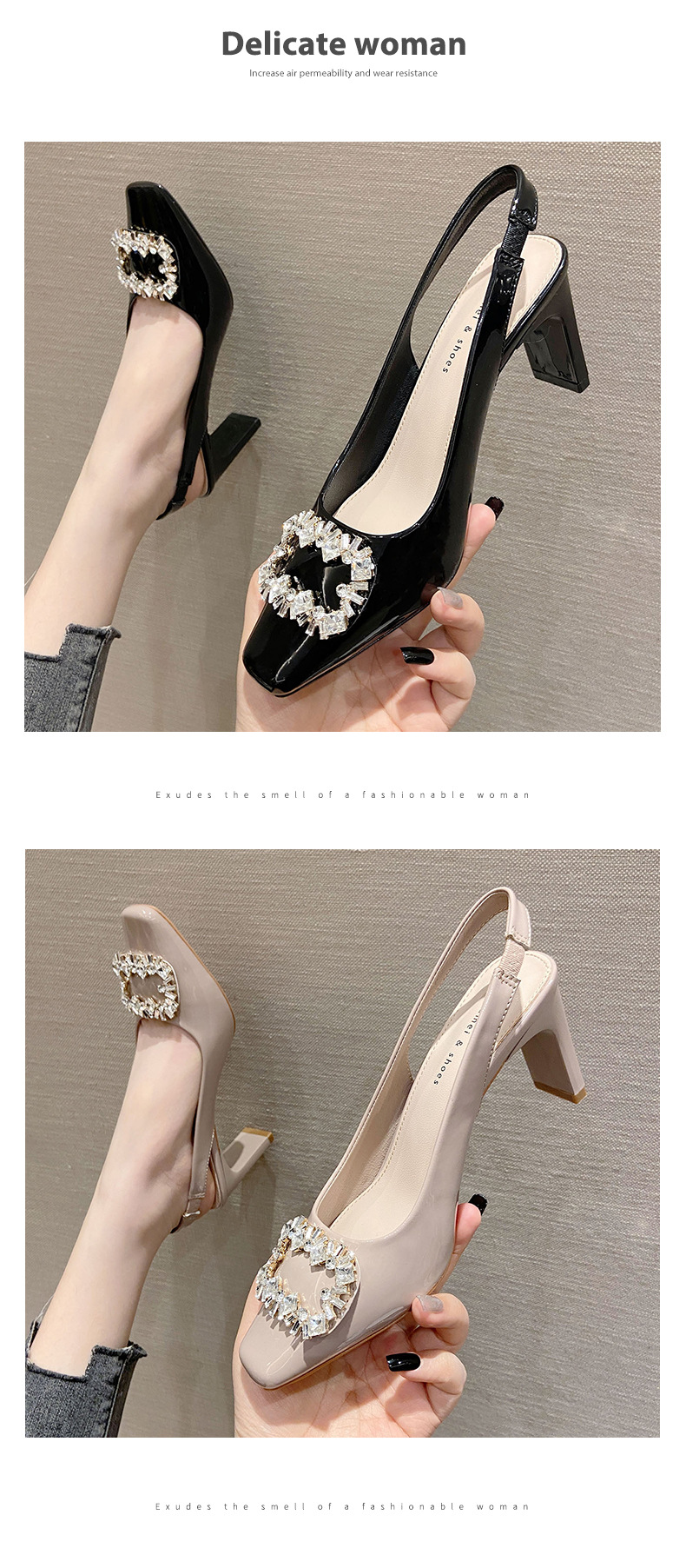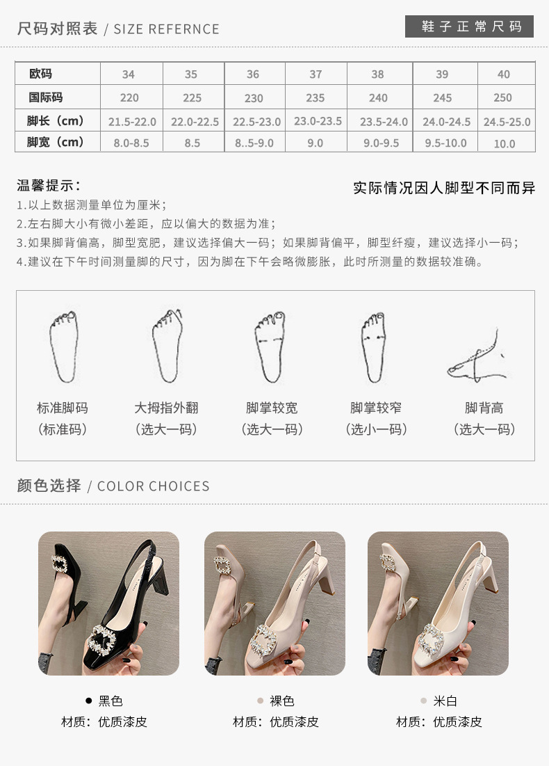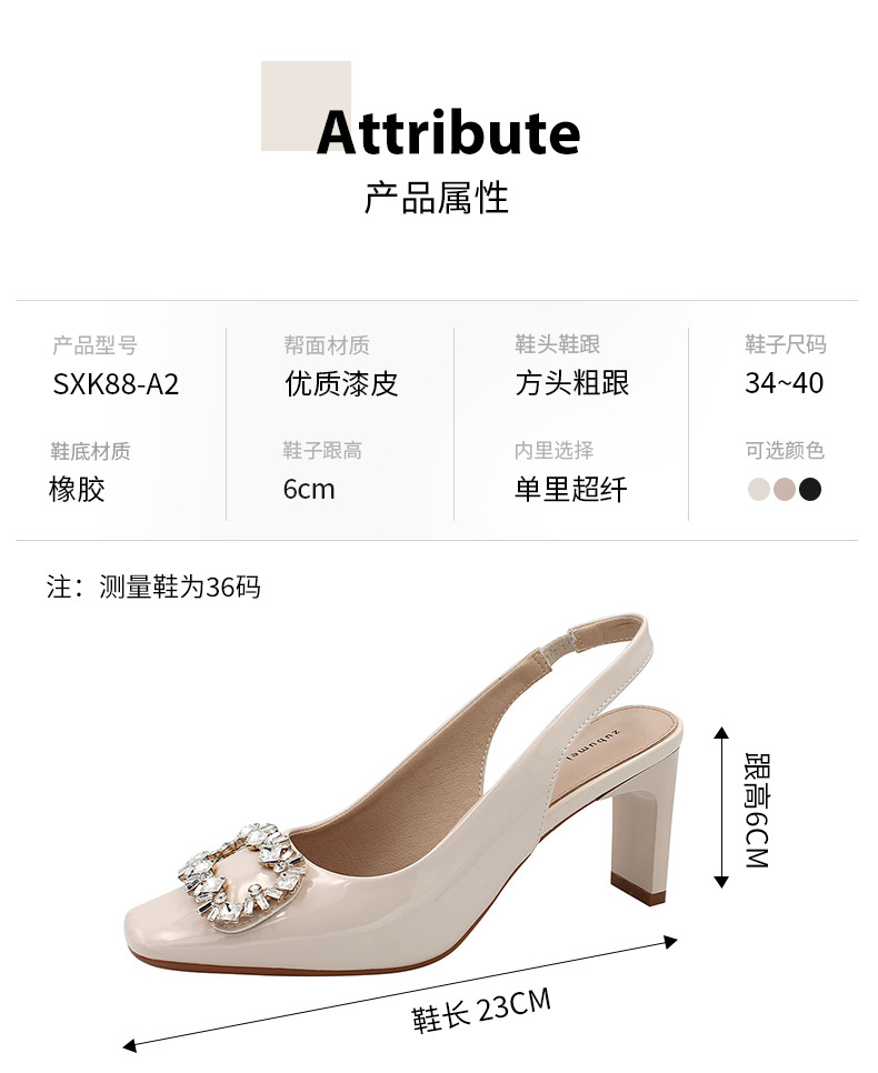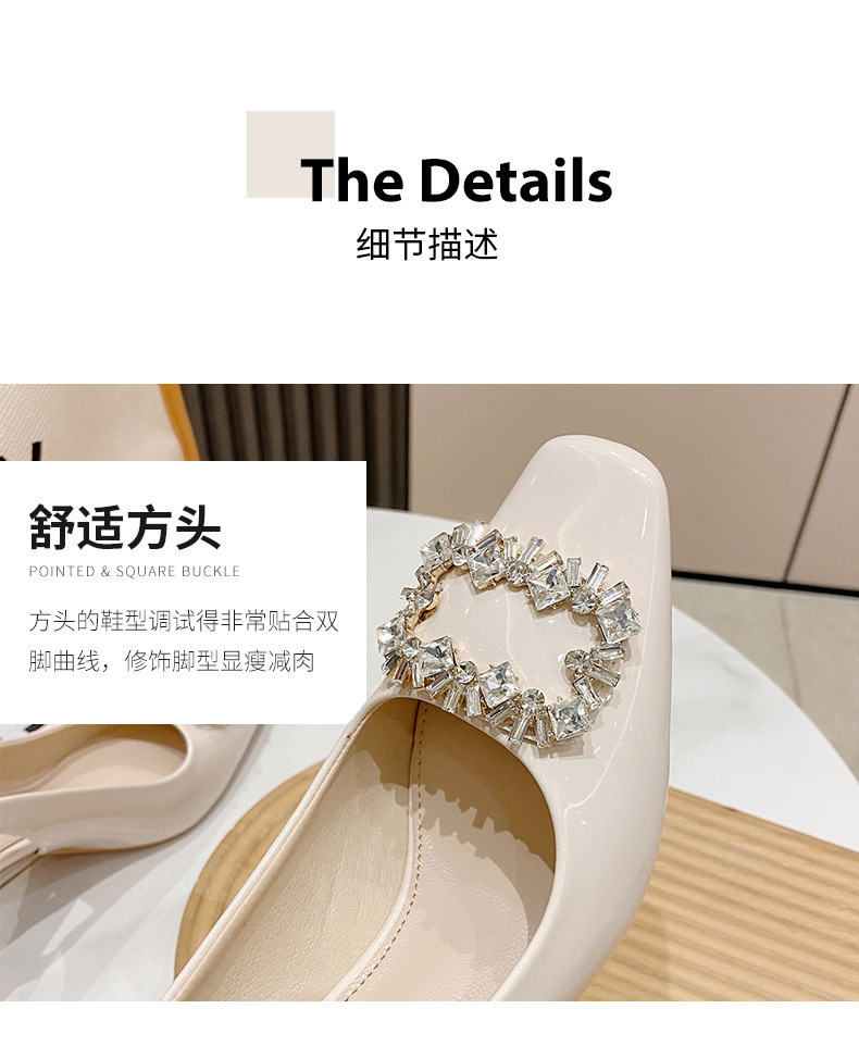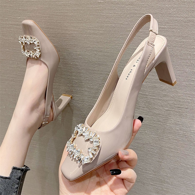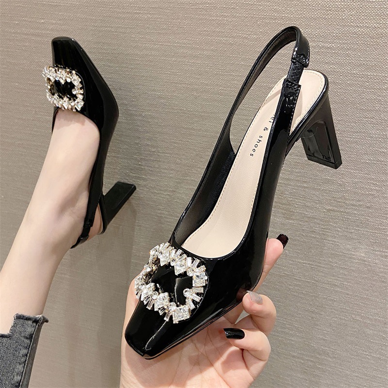 Đôi giày này có phần mũi vuông và mặt ngoài bóng, tạo nên vẻ ngoài thời trang. Điểm nhấn là chi tiết khóa hình vuông được gắn hạt lấp lánh, rất nổi bật. Kiểu dáng phối hợp giữa phần che mũi và hở gân chân, mang phong cách trẻ trung. Đế giày chắc chắn với độ cao vừa phải, giúp bạn di chuyển thoải mái. Bạn có thể dễ dàng phối cùng nhiều loại trang phục khác nhau để tạo điểm nhấn. | Tên sản phẩm: Giày Cao Gót Nữ Gắn Đá Gót Vuông Phong Cách Hàn Quốc - Giày Dép Nữ | Mã sản phẩm: k0211 - Giá: 890.000đ | Mã nhà sản xuất: HURYAN-G03Hình ảnh sản phẩm