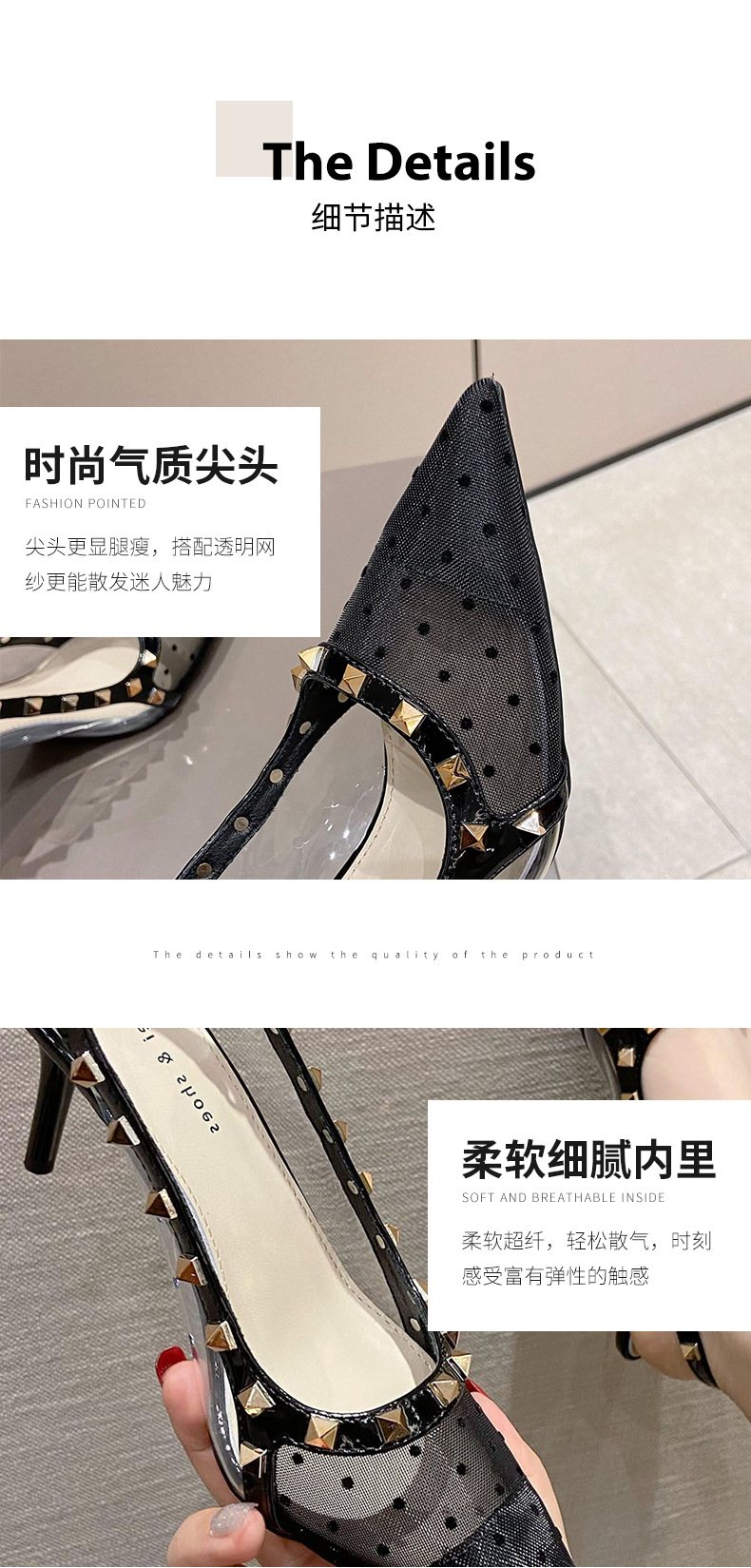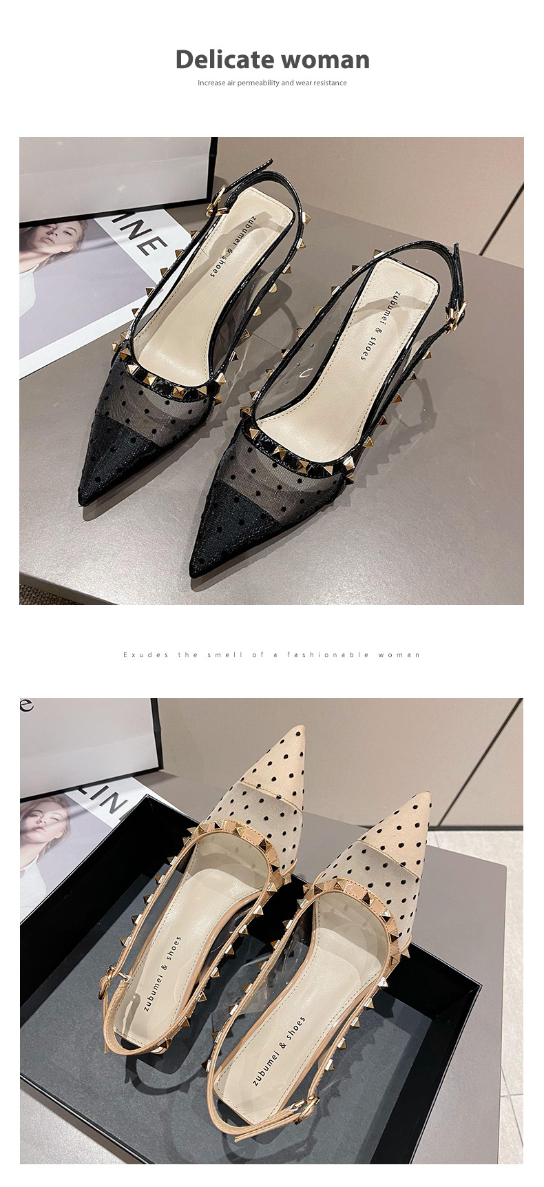 Giày cao gót nữ thiết kế mũi nhọn và gót thanhai mảnh, mang phong cách trẻ trung hiện đại. Sản phẩm có phần thân làm từ chất liệu vải lưới mềm mại, thoáng khí, phù hợp cho những ngày hè. Kiểu dáng kín mũi và hở gót tạo nên vẻ thanh thoát. Bạn có thể kết hợp đôi giày này cùng nhiều loại trang phục khác nhau như quần âu, váy liền để đi làm, dự tiệc hoặc gặp gỡ bạn bè. | Tên sản phẩm: Giày Cao Gót Nữ Mũi Nhọn Gót Nhọn Hàng Mùa Hè Phong Cách Hàn Quốc - Giày Dép Nữ | Mã sản phẩm: k0213 - Giá: 910.000đ | Mã nhà sản xuất: HURYAN-G03Hình ảnh sản phẩm