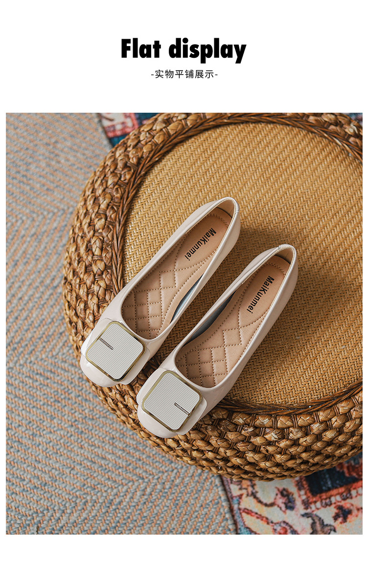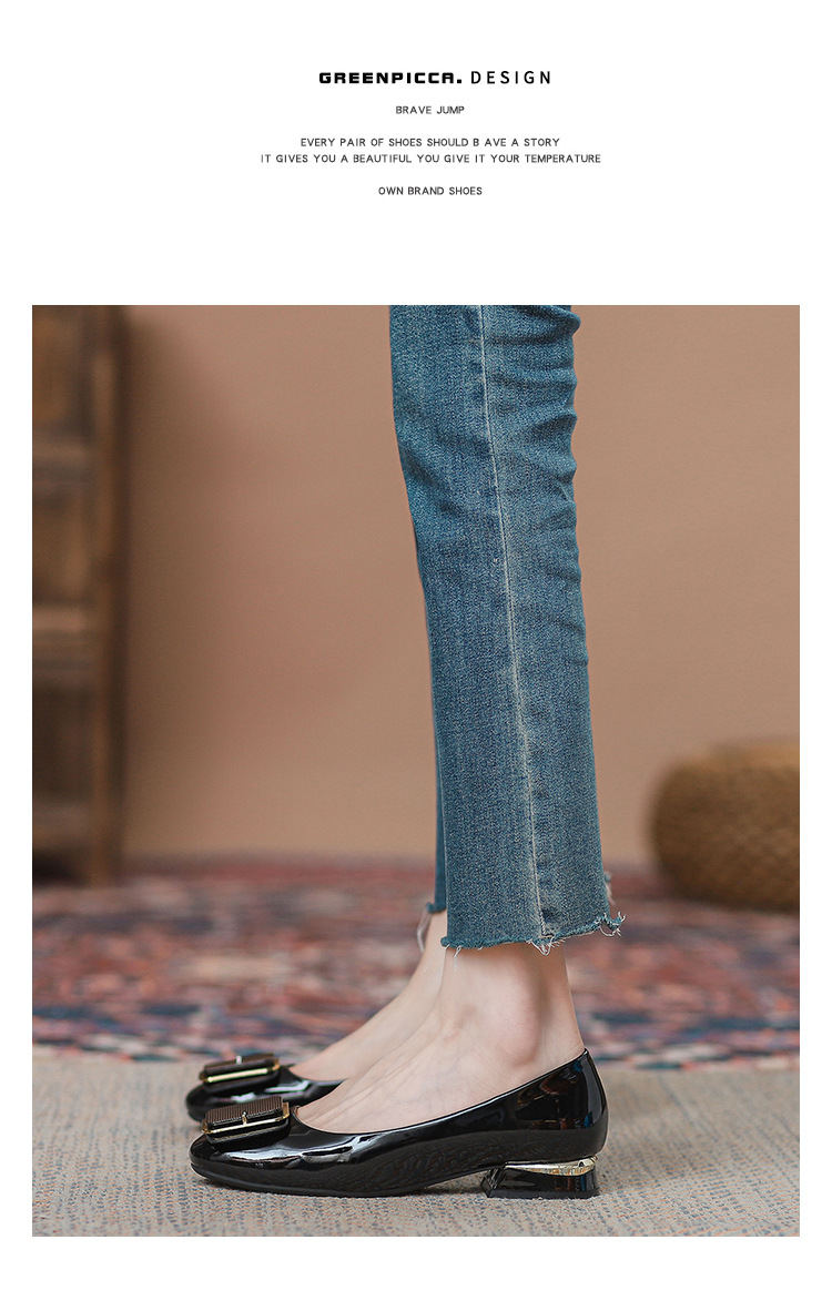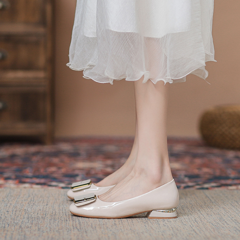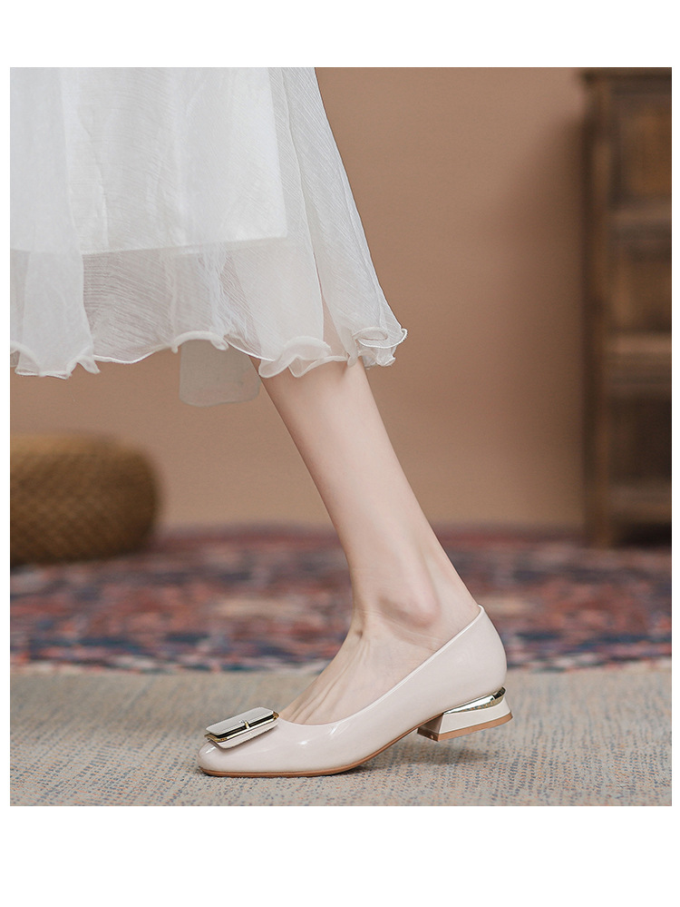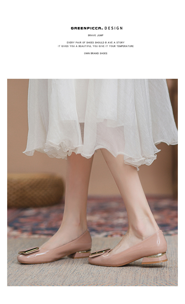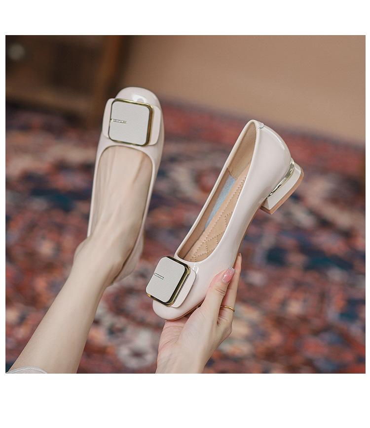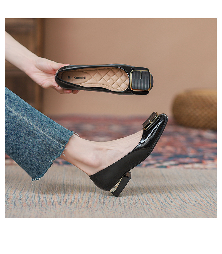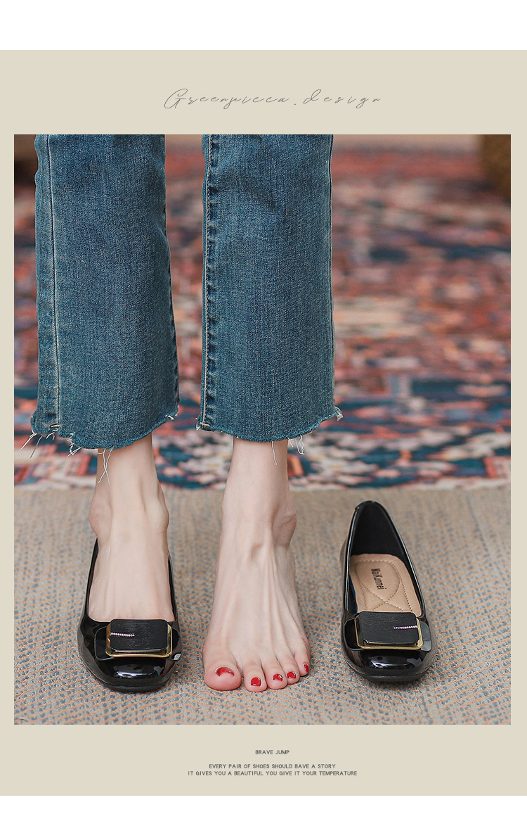 Đôi giày này có phần mũi vuông và dáng thấp vừa phải, tạo cảm giác thoải mái khi mang. Chất liệu chính từ da thật, bề mặt bóng nhẹ. Kiểu dáng cổ điển, phù hợp để kết hợp với nhiều loại trang phục khác nhau như quần âu hay váy. Bạn có thể dùng để đi làm, dạo phố hoặc trong các buổi gặp mặt thông thường. Chỉ cần lau nhẹ bằng vải mềm để giữ giày sạch đẹp. | Tên sản phẩm: Giày Cao Gót Nữ Chất Liệu Da Bò Gót Vuông Hàng Mùa Xuân Thu Đông - Giày Dép Nữ | Mã sản phẩm: K0257 - Giá: 610.000đ | Mã nhà sản xuất: JUTYAL-G02Hình ảnh sản phẩm