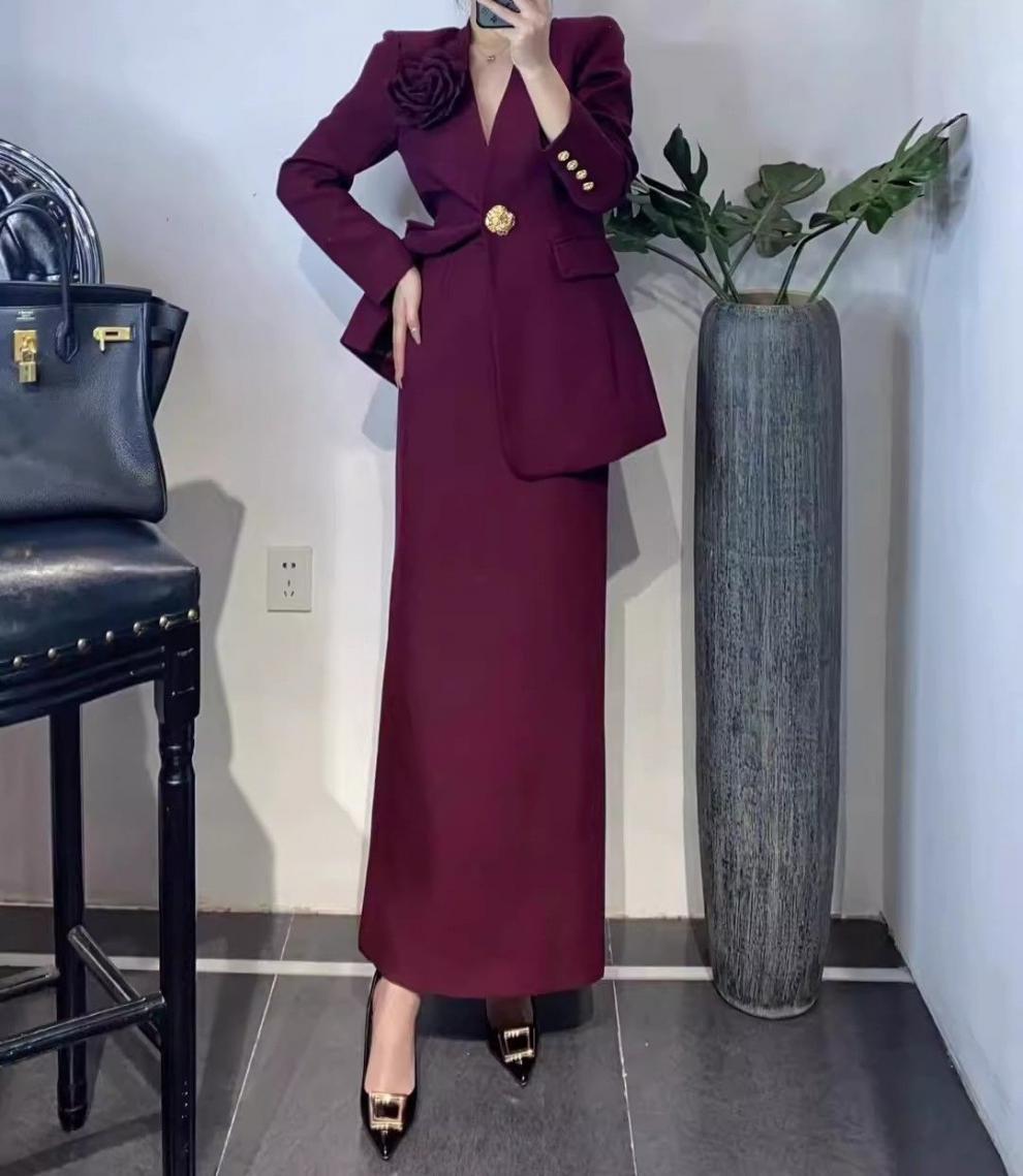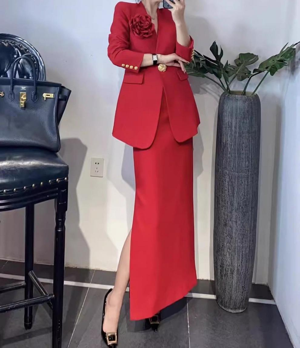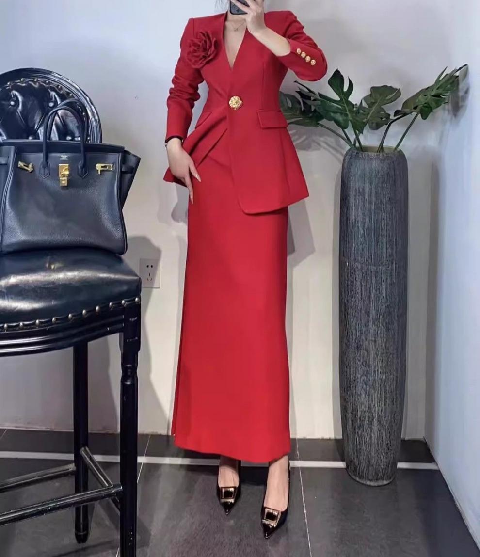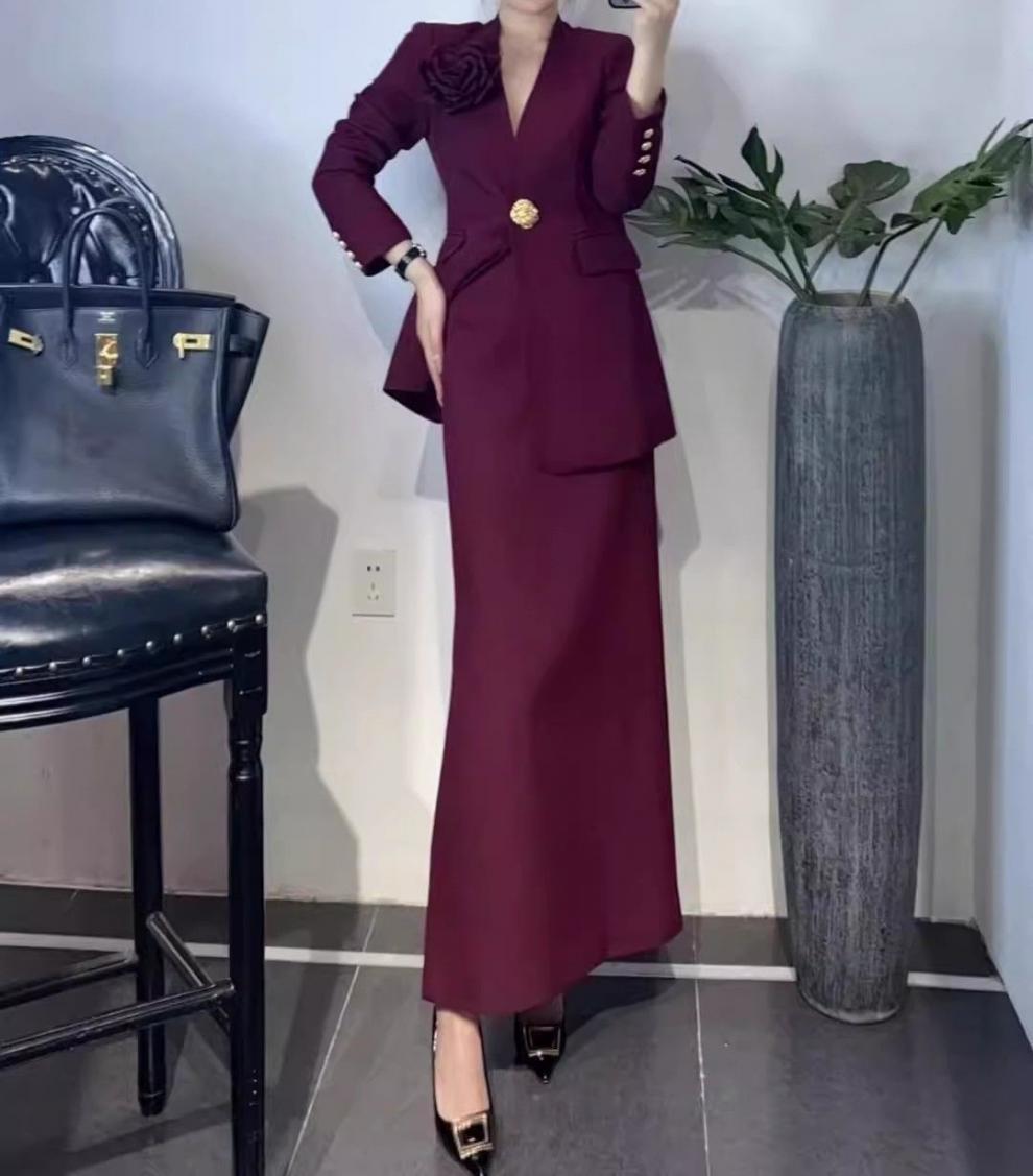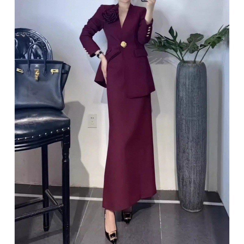 Bộ trang phục công sở này có áo khoác tôn dáng với hàng cúc ánh vàng tinh tế, điểm thêm họa tiết hoa nhẹ nhàng. Chân váy cao cạp ôm vừa vặn, giúp tạo điểm nhấn cho vòng eo. Chất vải dày dặn, phù hợp mặc trong tiết trời xuân hoặc thu. Có thể mặc nguyên bộ để tạo phong cách chỉn chu, hoặc tách riêng từng món để phối đồ linh hoạt. Kiểu dáng phù hợp cho môi trường làm việc. | Tên sản phẩm: Áo Vest Nữ Vest Họa Tiết Hoa Hàng Mùa Xuân Thu Đông Đồ Công Sở - Thời Trang Nữ | Mã sản phẩm: k0263 - Giá: 3.140.000đ | Mã nhà sản xuất: CHTYAI-G06Hình ảnh sản phẩm