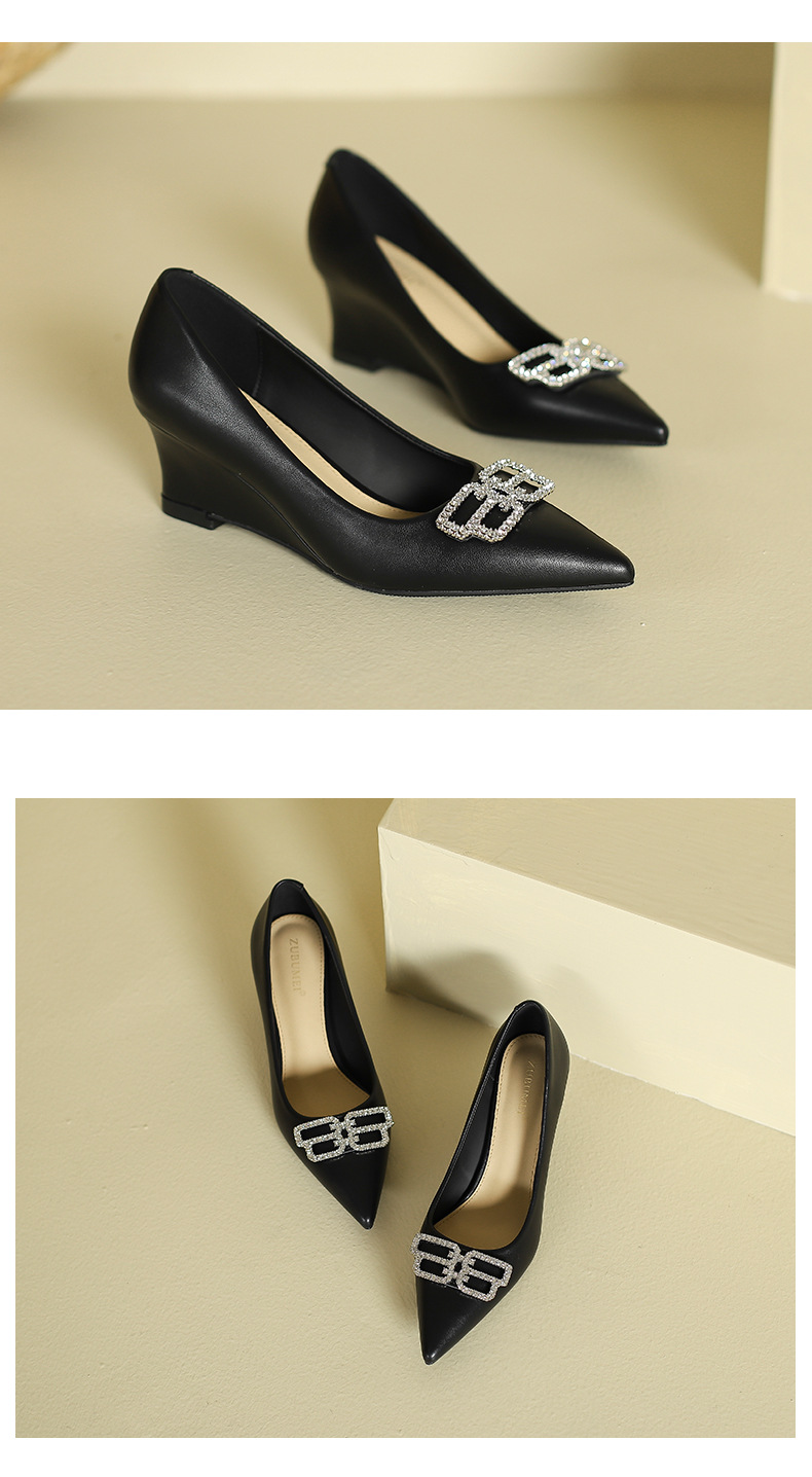 Giày cao gót kiểu dáng mũi nhọn, phong cách thời trang với phần đế được thiết kế có độ dốc thoải mái, tôn dáng người đi. Điểm nhấn là chi tiết khóa vuông được đính những hạt pha lê lấp lánh tinh tế. Mẫu giày này phù hợp để phối cùng nhiều trang phục khác nhau như quần âu, váy liền. Bạn có thể mang chúng trong các buổi gặp mặt hoặc khi đi làm để tạo điểm nhấn nổi bật. | Tên sản phẩm: Giày Cao Gót Nữ Gắn Đá Mũi Nhọn Đế Xuồng Đế Cao Phong Cách Âu Mỹ - Giày Dép Nữ | Mã sản phẩm: k0265 - Giá: 920.000đ | Mã nhà sản xuất: HURYAN-G03Hình ảnh sản phẩm