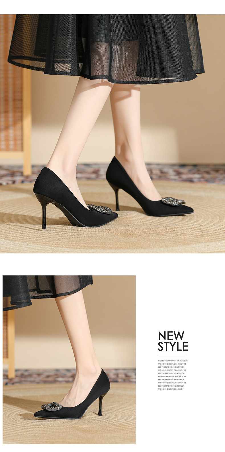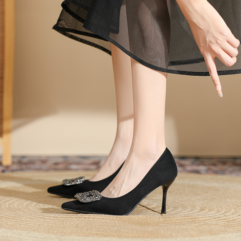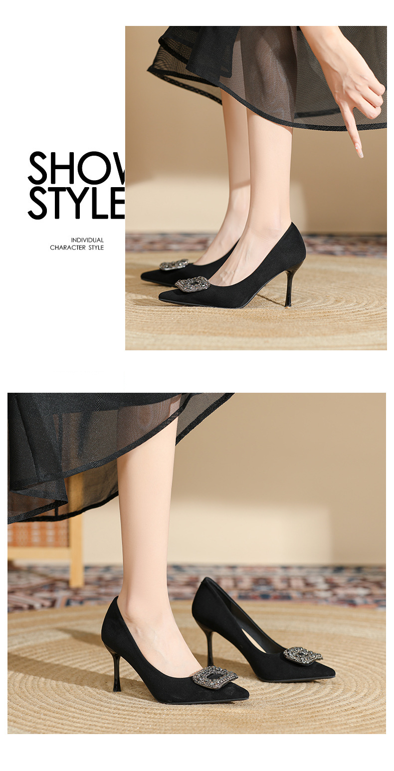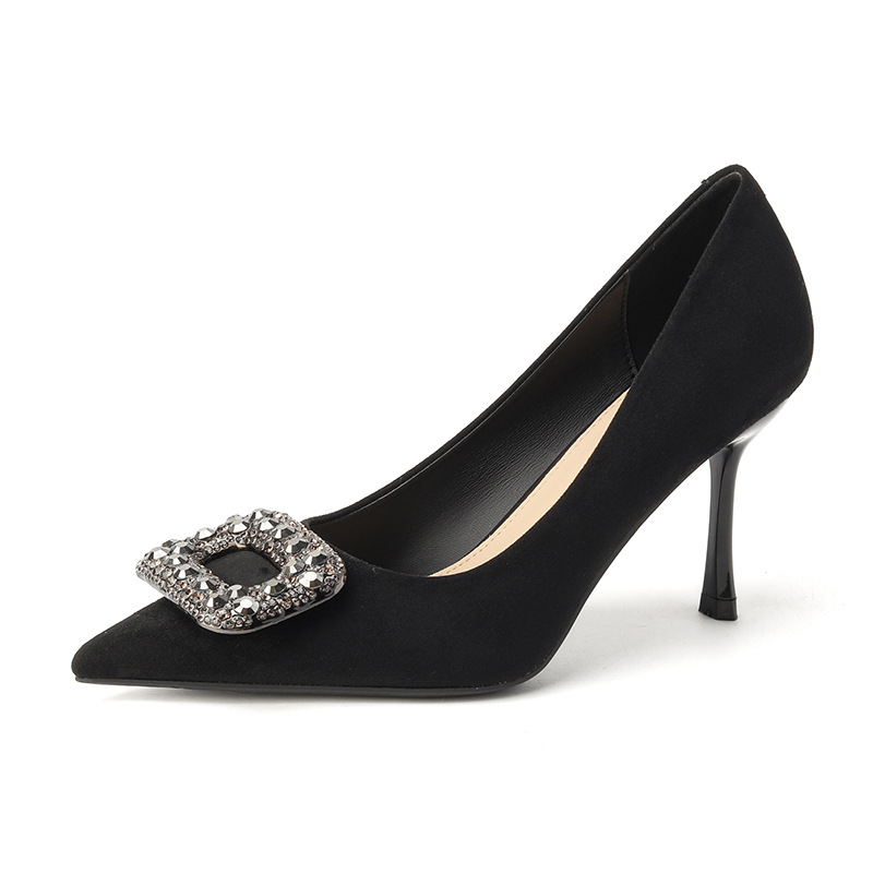 Đôi giày này có phần mũi nhọn và gót nhọn thanh thoát, điểm nhấn là chiếc nơ vuông được đính những hạt pha lê lấp lánh tinh tế. Kiểu dáng mang phong cách Pháp nhẹ nhàng, phù hợp để đi trong các buổi tiệc hoặc làm giày cho phụ nữ phụ dâu. Sản phẩm có thiết kế ôm chân vừa vặn, giúp tôn lên dáng vẻ của người mang. Khi sử dụng, bạn nên chọn size phù hợp với bàn chân để cảm thấy dễ chịu khi di chuyển. | Tên sản phẩm: Giày Cao Gót Nữ Gắn Đá Mũi Nhọn Gót Nhọn - Giày Dép Nữ | Mã sản phẩm: k0269 - Giá: 870.000đ | Mã nhà sản xuất: HURYAN-G03Hình ảnh sản phẩm