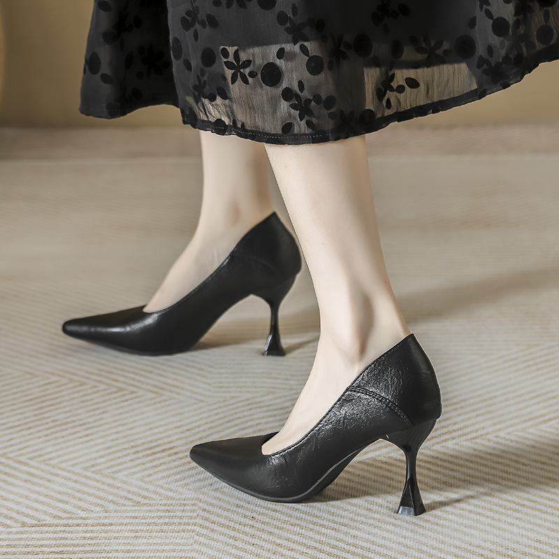 Đôi giàu này có phần mũi nhọn và gót thanhai mảnh, tạo dáng thanh lịch phù hợp cho môi trường công sở. Sản phẩm được làm từ chất liệu da mềm mại, ôm chân nhẹ nhàng giúp bạn di chuyển thoải mái cả ngày dài. Kiểu dáng dễ dàng phối hợp với nhiều trang phục khác nhau như quần tây, váy liền hay chân váy. Bạn có thể sử dụng như giàu đi làm hàng ngày, mang đến vẻ ngoại chỉn chu và tự tin. | Tên sản phẩm: Giày Cao Gót Nữ Mũi Nhọn Đồ Công Sở - Giày Dép Nữ | Mã sản phẩm: K0275 - Giá: 500.000đ | Mã nhà sản xuất: JUTYAL-G01Hình ảnh sản phẩm