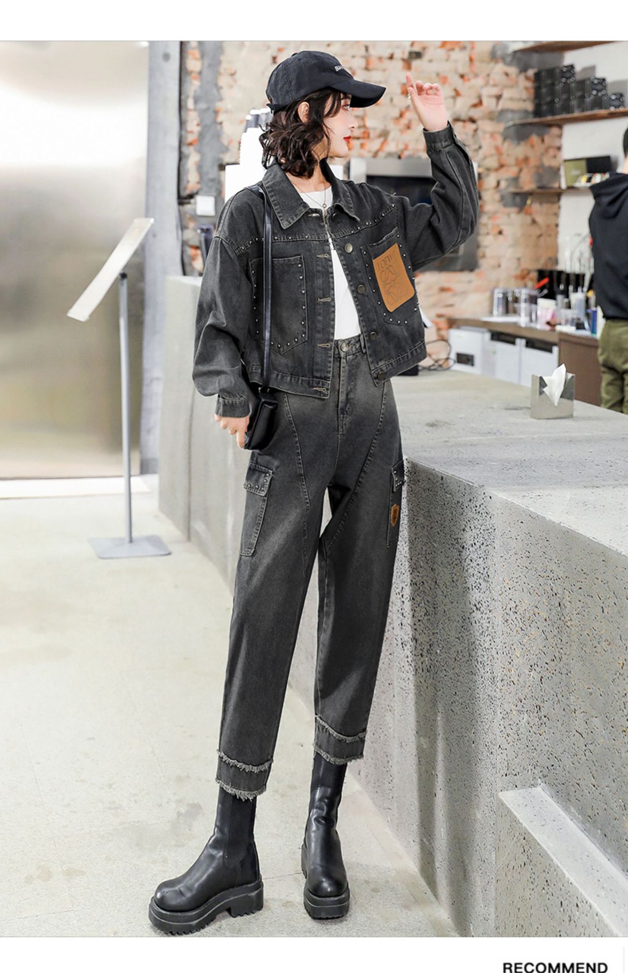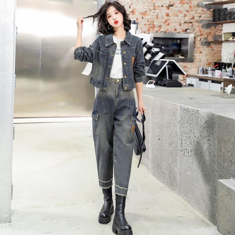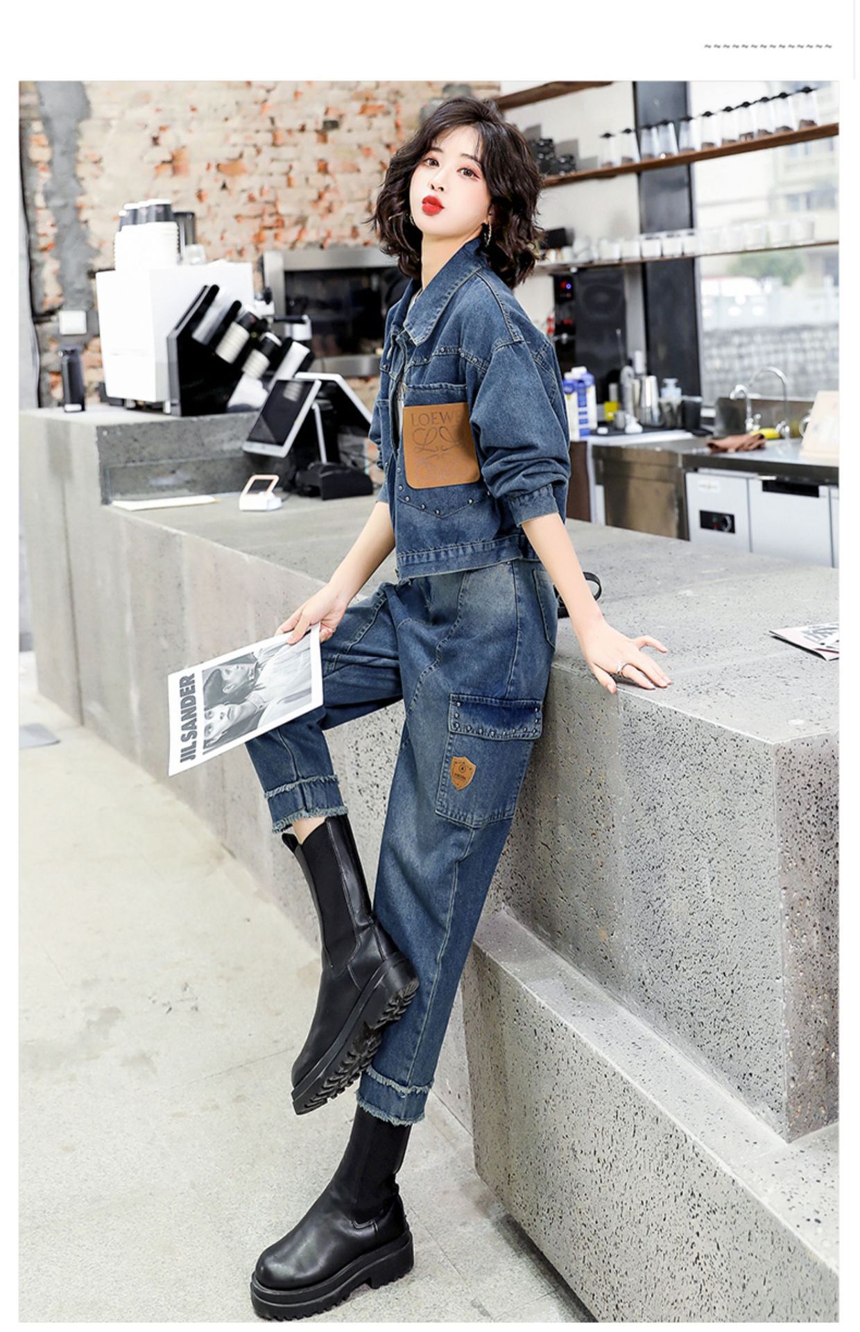 Bộ trang phục hai mảnh từ chất liệu vải bò, mang đến sự thoải mái và năng động cho người mặc. Kiểu dáng được thiết kế tinh tế, giúp tôn lên vóc dáng một cách nhẹ nhàng. Sản phẩm rất phù hợp để sử dụng trong tiết trời thu hoặc những ngày se lạnh. Bạn có thể mặc đi làm, đi chơi hay dạo phố cùng bạn bè. Phối áo khoác với quần short hoặc quần dài tùy thích để tạo nên những phong cách khác nhau. | Tên sản phẩm: Đồ Bộ Nữ Chất Liệu Jean Bò Cả Bộ 2 Món Hàng Mùa Xuân Thu Đông - Thời Trang Nữ | Mã sản phẩm: K0286 - Giá: 2.020.000đ | Mã nhà sản xuất: WODTH-G05Hình ảnh sản phẩm