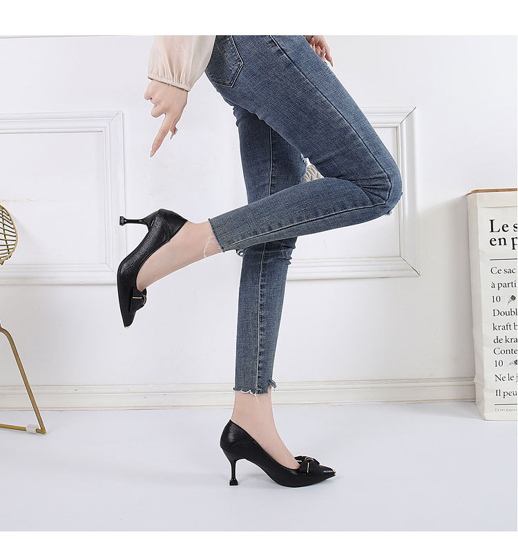 Đôi giày này có phần mũi thon được điểm xuyến nơ bướm mềm mại và hoa văn mảnh m, tạo nên vẻ đẹp nhẹ nhàng. Kiểu dáng theo xu hướng mới với gót nhọn thanh thoát, phù hợp khi bạn làm việc hay dự các sự kiện. Chất liệu bên trong êm ái, giúp đôi chân thoải mái suốt ngày dài. Bạn chỉ cần xỏ chân vào, điều chỉnh dây cho vừa vặn là có thể tự tin bước đi. | Tên sản phẩm: Giày Cao Gót Nữ Thắt Nơ Bướm Họa Tiết Hoa Phong Cách Hàn Quốc Đồ Công Sở - Giày Dép Nữ | Mã sản phẩm: K0302 - Giá: 530.000đ | Mã nhà sản xuất: JUTYAL-G01Hình ảnh sản phẩm