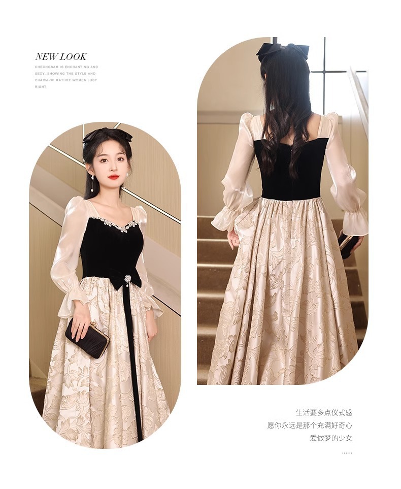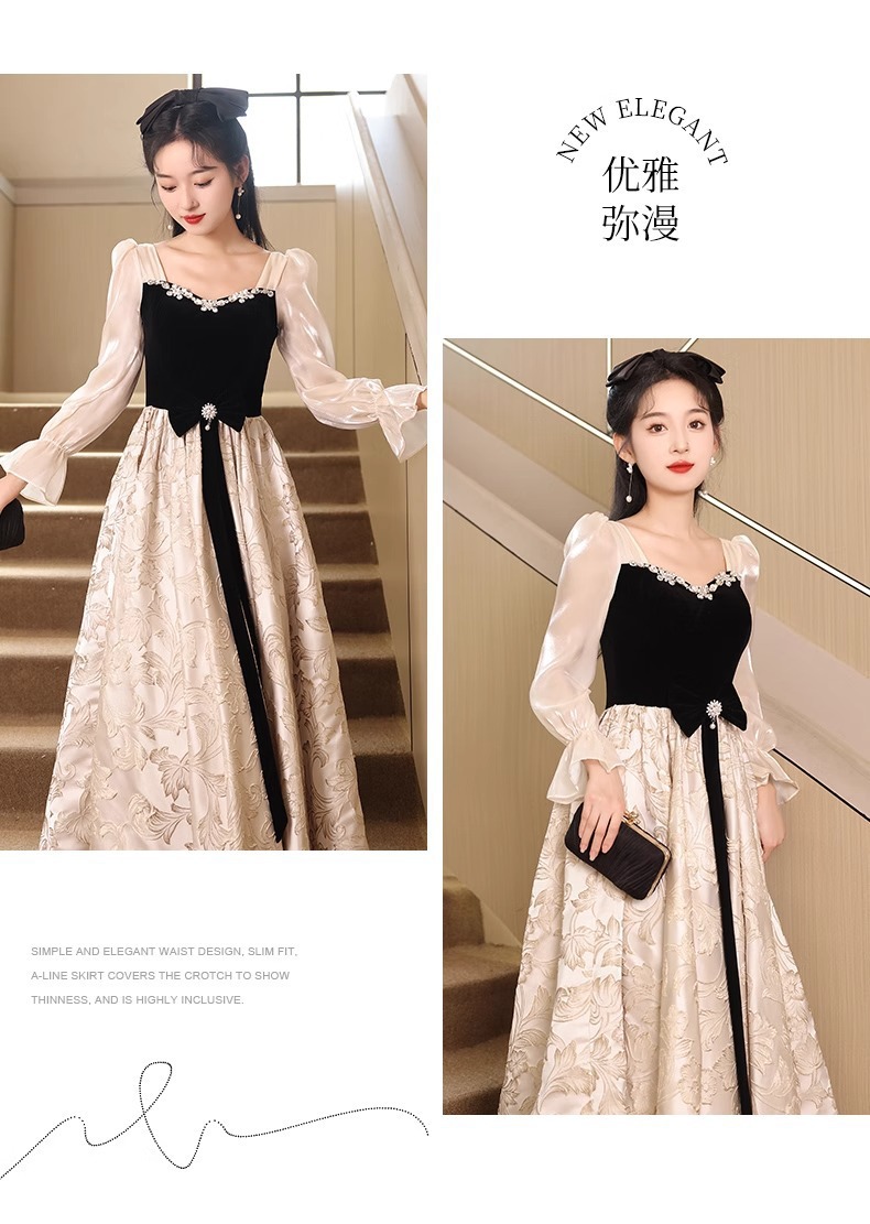 Váy dự tiệc tay dài dành cho nữ, kiểu dáng thanh lịch phù hợp nhiều dịp như hội nghị, buổi biểu diễn hay dạ hội. Thiết kế ôm nhẹ cơ thể tôn dáng, phần tay dài và cổ điển mang đến vẻ ngoại hình duyên dáng. Chất vải mềm mại giúp người mặc thoải mái vận động trong suốt buổi tiệc. Sản phẩm dễ dàng phối cùng phụ kiện và giày cao gót để hoàn thiện bộ trang phục. | Tên sản phẩm: Váy Đầm Liền Thân Dự Tiệc Nữ Dài Tay - Thời Trang Nữ | Mã sản phẩm: K0316 - Giá: 1.520.000đ | Mã nhà sản xuất: XUTYYU-G04Hình ảnh sản phẩm