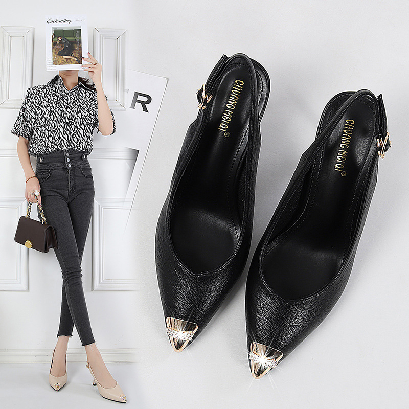 Giày sandal nữ thiết kế mũi nhọn và gót nhọn thanh thoát, phù hợp thời tiết ấm áp. Chất da mềm mại ôm chân nhẹ nhàng. Phần gót được điểm xuyến thêm chi tiết óng ánh tinh tế. Kiểu dáng hở gót giúp đôi chân thoáng mát và dễ dàng di chuyển. Bạn có thể phối cùng nhiều loại trang phục khác nhau để tạo điểm nhấn nổi bật. | Tên sản phẩm: Giày Cao Gót Nữ Gắn Đá Mũi Nhọn Gót Nhọn Hàng Mùa Xuân Thu Đông - Giày Dép Nữ | Mã sản phẩm: K0317 - Giá: 510.000đ | Mã nhà sản xuất: JUTYAL-G01Hình ảnh sản phẩm