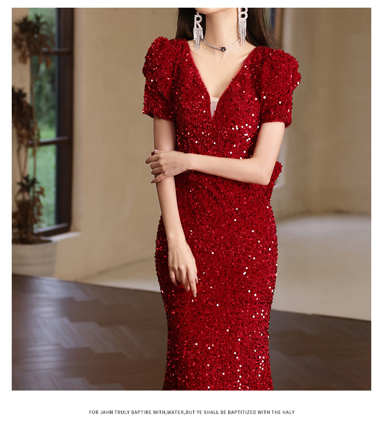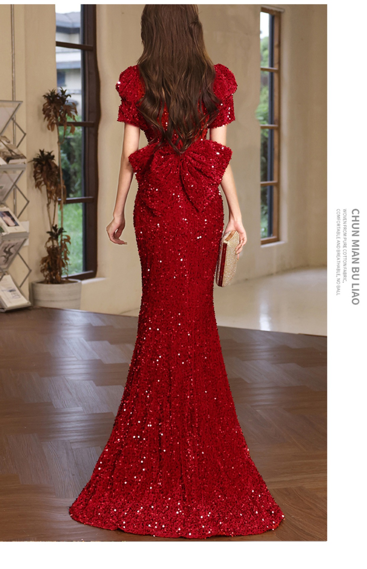 Váy dự tiệc dành cho cô dâu trong ngày cưới, với thiết kế đuôi cá ôm sáng tạo tôn lên đường nét cơ thể. Chất liệu vải đỏ thắm điểm xuyết những mảnh ánh sáng lấp lánh tinh tế, tạo nên điểm nhấn nổi bật mà vẫn thanh lịch. Sản phẩm phù hợp cho các buổi tiệc đính hôn, lễ cưới hoặc dẫn chương trình. Mặc kết hợp cùng phụ kiện nhẹ để hoàn thiện bộ trang phục. | Tên sản phẩm: Váy Đầm Liền Thân Dự Tiệc Nữ Kiểu Đuôi Cá Dùng Trong Lễ Cưới Ngày Cưới - Thời Trang Nữ | Mã sản phẩm: K0327 - Giá: 1.520.000đ | Mã nhà sản xuất: XUTYYU-G04Hình ảnh sản phẩm