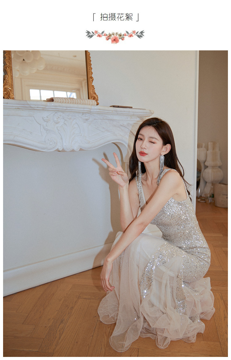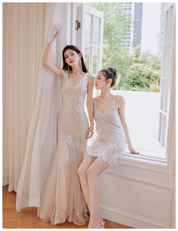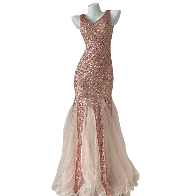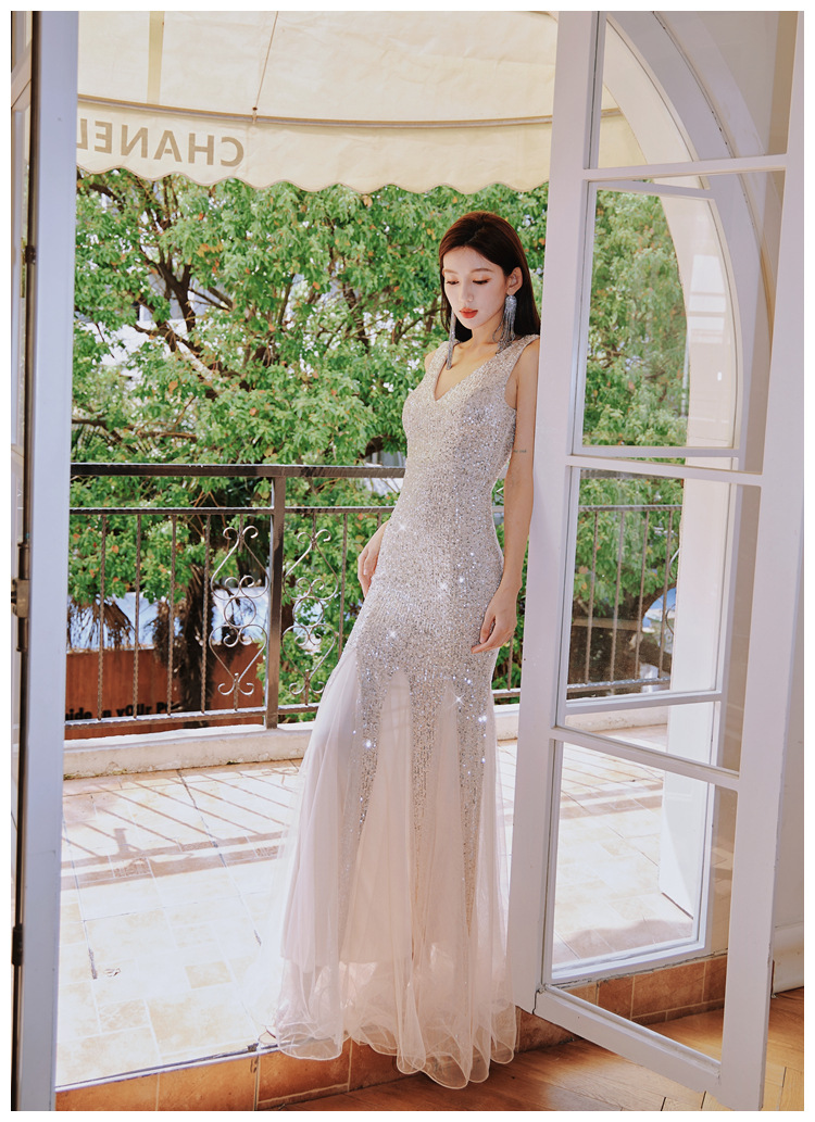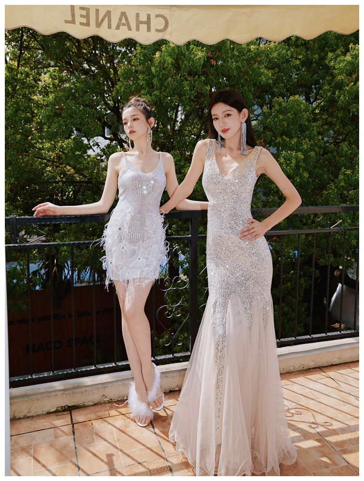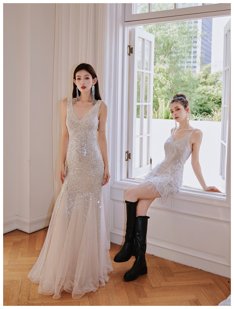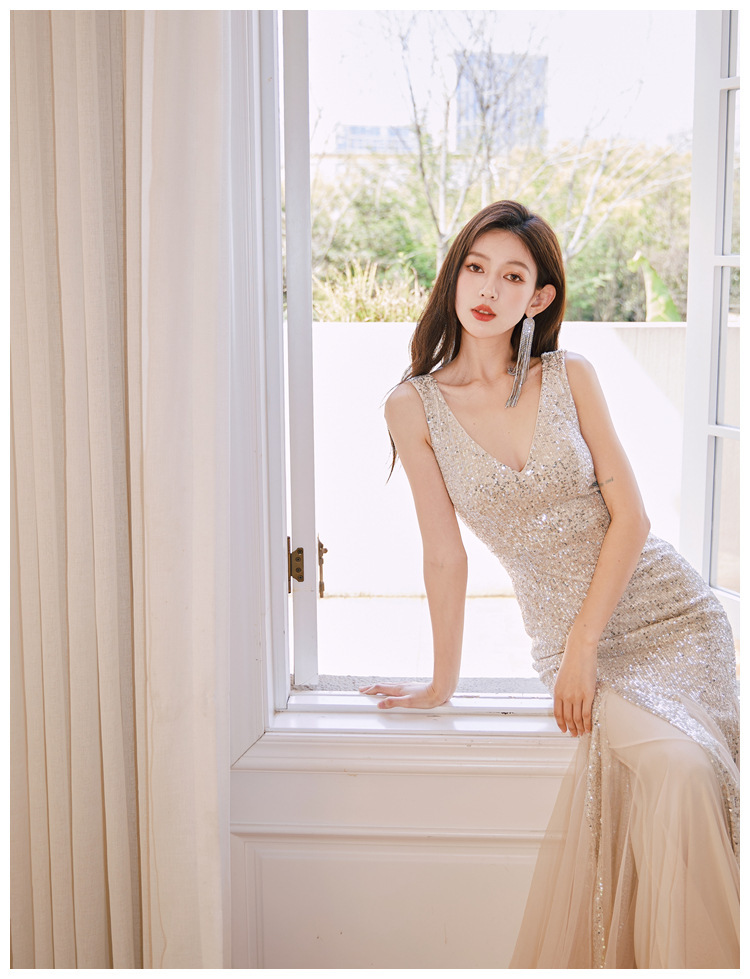 Váy dạ hội lấy cảm hứng từ nàng tiên cá, phù hợp cho các buổi tiệc tối. Thiết kế ôm dáng với phần chân váy xòe nhẹ tạo dáng đuôi cá thanh thoát. Chất liệu kết hợp vải mềm mại và lớp lưới mỏng, điểm xuyết những hạt ánh sáng lấp lánh tựa như những vì sao nhỏ. Sản phẩm mang đến vẻ đẹp dịu dàng và nữ tính. Có thể giặt tay nhẹ nhàng và phơi nơi thoáng mát để giữ dáng váy. | Tên sản phẩm: Váy Đầm Liền Thân Nữ Lưới Mỏng Kiểu Đuôi Cá - Thời Trang Nữ | Mã sản phẩm: K0334 - Giá: 1.680.000đ | Mã nhà sản xuất: XUTYYU-G05Hình ảnh sản phẩm