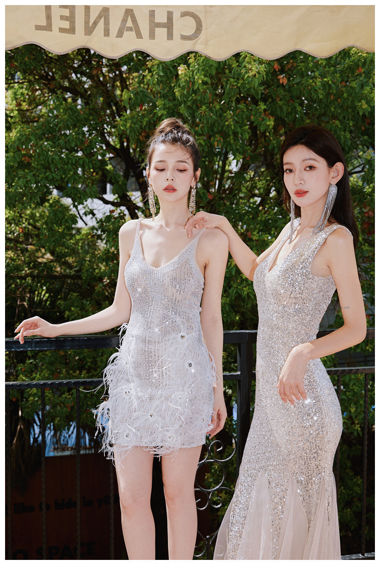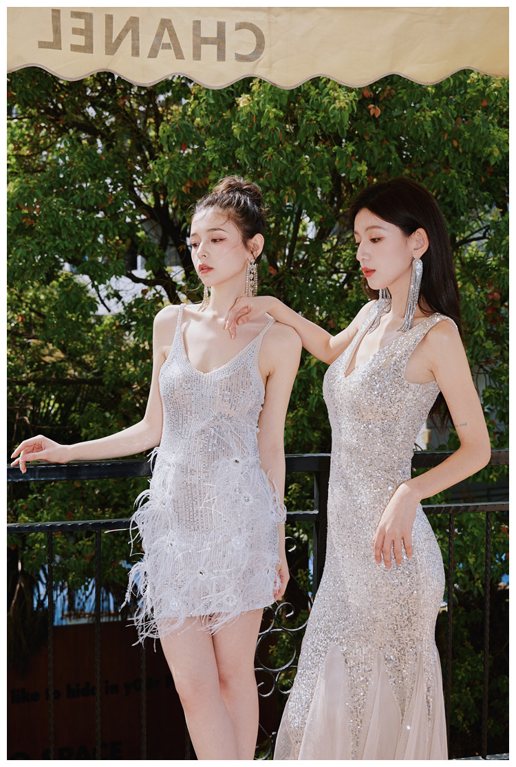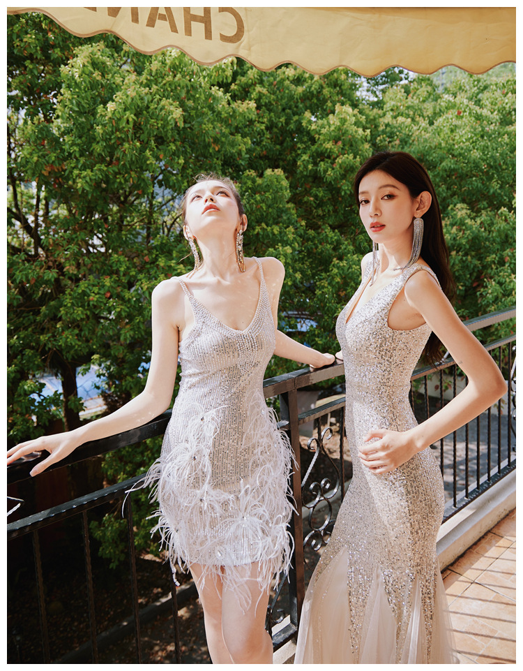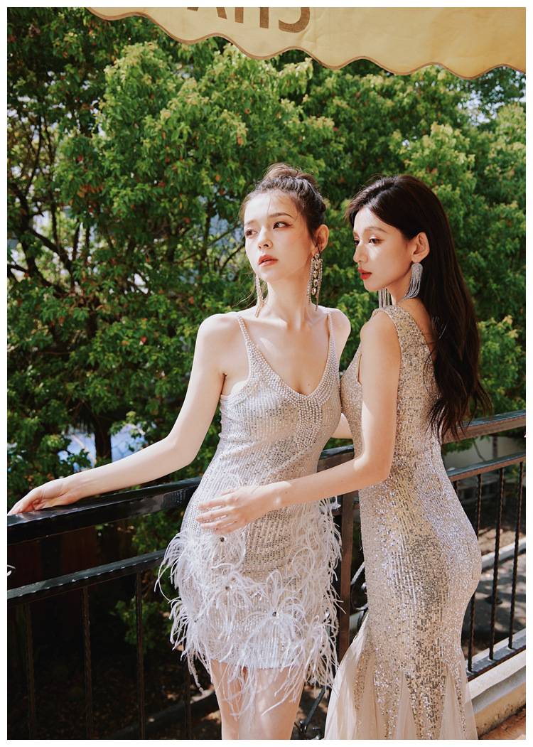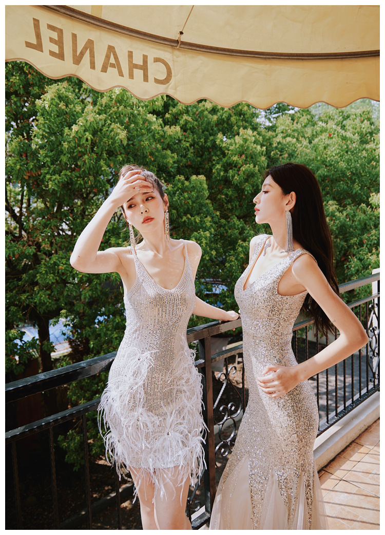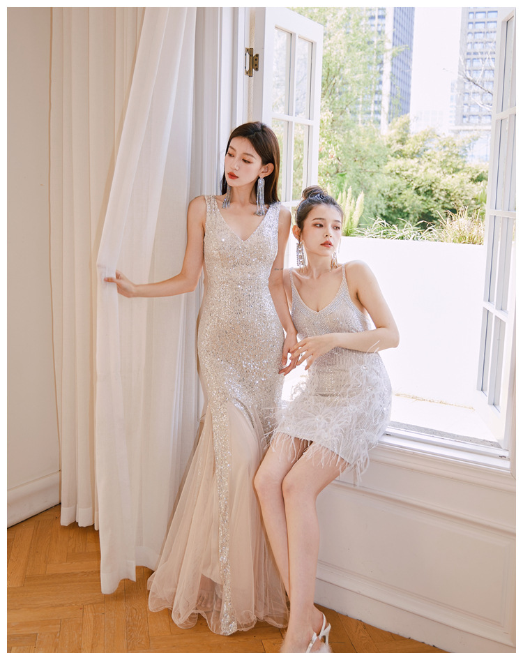 Váy dạ hội lấy cảm hứng từ nàng tiên cá, phù hợp cho các buổi tiệc tối. Thiết kế ôm dáng với phần chân váy xòe nhẹ tạo dáng đuôi cá thanh thoát. Chất liệu kết hợp vải mềm mại và lớp lưới mỏng, điểm xuyết những hạt ánh sáng lấp lánh tựa như những vì sao nhỏ. Sản phẩm mang đến vẻ đẹp dịu dàng và nữ tính. Có thể giặt tay nhẹ nhàng và phơi nơi thoáng mát để giữ dáng váy. | Tên sản phẩm: Váy Đầm Liền Thân Nữ Lưới Mỏng Kiểu Đuôi Cá - Thời Trang Nữ | Mã sản phẩm: K0334 - Giá: 1.680.000đ | Mã nhà sản xuất: XUTYYU-G05Hình ảnh sản phẩm
