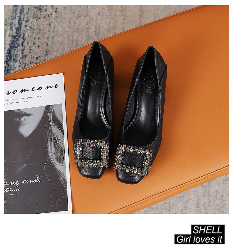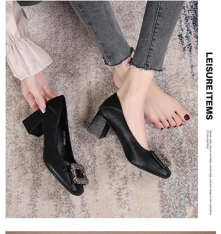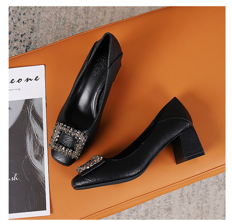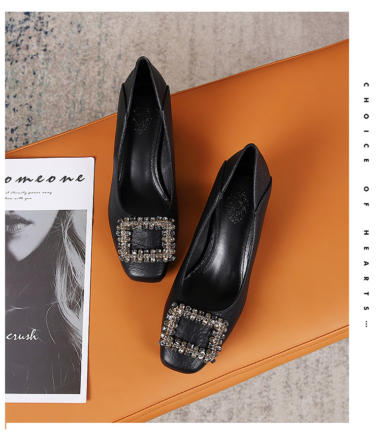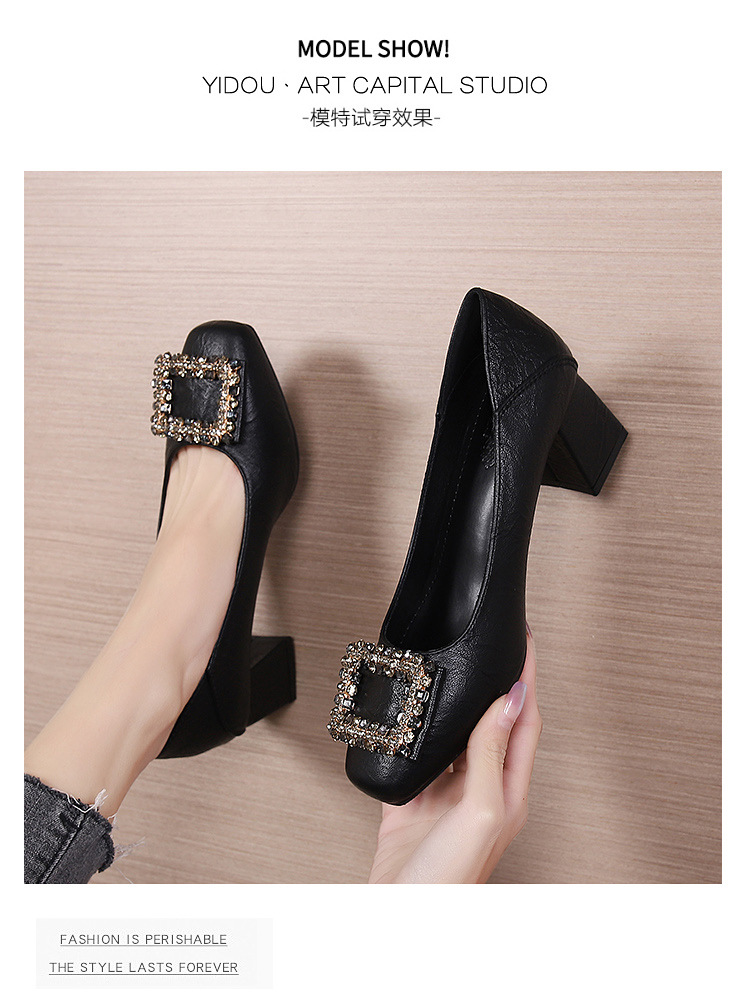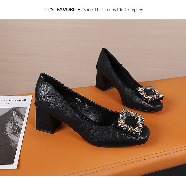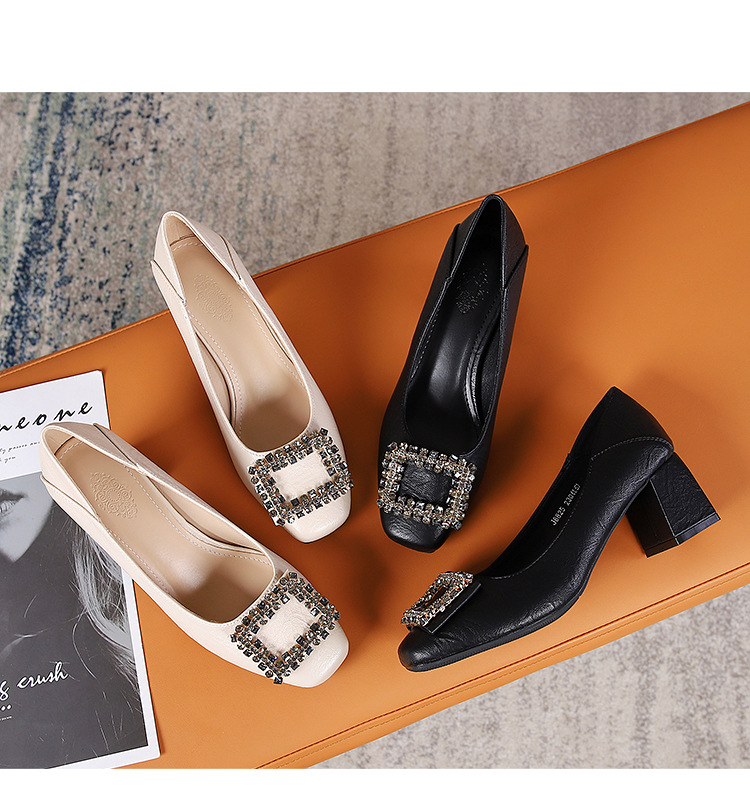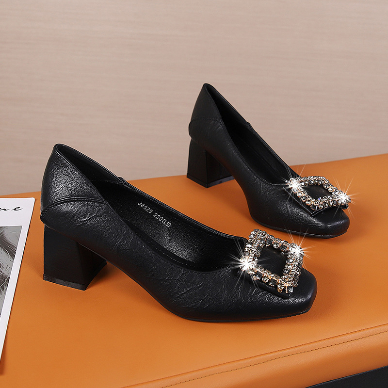 Đôi giày này có kiểu dáng đầu vuông độc đáo và phần gót thấp vững chãi. Phong cách thiết kế mang hơi hướng thanh lịch, cổ điển, rất dễ dàng phối hợp với nhiều loại trang phục khác nhau. Trên giày được điểm xuyết thêm các chi tiết pha lê lấp lánh, tạo điểm nhấn tinh tế. Đây là mẫu giày phù hợp để sử dụng trong môi trường công sở hoặc những dịp đi làm hàng ngày. Bạn có thể mang cùng quần âu hoặc chân váy để có diện mạo chỉn chu và lịch sự. | Tên sản phẩm: Giày Cao Gót Nữ Gắn Đá Gót Vuông Đồ Công Sở - Giày Dép Nữ | Mã sản phẩm: K0336 - Giá: 560.000đ | Mã nhà sản xuất: JUTYAL-G01Hình ảnh sản phẩm