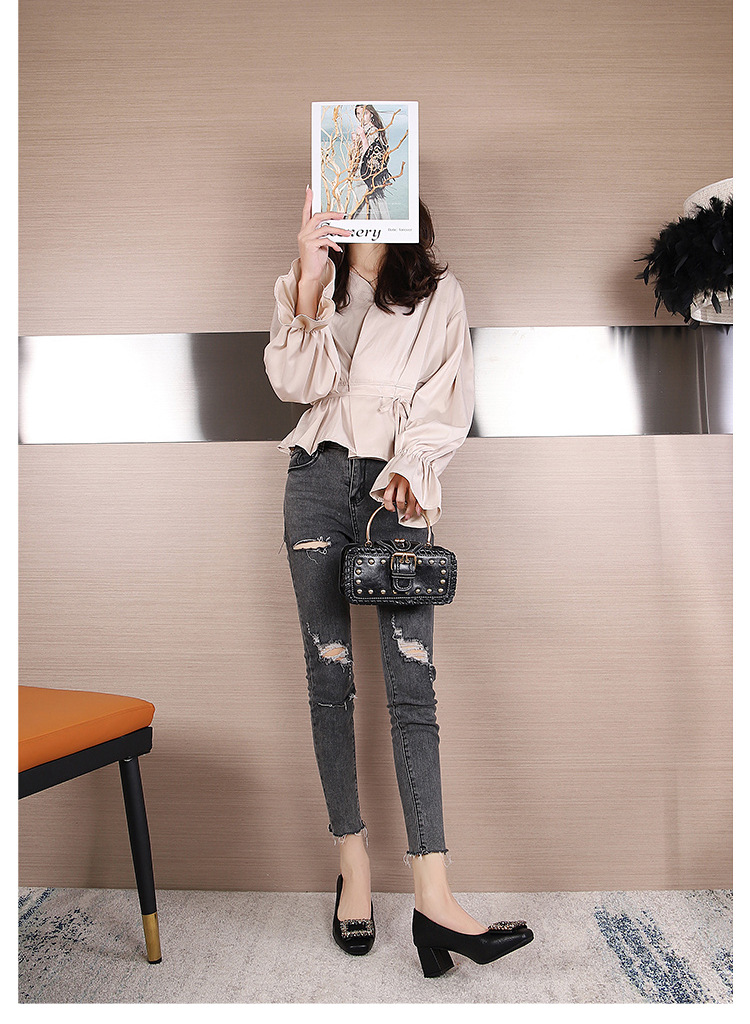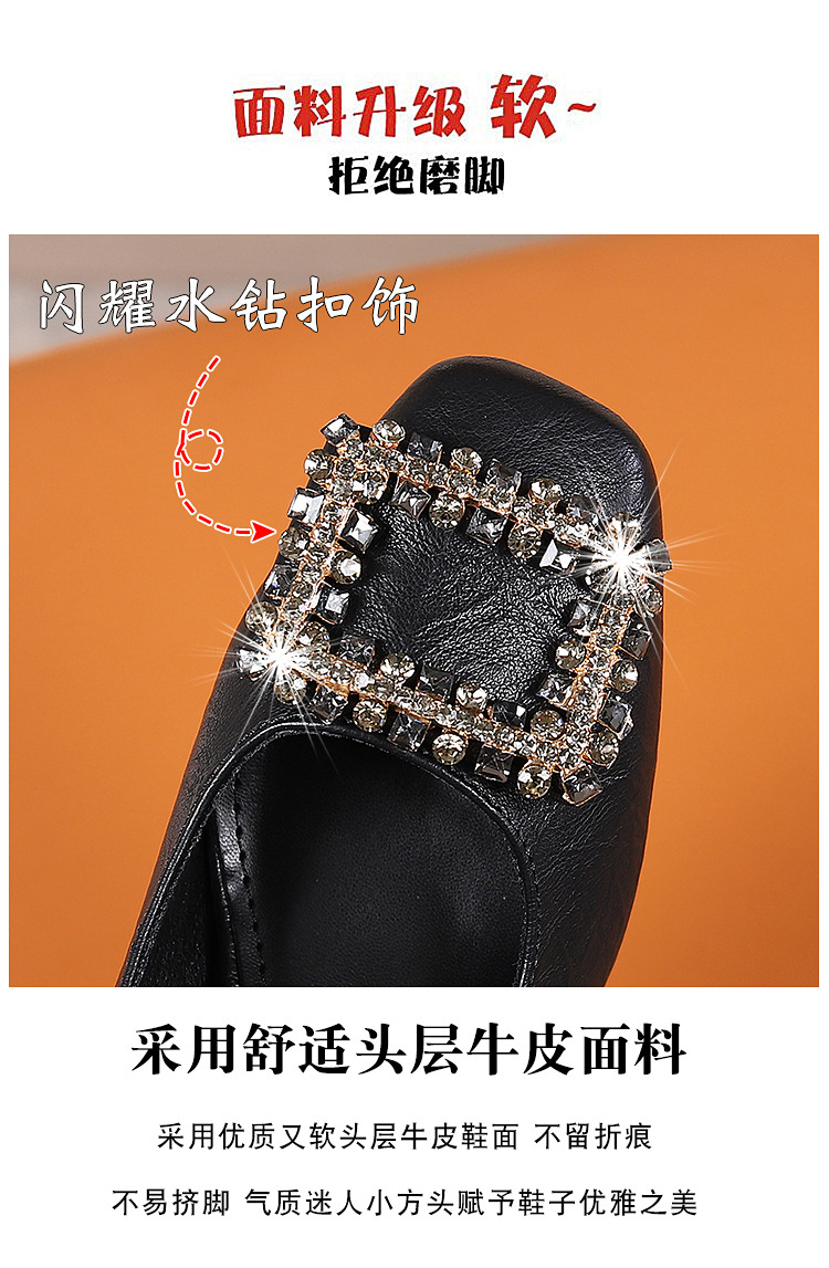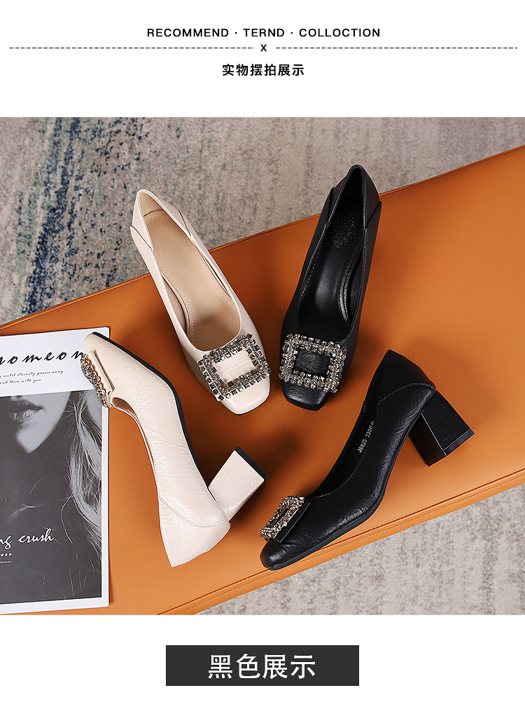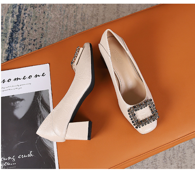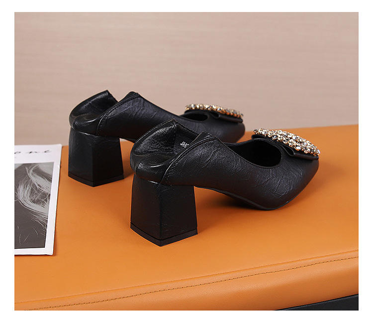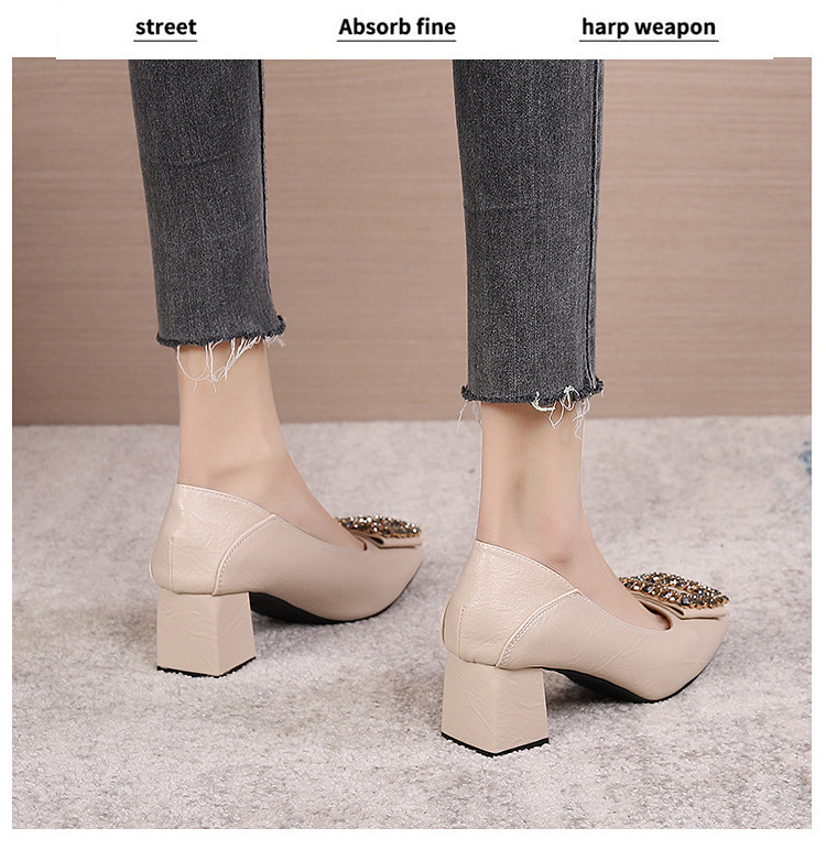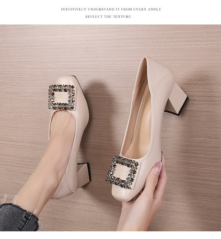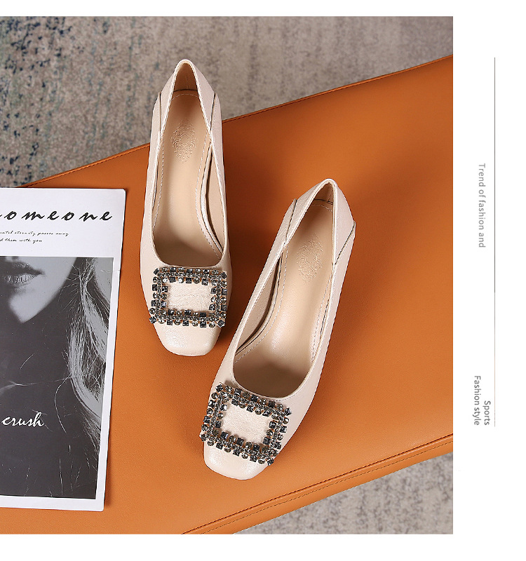 Đôi giày này có kiểu dáng đầu vuông độc đáo và phần gót thấp vững chãi. Phong cách thiết kế mang hơi hướng thanh lịch, cổ điển, rất dễ dàng phối hợp với nhiều loại trang phục khác nhau. Trên giày được điểm xuyết thêm các chi tiết pha lê lấp lánh, tạo điểm nhấn tinh tế. Đây là mẫu giày phù hợp để sử dụng trong môi trường công sở hoặc những dịp đi làm hàng ngày. Bạn có thể mang cùng quần âu hoặc chân váy để có diện mạo chỉn chu và lịch sự. | Tên sản phẩm: Giày Cao Gót Nữ Gắn Đá Gót Vuông Đồ Công Sở - Giày Dép Nữ | Mã sản phẩm: K0336 - Giá: 560.000đ | Mã nhà sản xuất: JUTYAL-G01Hình ảnh sản phẩm