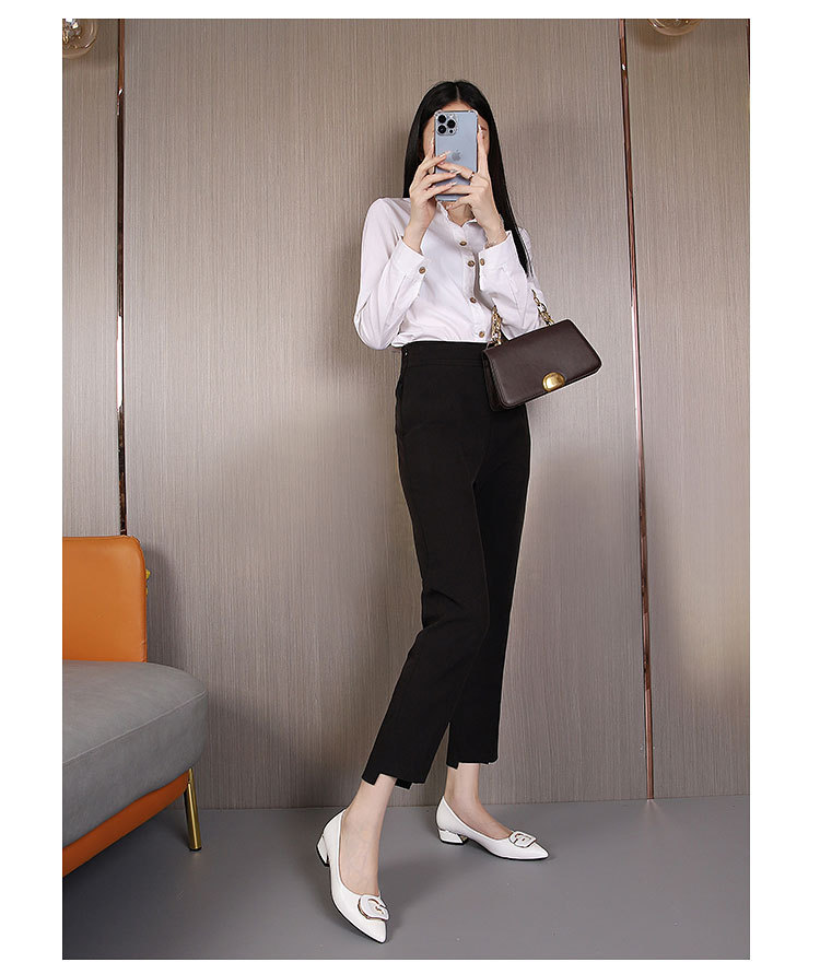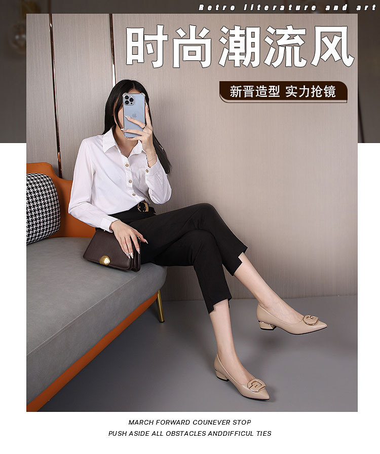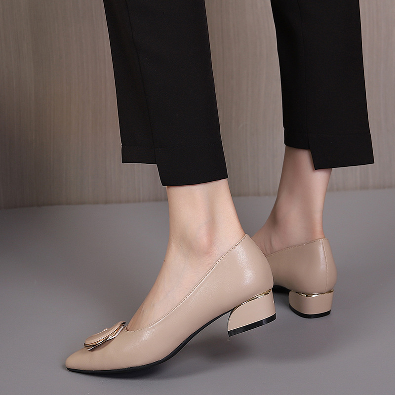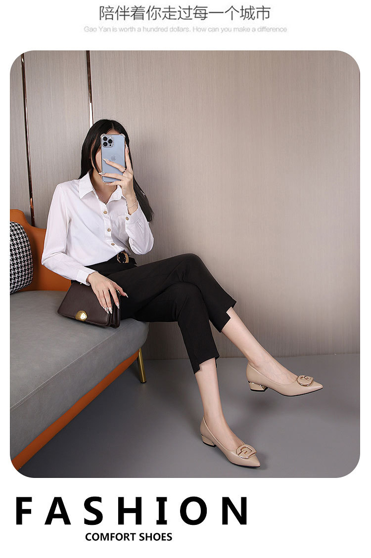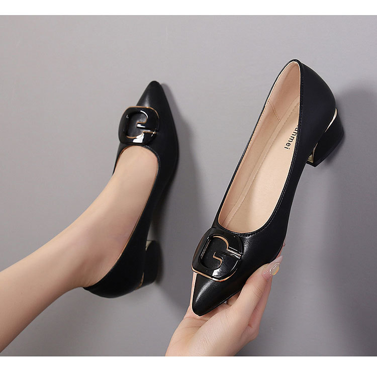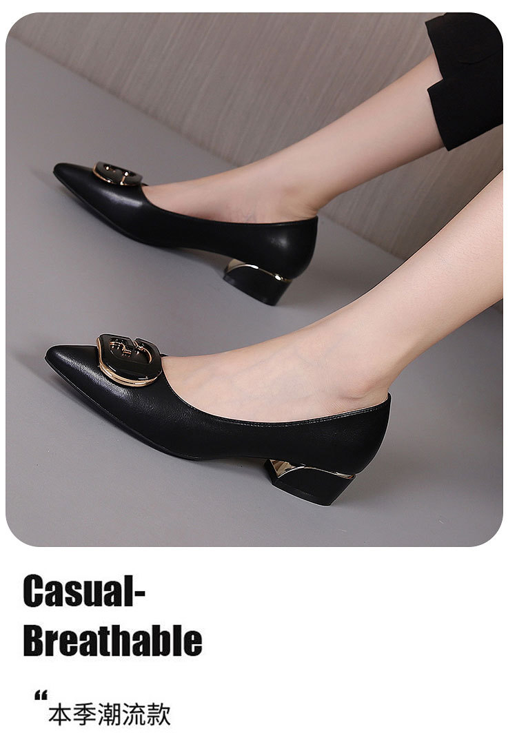 Giày công sở nữ với thiết kế mũi nhọn thanh lịch, phù hợp cho môi trường làm việc. Sản phẩm được làm từ chất liệu da mềm mại, mang lại cảm giác dễ chịu khi mang trong thời gian dài. Phần gót thấp vững chãi giúp nâng đỡ bàn chân mà vẫn đảm bảo sự thoải mái tối đa. Kiểu dáng đơn giản, dễ dàng phối hợp cùng nhiều trang phục khác nhau như quần tây, váy liền. Chỉ cần vệ sinh nhẹ nhàng bằng khăn mềm để giữ giày luôn sạch đẹp. | Tên sản phẩm: Giày Cao Gót Nữ Mũi Nhọn Gót Vuông Phong Cách Hàn Quốc Đồ Công Sở - Giày Dép Nữ | Mã sản phẩm: K0338 - Giá: 530.000đ | Mã nhà sản xuất: JUTYAL-G01Hình ảnh sản phẩm
