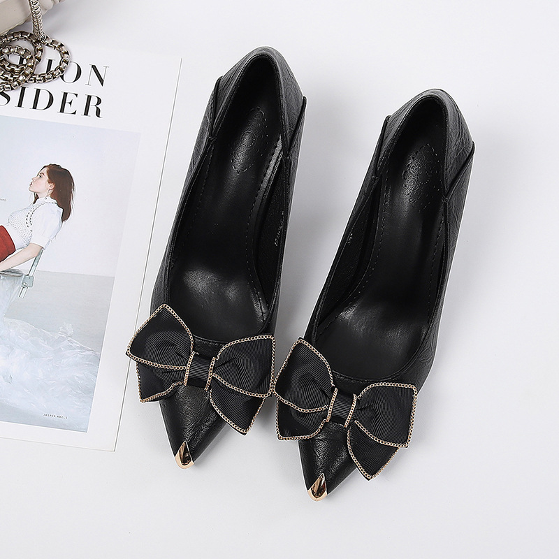 Đôi giày búp bê này có phần mũi nhọn thanh lịch và chiếc nơ xinh xắn điểm tô nơi cổ giày. Sản phẩm được làm từ chất liệu da mềm mại và đế êm ái, giúp nâng đỡ đôi chân bạn suốt ngày dài. Kiểu dáng gót nhọn cao vừa phải, phù hợp để đi làm, dự tiệc hoặc kết hợp cùng nhiều trang phục thường ngày. Bạn chỉ cần xỏ chân vào, điều chỉnh dây nơ cho vừa vặn là đã có ngay một phong cách nhẹ nhàng, nữ tính. | Tên sản phẩm: Giày Cao Gót Nữ Chất Liệu Da Bò Thắt Nơ Bướm Mũi Nhọn Đế Mềm - Giày Dép Nữ | Mã sản phẩm: K0366 - Giá: 500.000đ | Mã nhà sản xuất: JUTYAL-G01Hình ảnh sản phẩm