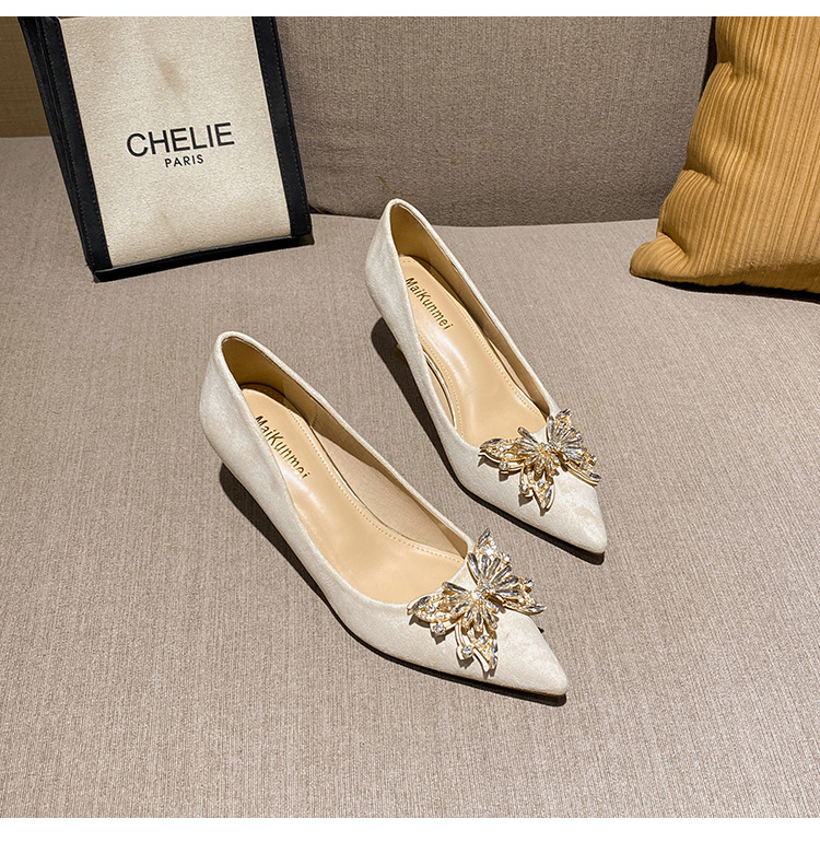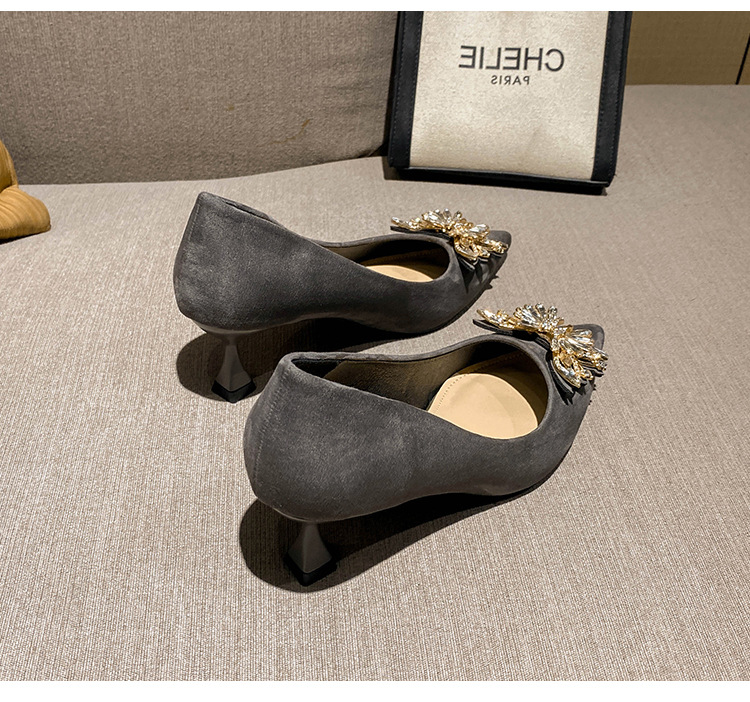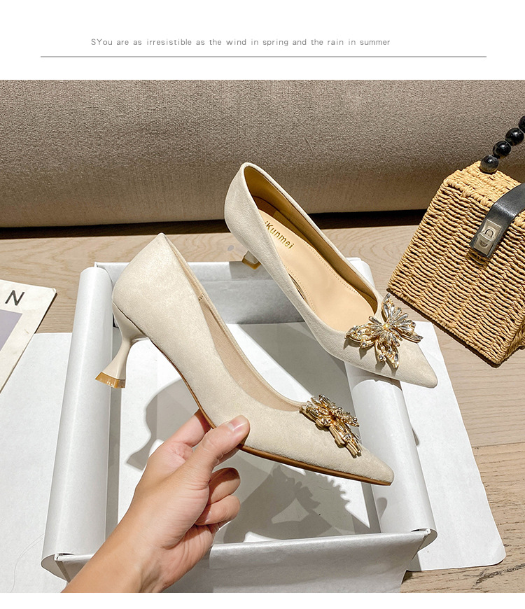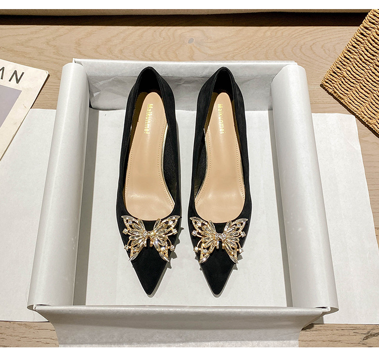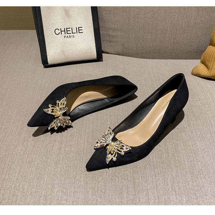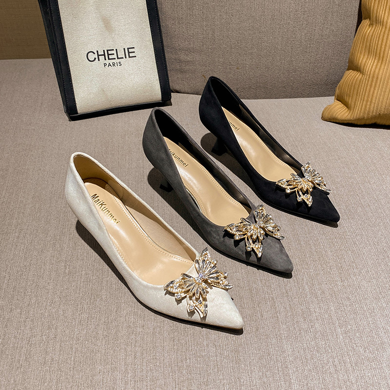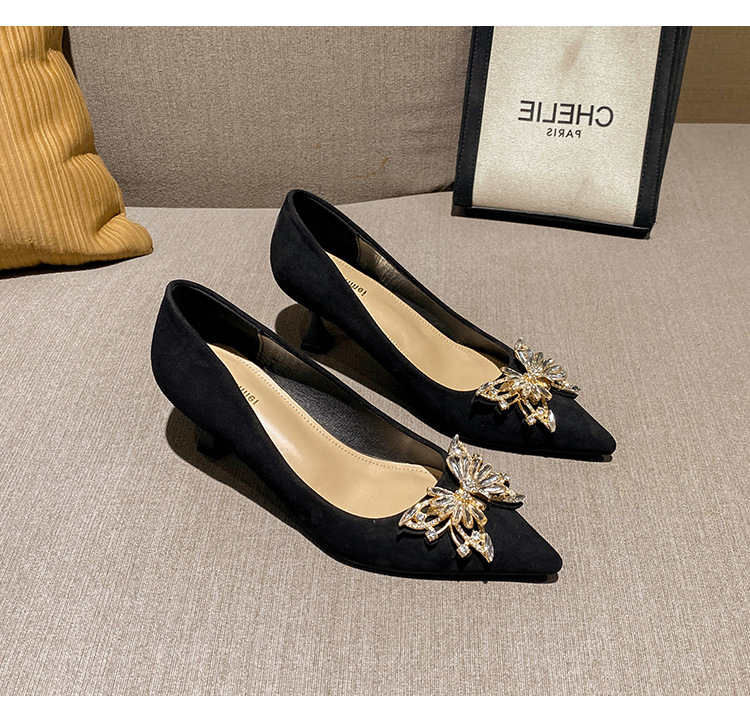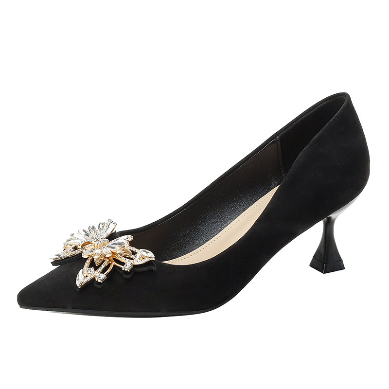 Đôi giày cao gót nữ với phần mũi nhọn thanh lịch, được làm từ chất liệu nhung mềm mại màu đen. Điểm nhấn là chi tiết khóa đá lấp lánh tinh tế gắn ở phía trước. Kiểu dáng gót nhọn vừa phải, phù hợp để đi làm, dự tiệc hoặc phối cùng nhiều trang phục thường ngày. Sử dụng bằng cách xỏ chân vào và cài khóa cho vừa vặn. | Tên sản phẩm: Giày Cao Gót Nữ Mũi Nhọn Gót Nhọn - Giày Dép Nữ | Mã sản phẩm: K0391 - Giá: 670.000đ | Mã nhà sản xuất: JUTYAL-G02Hình ảnh sản phẩm