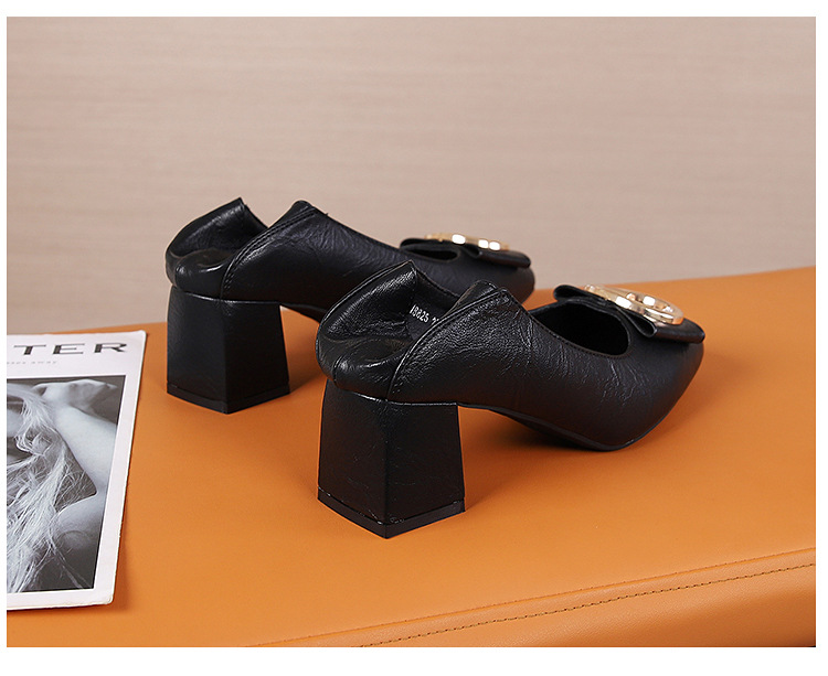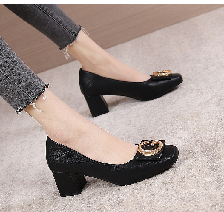 Giày công sở dành cho nữ, thiết kế mũi vuông nhẹ nhàng theo xu hướng mới. Sản phẩm sử dụng chất liệu da mềm mại, êm chân suốt ngày dài. Đế thấp vừa phải giúp nâng đỡ bàn chân, tạo dáng đứng đẹp mà vẫn thoải mái khi di chuyển. Kiểu dáng linh hoạt, dễ phối cùng nhiều trang phục khác nhau. Sử dụng phù hợp cho môi trường văn phòng hoặc các dịp cần sự chỉn chu. | Tên sản phẩm: Giày Cao Gót Nữ Gót Vuông Hàng Mùa Xuân Thu Đông Đồ Công Sở - Giày Dép Nữ | Mã sản phẩm: K0415 - Giá: 500.000đ | Mã nhà sản xuất: JUTYAL-G01Hình ảnh sản phẩm