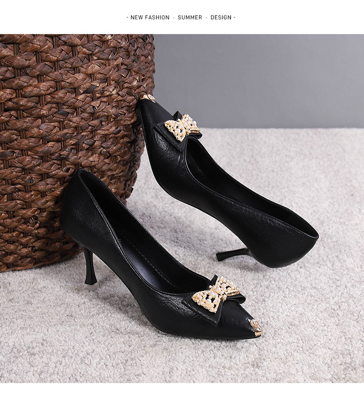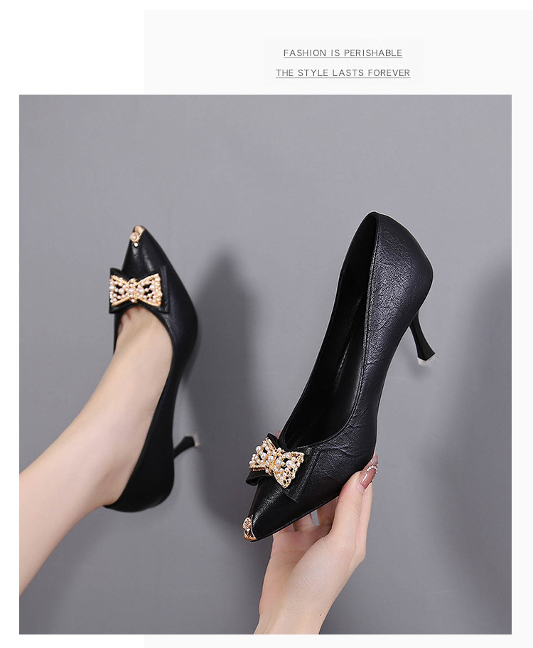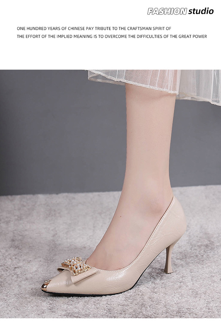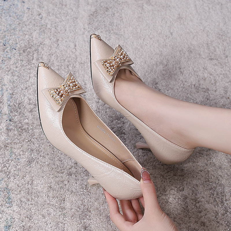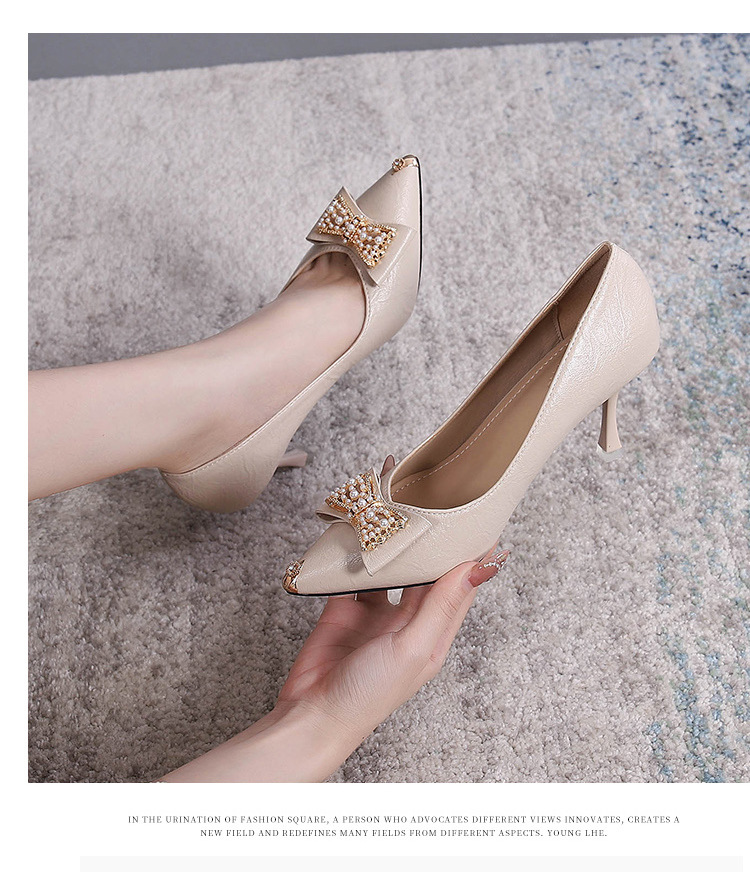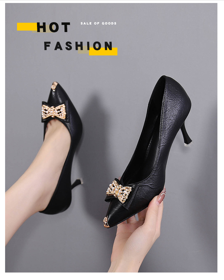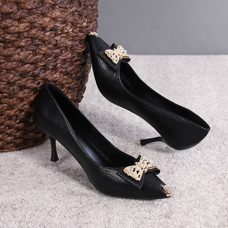 Đôi giày này có phần gót nhọn thanhai mảnh và mũi được bọc thép chắc chắn. Chất da mềm mại ôm sát chân, kiểu dáng theo phong cách Hàn Quốc rất dễ phối đồ. Điểm nhấn là chi tiết nút cài được đính hạt ngọc tr và đá lấp lánh tinh xảo. Bạn có thể mang đôi giày này để đi làm hoặc dự những buổi tiệc nhẹ nhàng. Sản phẩm phù hợp để sử dụng nhiều trong môi trường công sở. | Tên sản phẩm: Giày Cao Gót Nữ Gắn Đá Gót Nhọn Phong Cách Hàn Quốc Đồ Công Sở - Giày Dép Nữ | Mã sản phẩm: K0425 - Giá: 530.000đ | Mã nhà sản xuất: JUTYAL-G01Hình ảnh sản phẩm