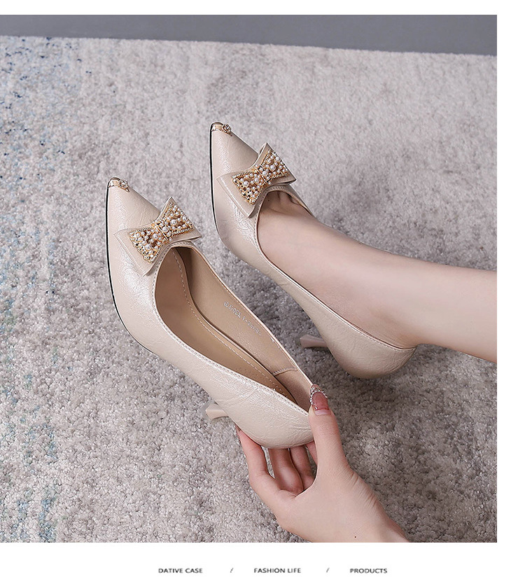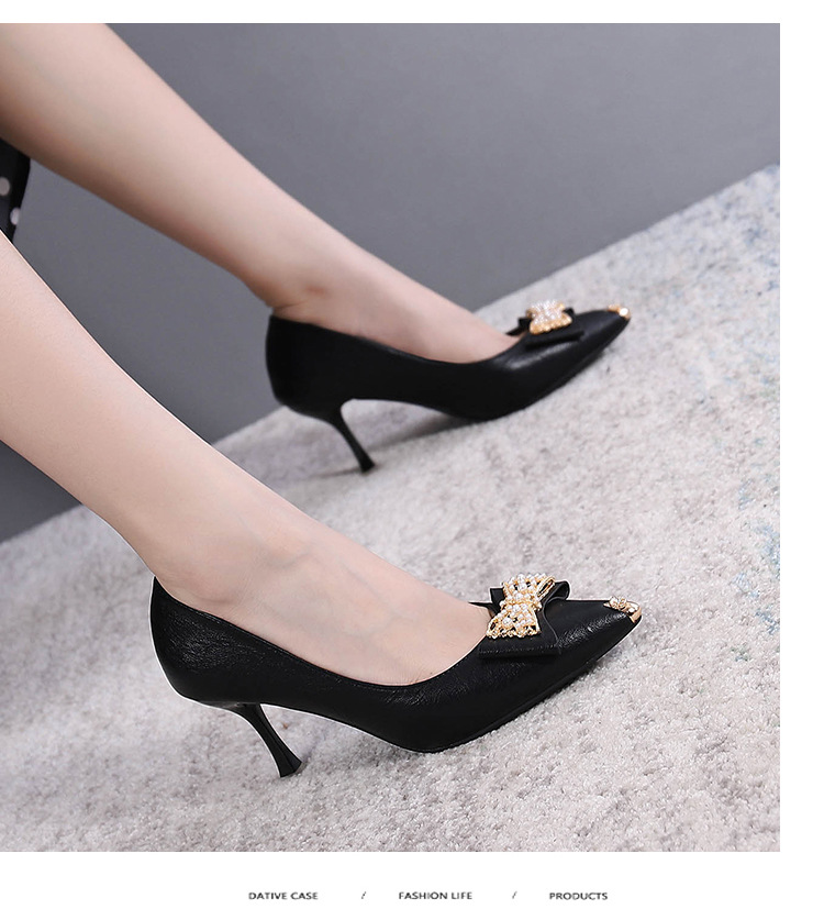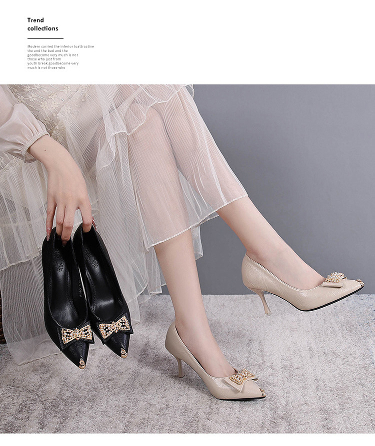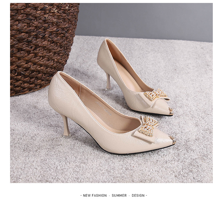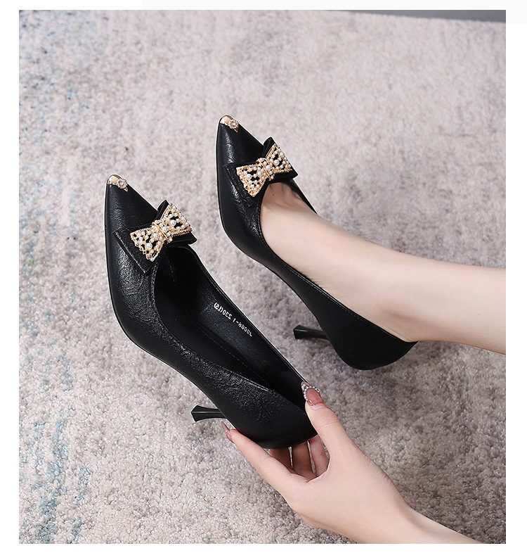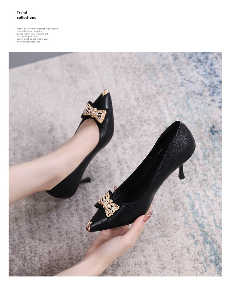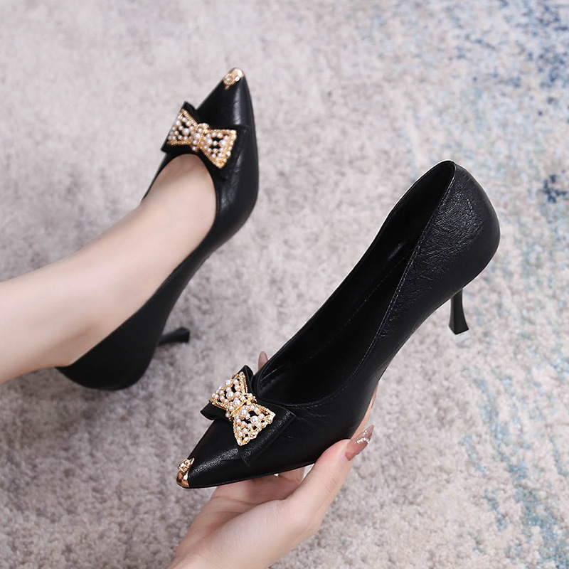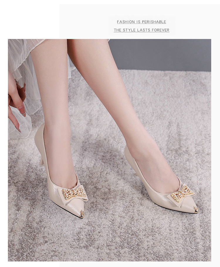 Đôi giày này có phần gót nhọn thanhai mảnh và mũi được bọc thép chắc chắn. Chất da mềm mại ôm sát chân, kiểu dáng theo phong cách Hàn Quốc rất dễ phối đồ. Điểm nhấn là chi tiết nút cài được đính hạt ngọc tr và đá lấp lánh tinh xảo. Bạn có thể mang đôi giày này để đi làm hoặc dự những buổi tiệc nhẹ nhàng. Sản phẩm phù hợp để sử dụng nhiều trong môi trường công sở. | Tên sản phẩm: Giày Cao Gót Nữ Gắn Đá Gót Nhọn Phong Cách Hàn Quốc Đồ Công Sở - Giày Dép Nữ | Mã sản phẩm: K0425 - Giá: 530.000đ | Mã nhà sản xuất: JUTYAL-G01Hình ảnh sản phẩm