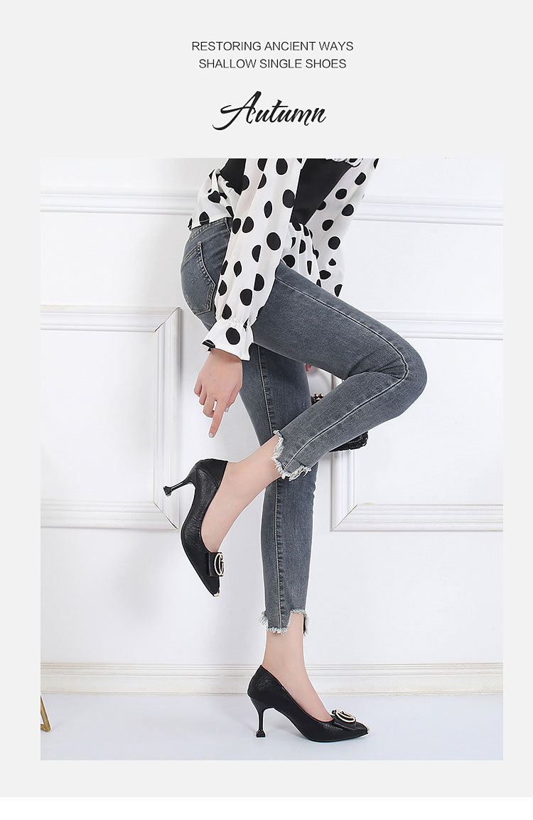 Giày văn phòng nữ thiết kế kiểu dáng Hàn Quốc, phù hợp mặc nhiều mùa trong năm. Sản phẩm có phần gót nhọn thanh thoát, điểm nhấn là chi tiết khóa trang trí tinh tế. Kiểu giày này dễ dàng kết hợp với nhiều trang phục khác nhau như quần tây, váy công sở. Bạn có thể sử dụng làm giày đi làm hàng ngày, mang lại sự thoải mái và lịch sự cho người dùng. | Tên sản phẩm: Giày Cao Gót Nữ Gót Nhọn Hàng Mùa Hè Phong Cách Hàn Quốc Đồ Công Sở - Giày Dép Nữ | Mã sản phẩm: K0472 - Giá: 500.000đ | Mã nhà sản xuất: JUTYAL-G01Hình ảnh sản phẩm