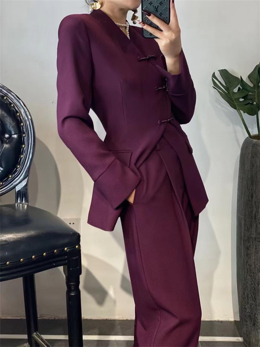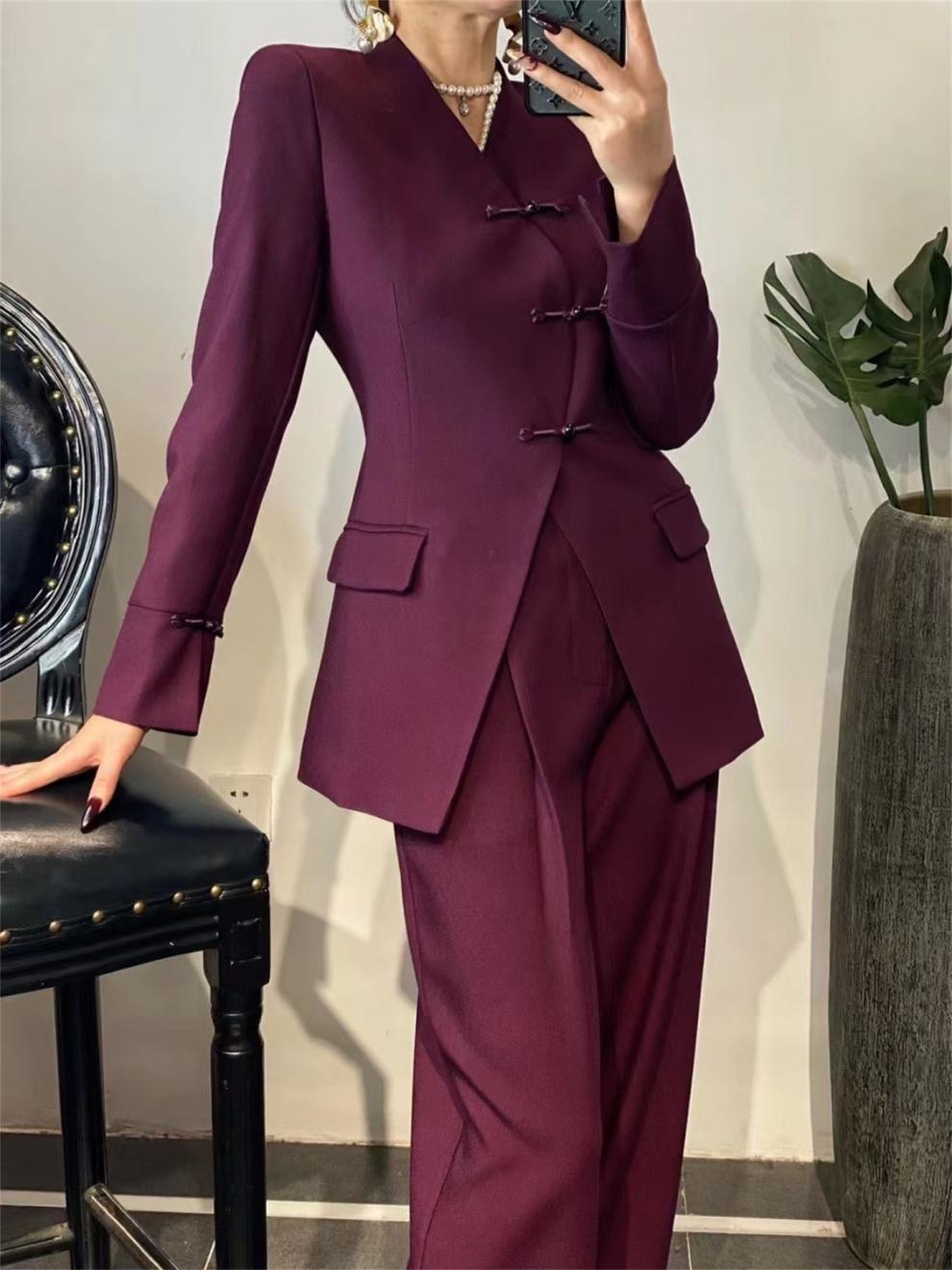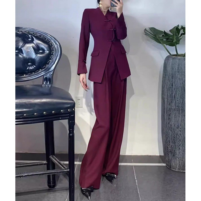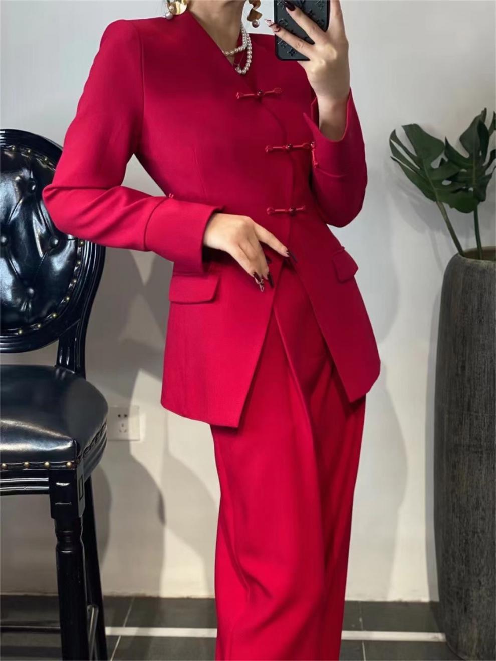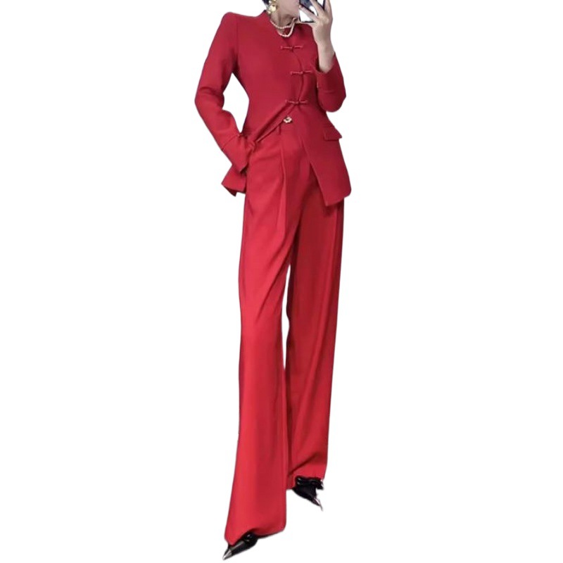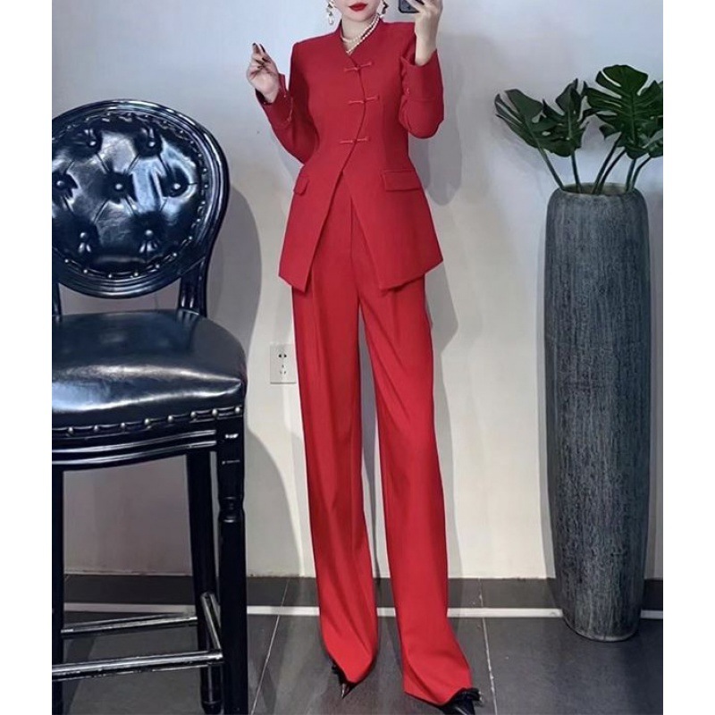 Bộ trang phục hai mảnh này mang phong cách dân tộc hiện đại, phù hợp cho dịp làm việc. Áo khoác ngoài và quần ống loe được làm từ chất liệu mềm mại, tạo cảm giác dễ chịu khi mặc. Điểm nhấn đặc biệt là hàng khuy cài tinh xảo thay cho kiểu cúc thông thường. Bộ trang phục dễ dàng phối cùng áo thun bên trong hoặc giày thể thao. Bạn có thể mặc nguyên bộ để tạo vẻ chỉn chu, hoặc tách riêng từng món để phối với đồ có sẵn. | Tên sản phẩm: Áo Vest Nữ Vest Cả Bộ 2 Món Hàng Mùa Xuân Thu Đông - Thời Trang Nữ | Mã sản phẩm: k0477 - Giá: 3.230.000đ | Mã nhà sản xuất: CHTYAI-G06Hình ảnh sản phẩm
