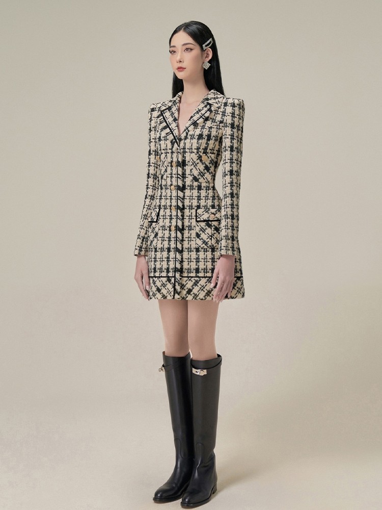 Chiếc đầm ngắn tôn dáng với họa tiết nghìn chim cổ điển, mang phong cách thanh lịch nhẹ nhàng. Chất liệu dệt may ấm áp phù hợp cho mùa thu đông. Thiết kế eo thon ôm sát tạo đường nét cơ thể mềm mại. Có thể kết hợp cùng áo khoác mỏng và giày bốt để tạo nên những bộ trang phục hàng ngày ấn tượng. | Tên sản phẩm: Váy Đầm Liền Thân Nữ Kẻ Caro Kẻ Caro Hàng Mùa Xuân Thu Đông - Thời Trang Nữ | Mã sản phẩm: K0479 - Giá: 2.760.000đ | Mã nhà sản xuất: FORYCT-G06Hình ảnh sản phẩm
