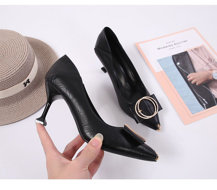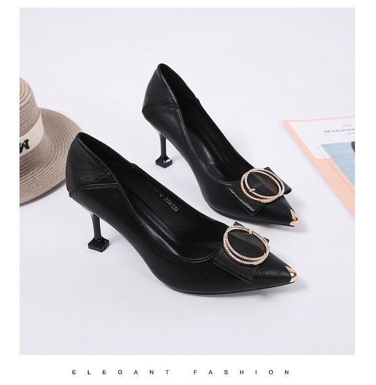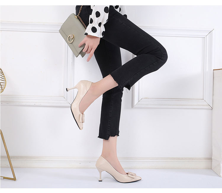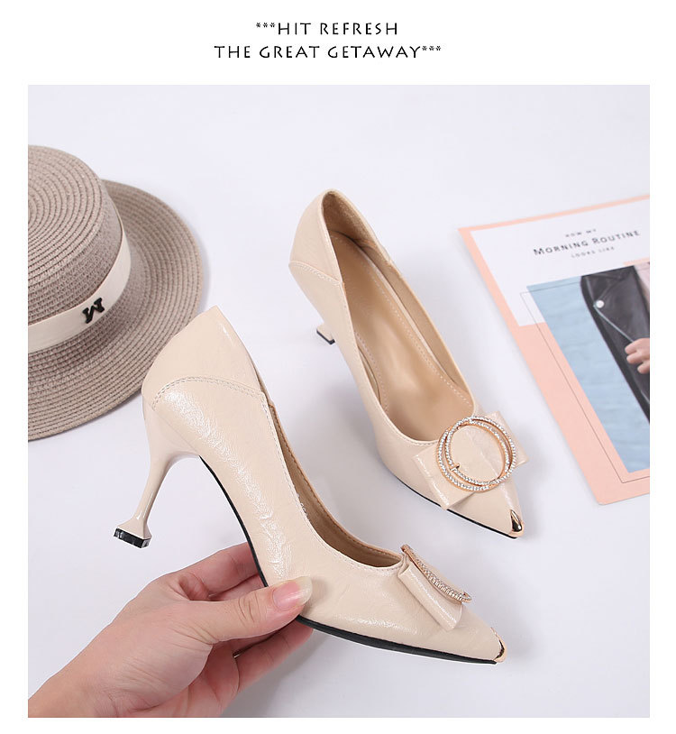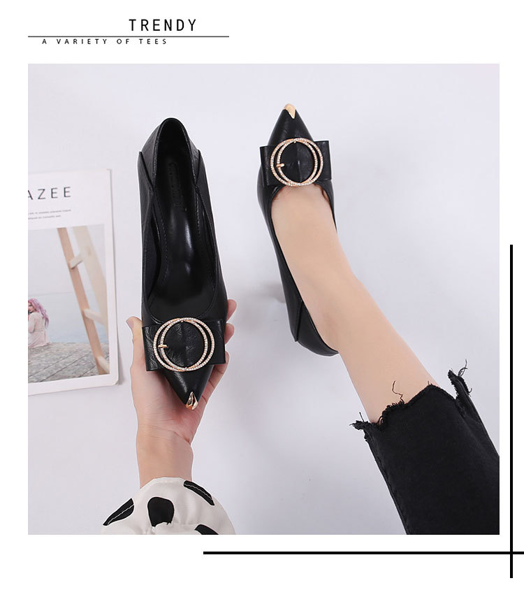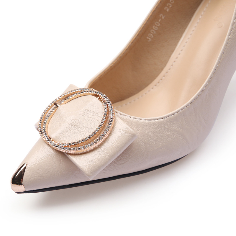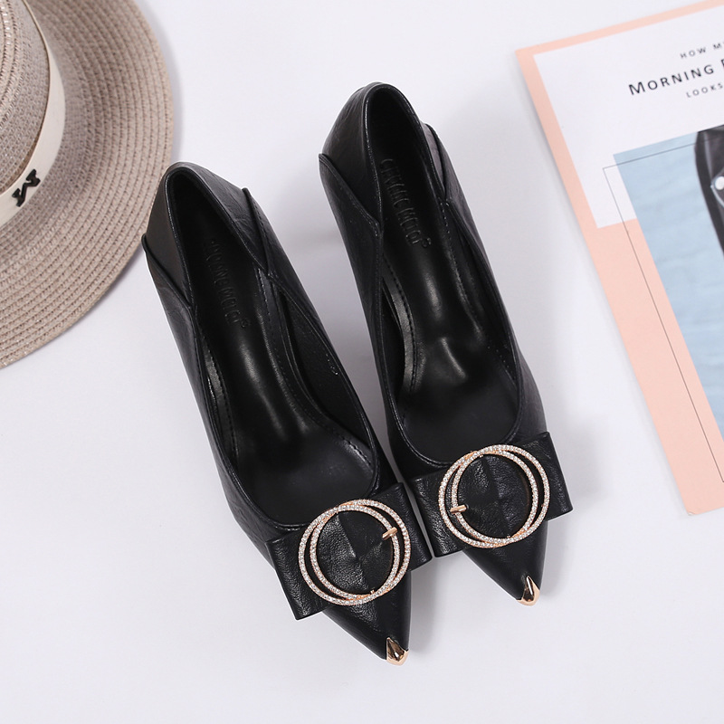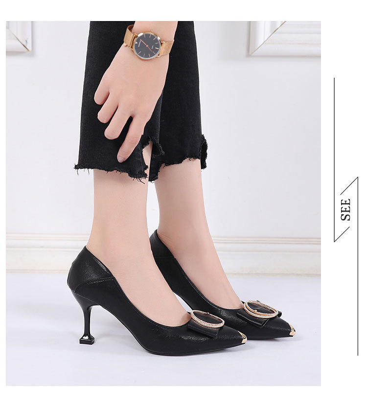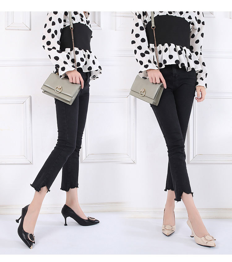 Đôi giày này mang phong cách hiện đại với thiết kế mũi nhọn và phần cổ thấp, tôn dáng cho đôi chân. Form giày ôm chân vừa vặn, đi kèm khóa cài tiện lợi ở phía trên. Sản phẩm có phần gót vừa phải, phù hợp để sử dụng trong môi trường làm việc hoặc các dịp đi chơi thông thường. Bạn có thể dễ dàng kết hợp với nhiều loại trang phục khác nhau như quần âu, váy liền để tạo nên vẻ ngoài chỉn chu. | Tên sản phẩm: Giày Cao Gót Nữ Gắn Đá Mũi Nhọn Gót Nhọn Phong Cách Hàn Quốc Đồ Công Sở - Giày Dép Nữ | Mã sản phẩm: K0485 - Giá: 560.000đ | Mã nhà sản xuất: JUTYAL-G01Hình ảnh sản phẩm