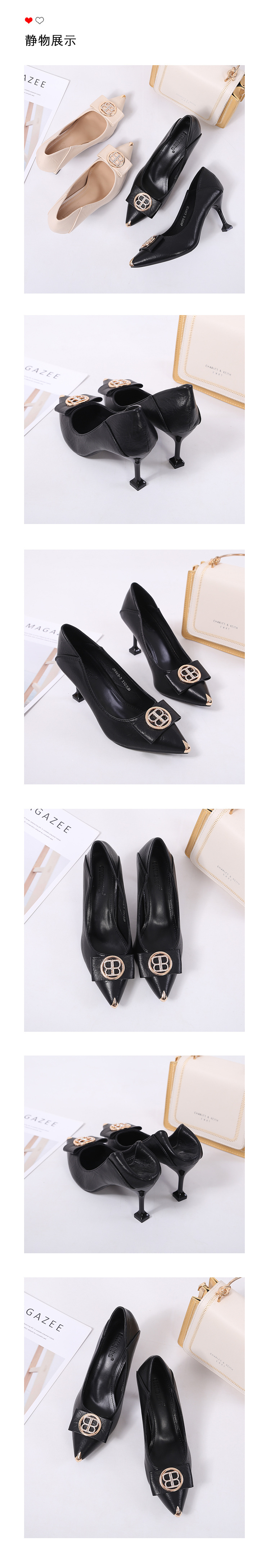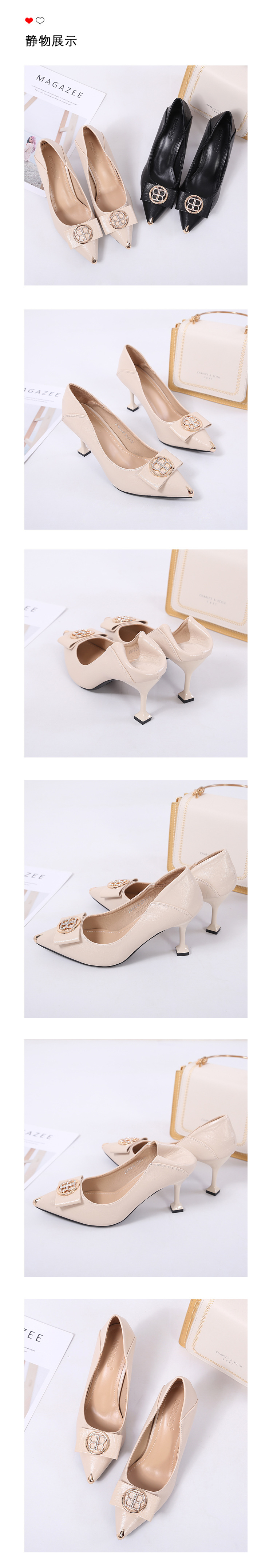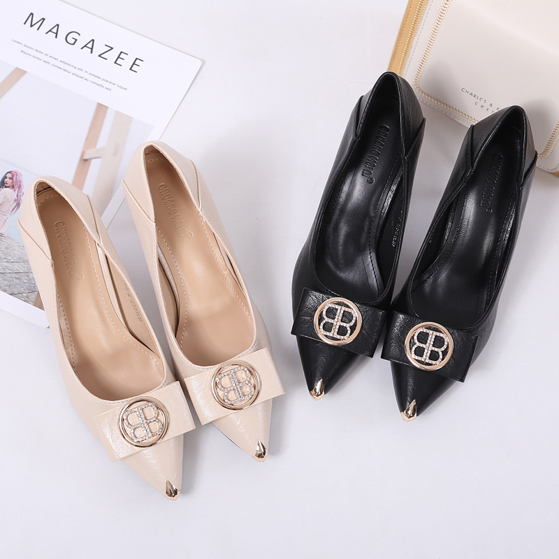 Đôi giày này có phần mũi nhọn và gót mảnh cao, tạo dáng thanh lịch. Chất da mềm mại giúp mang thoải mái cả ngày dài. Phía trước được điểm xuyết bằng khóa kết cườm lấp lánh, tăng thêm nét duyên dáng. Kiểu dáng hở mũi nhẹ nhàng, phù hợp cho các bạn nữ khi đi làm hoặc dự những dịp cần sự chỉn chu. Bạn có thể phối cùng quần tây, chân váy để có vẻ ngoài gọn gàng, tự tin. | Tên sản phẩm: Giày Cao Gót Nữ Gắn Đá Mũi Nhọn Gót Nhọn Đồ Công Sở - Giày Dép Nữ | Mã sản phẩm: K0491 - Giá: 560.000đ | Mã nhà sản xuất: JUTYAL-G01Hình ảnh sản phẩm