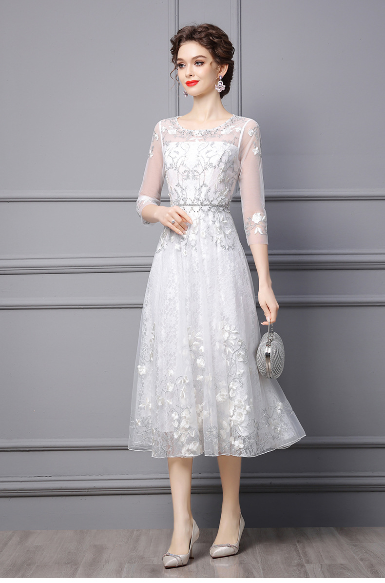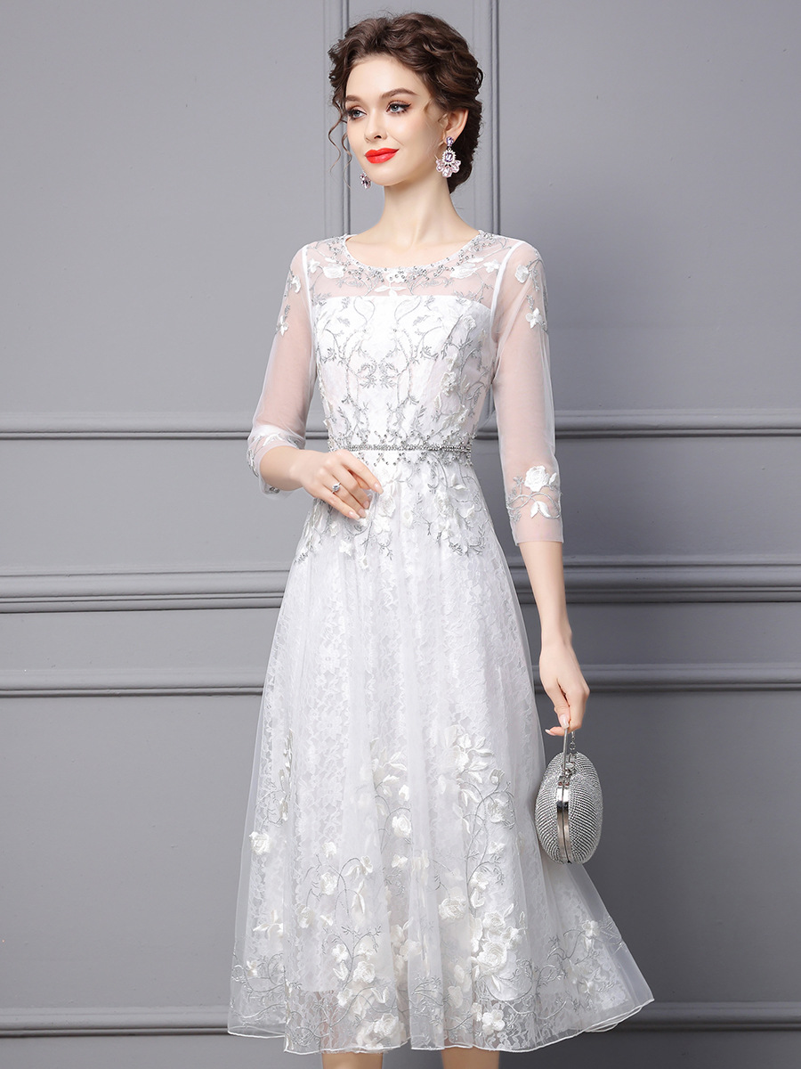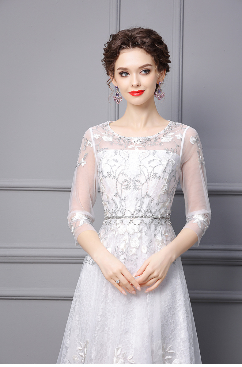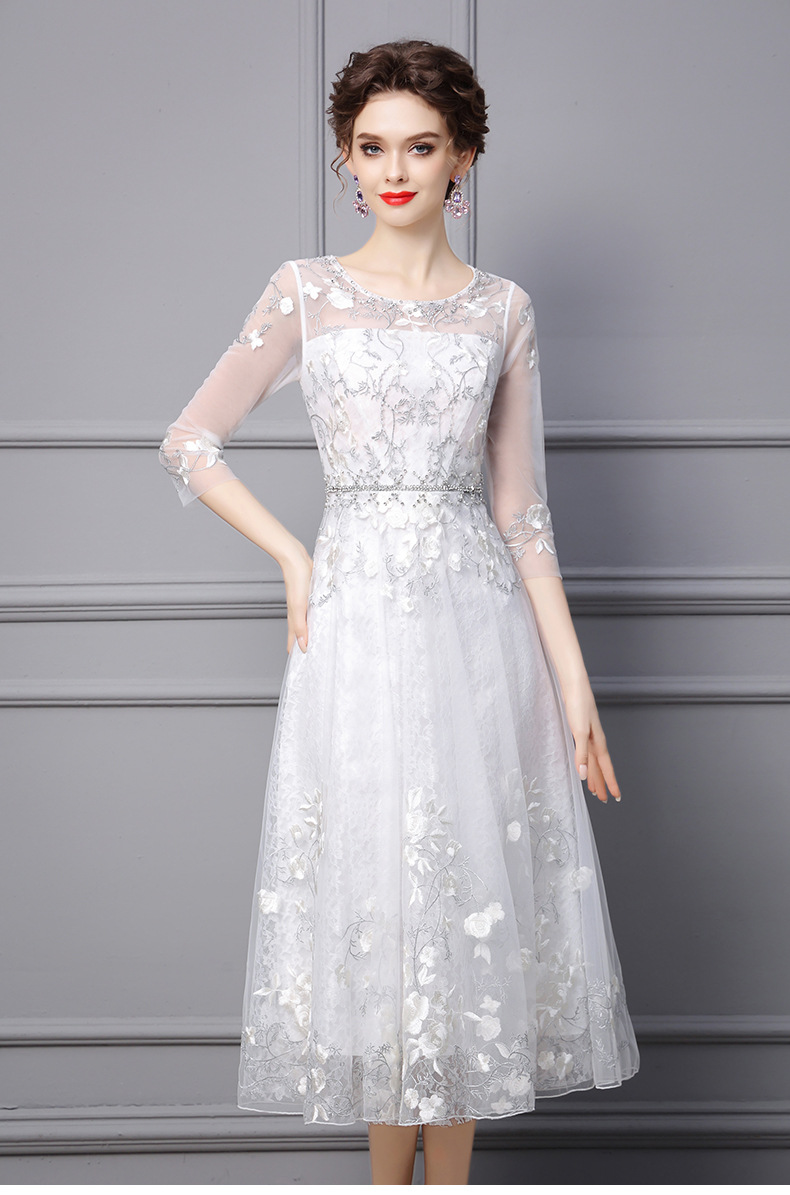 Chiếc đầm dài màu trắng này mang đến vẻ đẹp nhẹ nhàng và thanh lịch. Chất vải mềm mại tôn lên dáng người một cách tinh tế. Trên nền vải, những họa tiết thêu kết hợp hạt ngọc tr được điểm xuyết khéo léo, tạo nên điểm nhấn sinh động. Kiểu dáng ôn hòa, phù hợp cho những buổi gặp mặt hoặc sự kiện vào mùa xuân. Cách mặc rất đơn giản, bạn chỉ cần phối cùng một đôi giày có qu mảnh và túi xách nhỏ là đã hoàn thiện bộ trang phục. | Tên sản phẩm: Váy Đầm Liền Thân Nữ Thêu Họa Tiết Hoa Hàng Mùa Xuân Thu Đông - Thời Trang Nữ | Mã sản phẩm: K0521 - Giá: 4.440.000đ | Mã nhà sản xuất: SHDAP-G06Hình ảnh sản phẩm