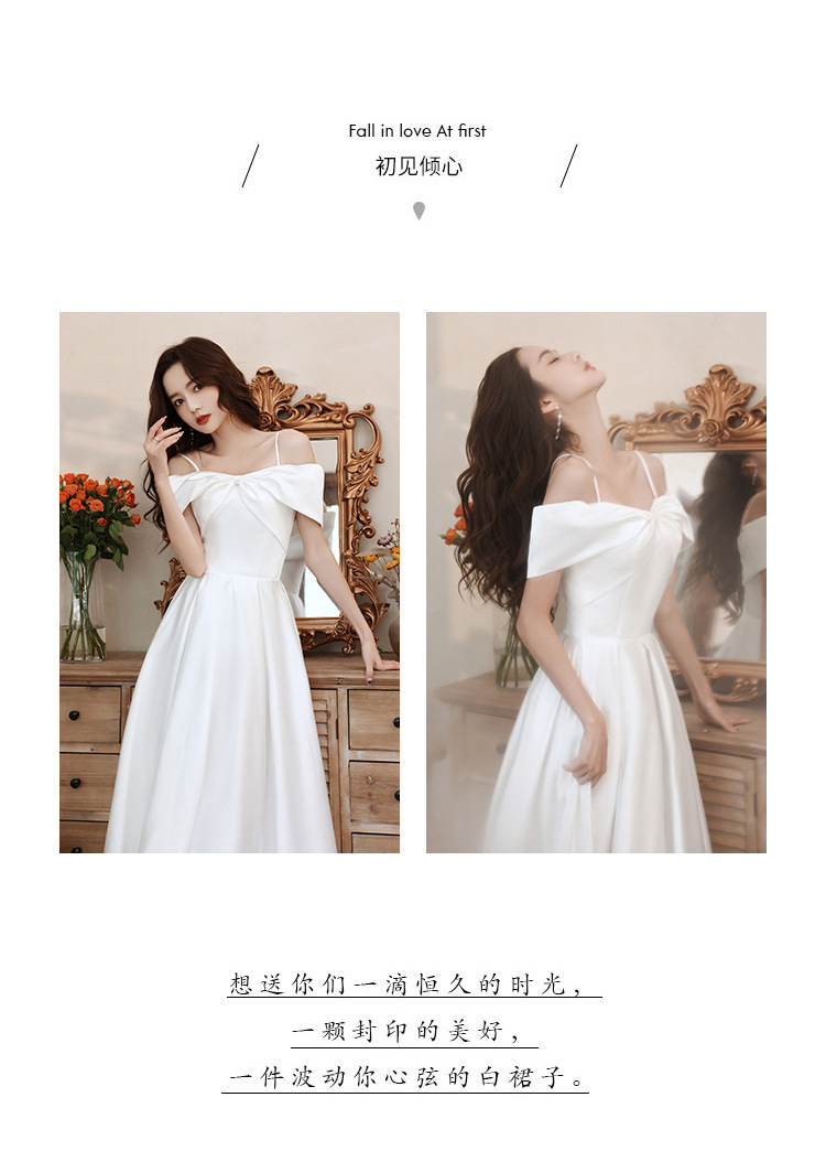 Chiếc đầm thướt tha này được thiết kế với phong cách đơn giản nhưng tinh tế. Chất vải lụa mềm mại tạo nên vẻ rạng ngời, phù hợp cho các buổi tiệc chiều, lễ kỷ niệm hay ngày trọng đại của bạn. Đầm có dáng cổ xưa, hai dây mảnh và màu trắng nhã nhặn. Bạn có thể dễ dàng phối cùng giày cao gót mũi nhọn và một chiếc túa xách tay nhỏ để hoàn thiện vẻ ngoài thanh lịch. | Tên sản phẩm: Áo Hai Dây Nữ Hai Dây Hở Vai Dùng Trong Lễ Cưới - Thời Trang Nữ | Mã sản phẩm: K0620 - Giá: 1.420.000đ | Mã nhà sản xuất: SHTYFA-G04Hình ảnh sản phẩm
