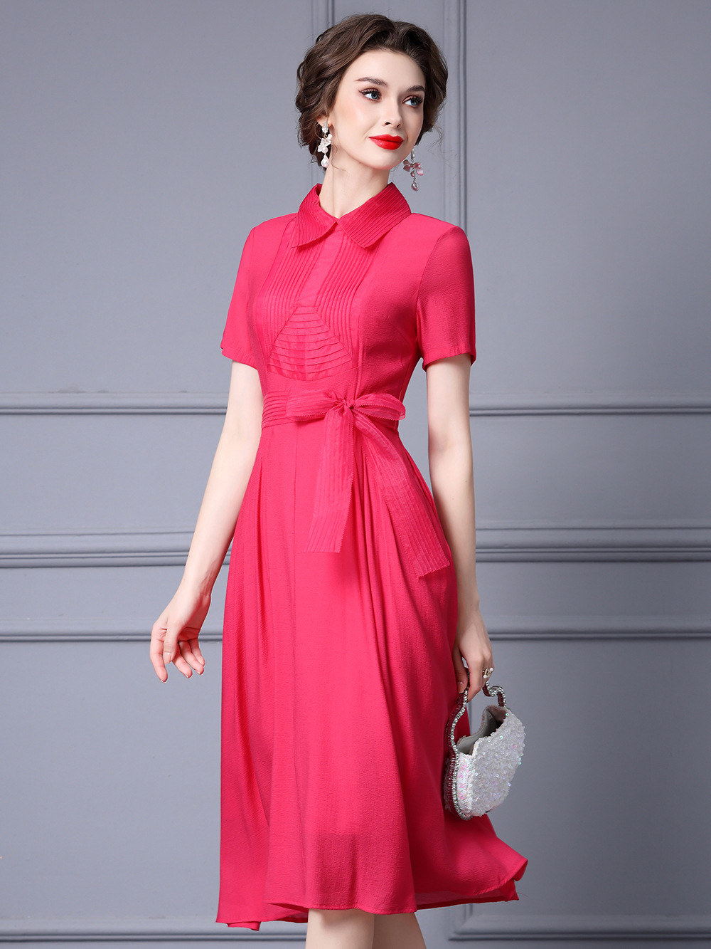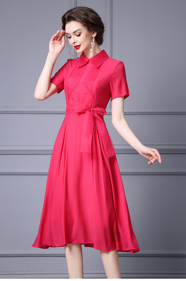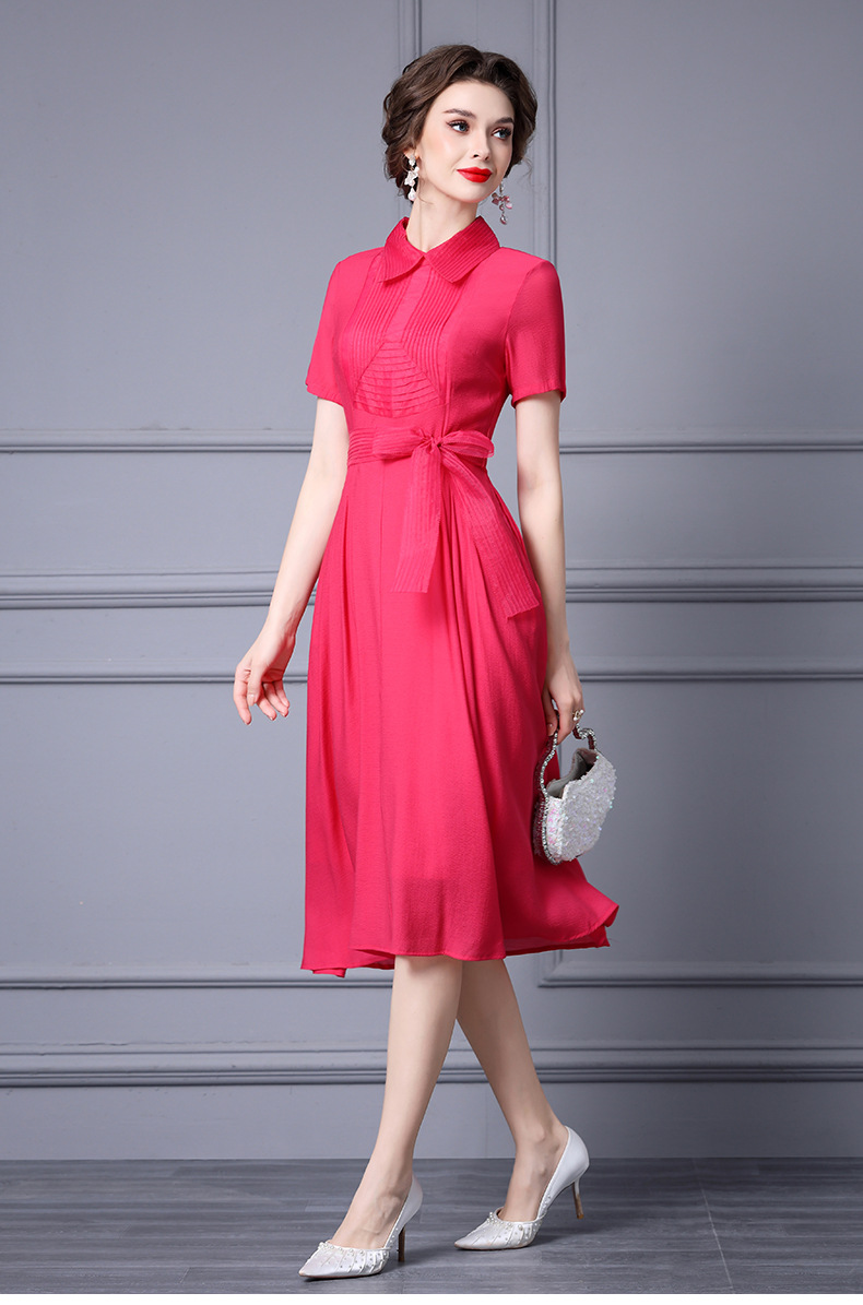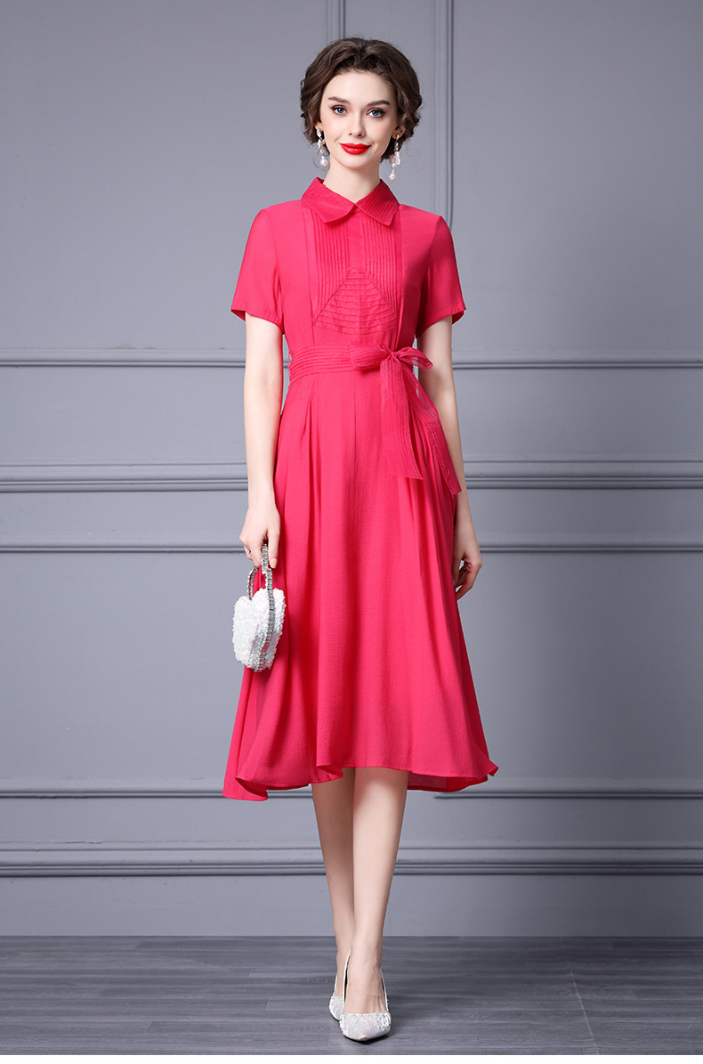 Chiếc đầm dành cho mùa hè 2024 này có điểm nhấn là phần cổ bẻ trang nhã. Thiết kế kết hợp các đường ráp nối cùng kỹ thuật xếp ly tinh tế, tạo nên những đường nét mềm mại. Điều chỉnh vòng eo dễ dàng nhờ dây rút cùng thắt nơ. Phần chân váy xòe rộng mang lại cảm giác thoải mái và nữ tính. Sản phẩm phù hợp cho nhiều dịp đi chơi, dạo phố hay gặp gỡ bạn bè. | Tên sản phẩm: Váy Đầm Liền Thân Nữ Kín Cổ Hàng Mùa Hè - Thời Trang Nữ | Mã sản phẩm: K0665 - Giá: 2.650.000đ | Mã nhà sản xuất: SHDAP-G06Hình ảnh sản phẩm