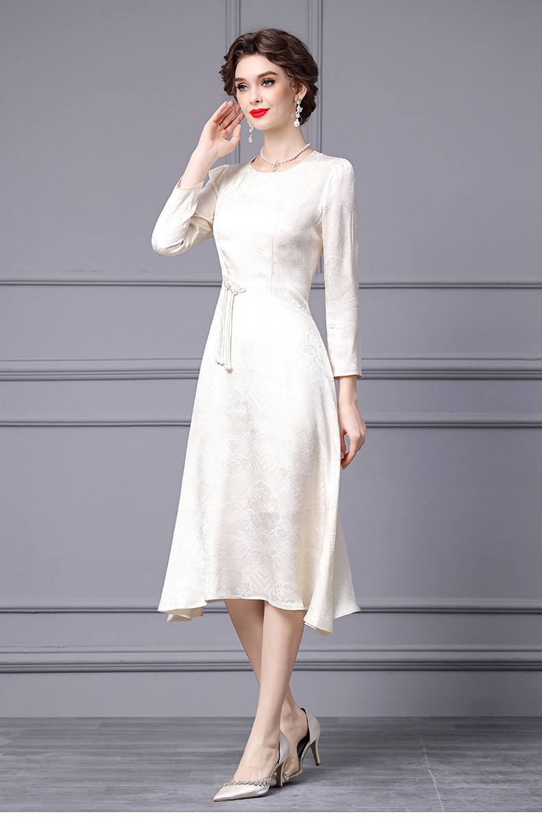 Chiếc đầm xuân này có điểm nhấn từ những đường thêu tinh xảo và họa tiết dệt nổi độc đáo. Vạt đầm xòe rộng tạo dáng thướt tha, thoải mái khi di chuyển. Chất vải mềm mại, thoáng mát phù hợp cho những ngày tiết trời ấm áp. Bạn có thể phối cùng giày bệt hoặc sandal để tạo vẻ nữ tính. Mẫu thiết kế pha trộn nét hiện đại với phong cách truyền thống nhẹ nhàng. | Tên sản phẩm: Váy Đầm Xòe Liền Thân Nữ Thêu Họa Tiết Hoa Hàng Mùa Xuân Thu Đông - Thời Trang Nữ | Mã sản phẩm: K0674 - Giá: 2.680.000đ | Mã nhà sản xuất: SHDAP-G06Hình ảnh sản phẩm