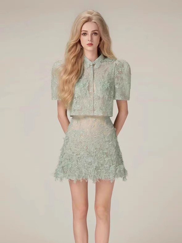 Bộ trang phục này có phần tay áo phồng cách điệu và chiếc váy ngắn, được điểm xuyết bởi họa tiết ren tinh xảo tạo nên vẻ đẹp thanh lịch. Chất liệu co giãn nhẹ mang lại sự thoải mái khi mặc cả ngày dài. Kiểu dáng phù hợp cho nhiều dịp sinh hoạt, từ dạo phố đến gặp gỡ bạn bè. Bạn chỉ cần phối cùng giày sandal và túi xách nhỏ là đã có một bộ trang phục hoàn chỉnh, giúp bạn tự tin tỏa sáng. | Tên sản phẩm: Đồ Bộ Nữ Chất Liệu Ren Ngắn Tay - Thời Trang Nữ | Mã sản phẩm: K0687 - Giá: 3.960.000đ | Mã nhà sản xuất: FORYCT-G06Hình ảnh sản phẩm