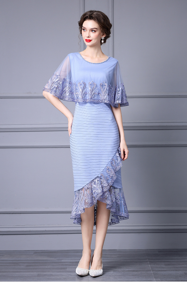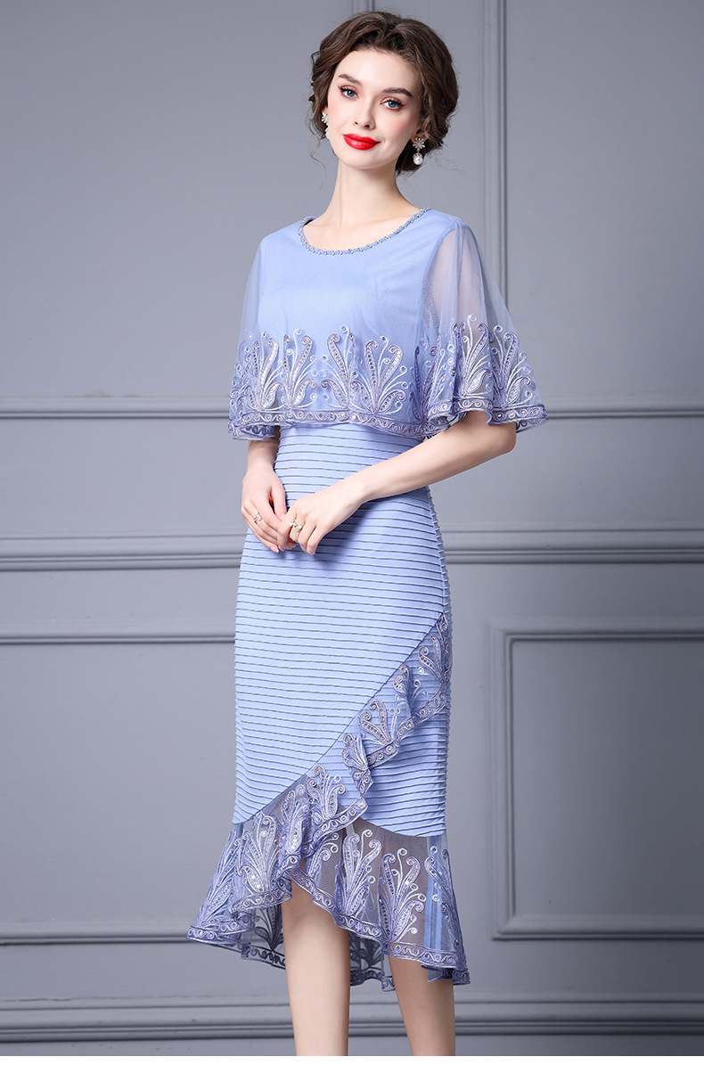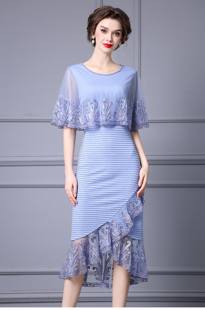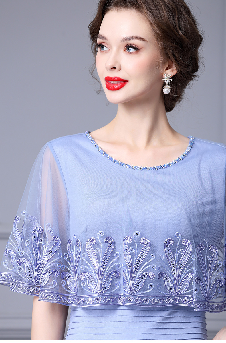 Chiếc váy này được thiết kế dành cho phụ nữ trung niên, toát lên vẻ đẹp dịu dàng và thanh lịch. Kiểu dáng kết hợp giữa thân trên dạng áo choàng nhẹ và phần chân váy bó ôm cơ thể, phía dưới xòe nhẹ như đuôi cá. Chất vải mỏng nhẹ, có điểm những họa tiết thêu tinh tế cùng phần viền lưới mềm mại. Sản phẩm thích hợp mặc trong những dịp thường ngày hoặc các buổi gặp mặt. Cách sử dụng đơn giản, mặc như các loại váy thông thường và phối cùng phụ kiện phù hợp. | Tên sản phẩm: Váy Đầm Liền Thân Nữ Lưới Mỏng Thêu Họa Tiết Hoa Hàng Mùa Hè Trung Niên - Thời Trang Nữ | Mã sản phẩm: K0697 - Giá: 2.870.000đ | Mã nhà sản xuất: SHDAP-G06Hình ảnh sản phẩm
