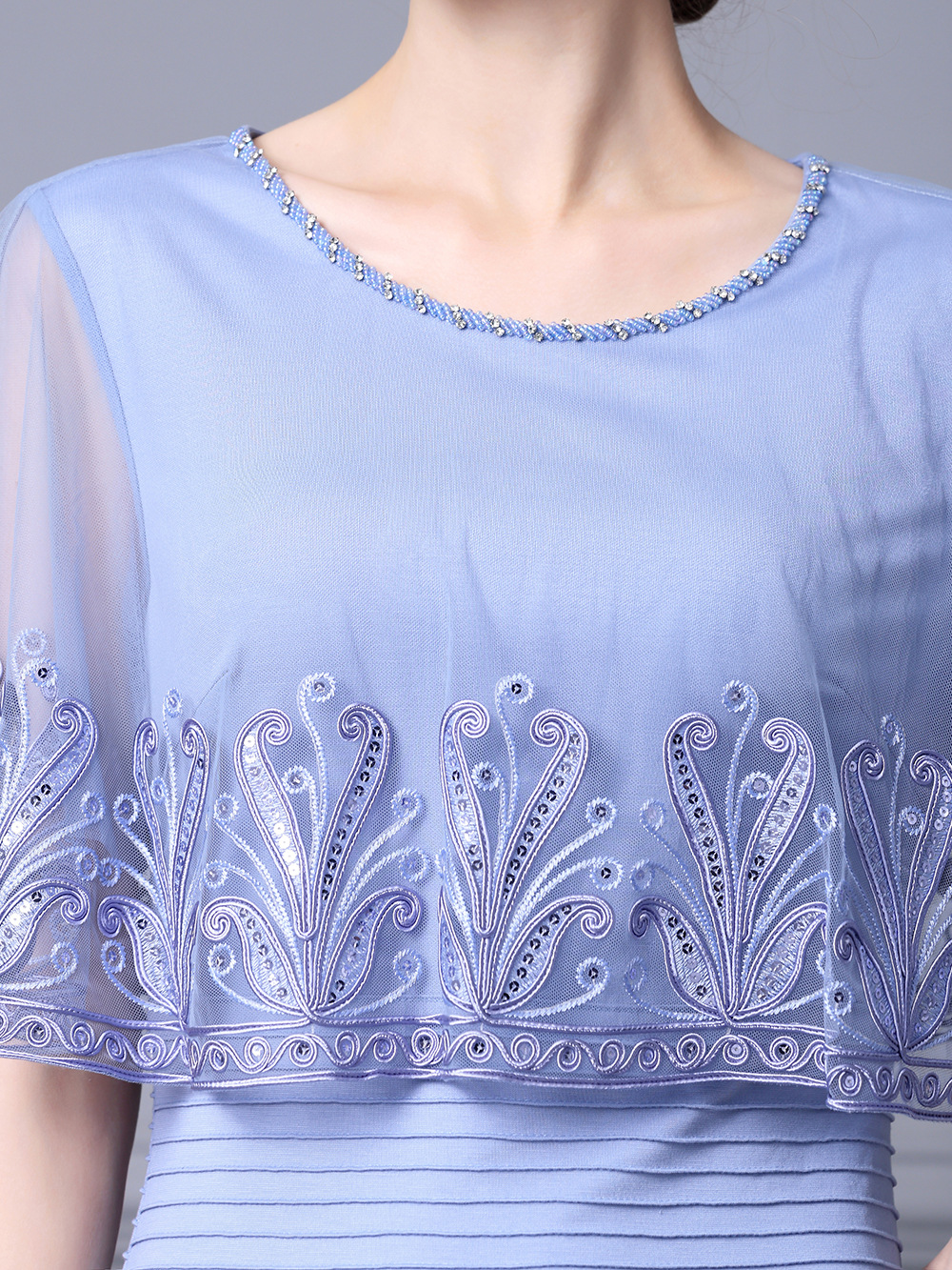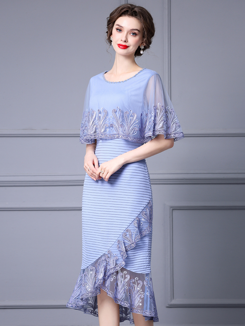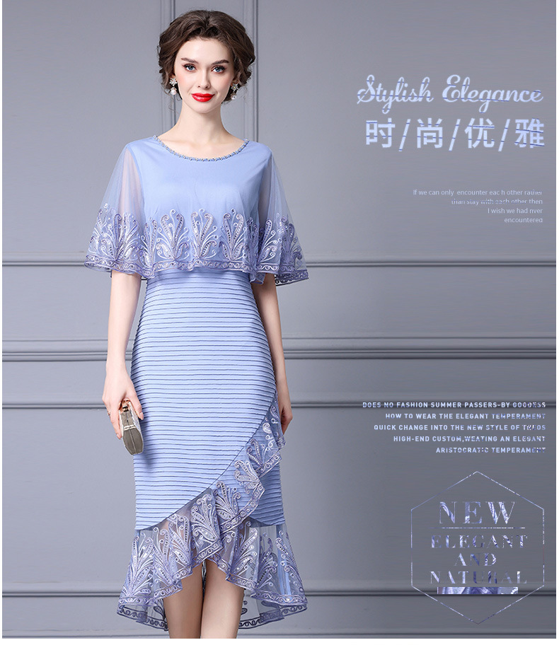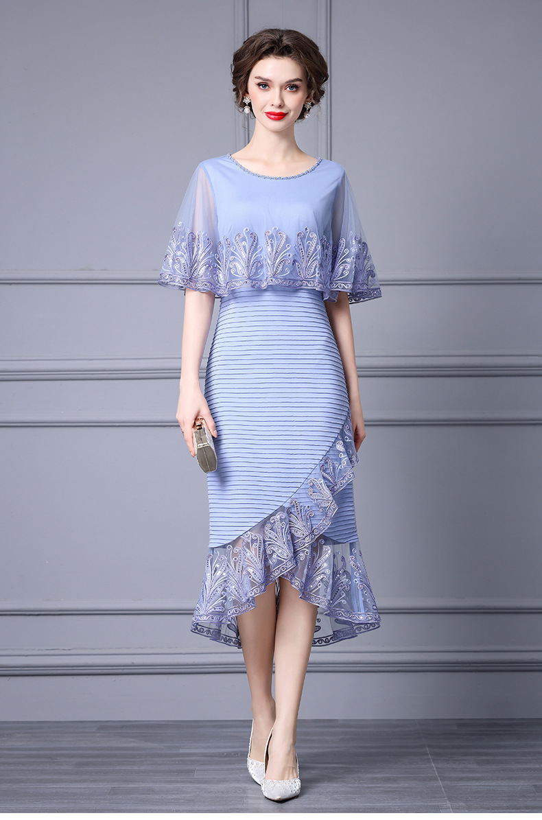 Chiếc váy này được thiết kế dành cho phụ nữ trung niên, toát lên vẻ đẹp dịu dàng và thanh lịch. Kiểu dáng kết hợp giữa thân trên dạng áo choàng nhẹ và phần chân váy bó ôm cơ thể, phía dưới xòe nhẹ như đuôi cá. Chất vải mỏng nhẹ, có điểm những họa tiết thêu tinh tế cùng phần viền lưới mềm mại. Sản phẩm thích hợp mặc trong những dịp thường ngày hoặc các buổi gặp mặt. Cách sử dụng đơn giản, mặc như các loại váy thông thường và phối cùng phụ kiện phù hợp. | Tên sản phẩm: Váy Đầm Liền Thân Nữ Lưới Mỏng Thêu Họa Tiết Hoa Hàng Mùa Hè Trung Niên - Thời Trang Nữ | Mã sản phẩm: K0697 - Giá: 2.870.000đ | Mã nhà sản xuất: SHDAP-G06Hình ảnh sản phẩm