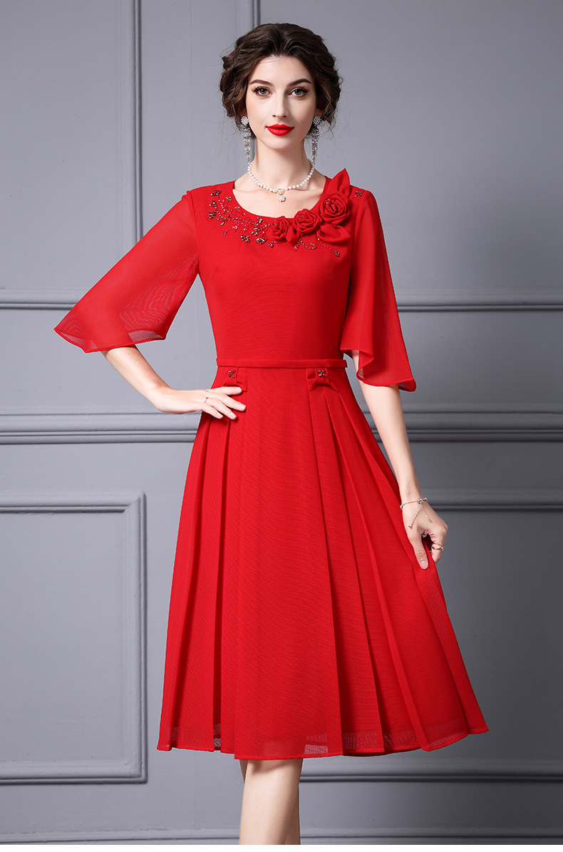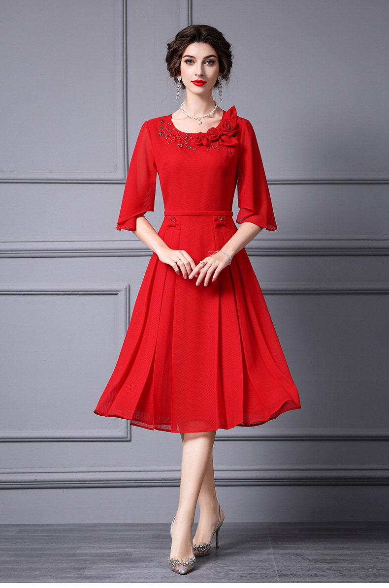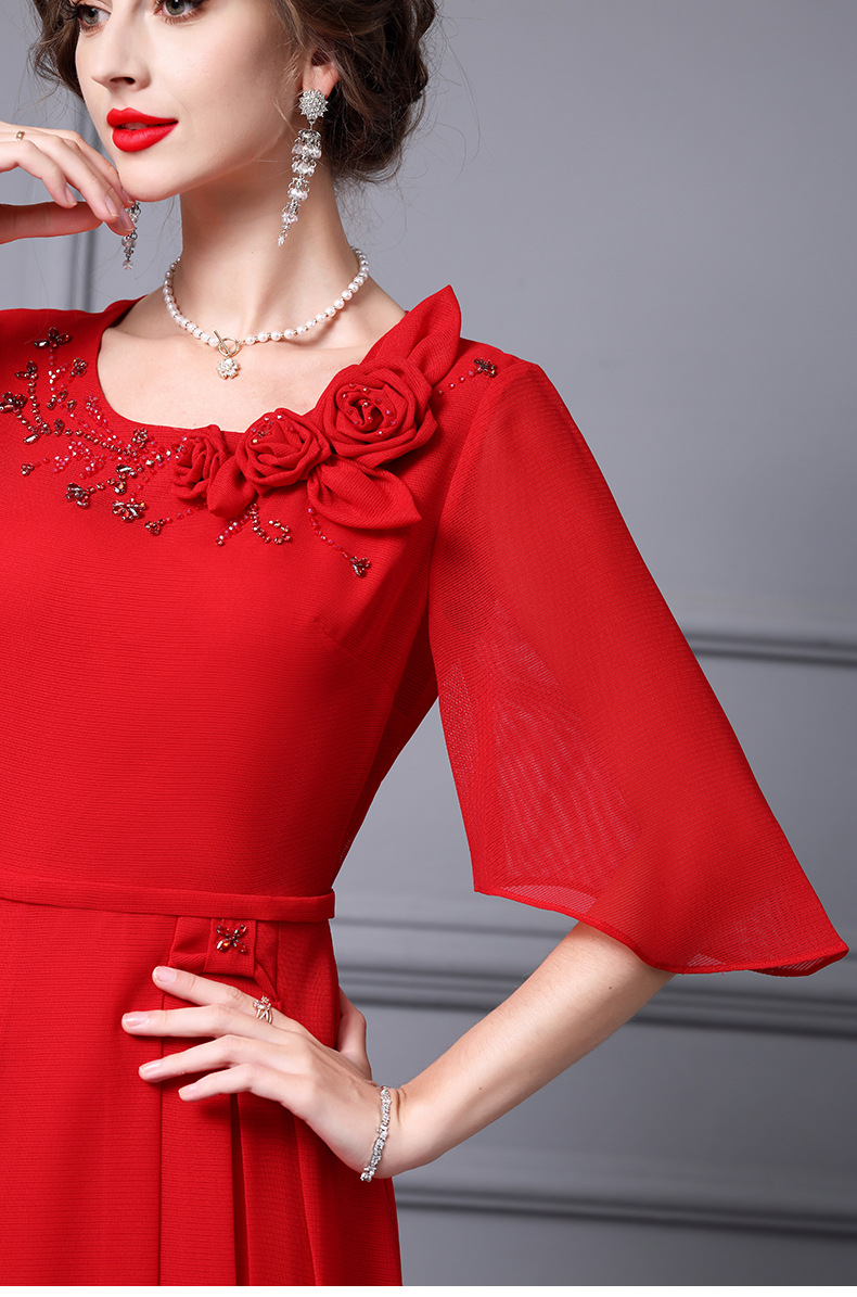 Chiếc đầm dáng chữ A này có điểm nhấn đặc biệt ở phần tay bằng chất liệu voan mỏng nhẹ, được trang trí tỉ mỉ bằng những hạt ngọc tr lấp lánh. Thiết kế màu đỏ rực rỡ, form dáng thanh lịch phù hợp cho những dịp dạo phố hay gặp gỡ bạn bè vào mùa hè. Sản phẩm dễ dàng phối cùng giày cao gót hoặc sandal. Bạn chỉ cần giặt nhẹ nhàng và phơi nơi thoáng mát để giữ dáng đầm bền đẹp. | Tên sản phẩm: Váy Đầm Liền Thân Nữ Hàng Mùa Hè - Thời Trang Nữ | Mã sản phẩm: K0705 - Giá: 3.790.000đ | Mã nhà sản xuất: SHDAP-G06Hình ảnh sản phẩm