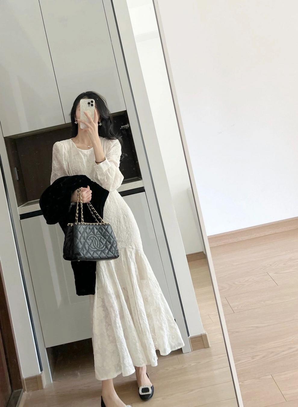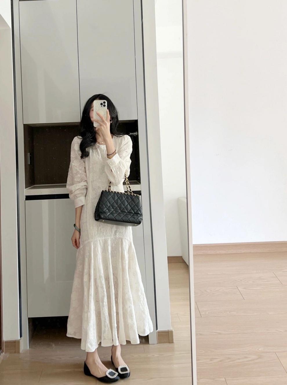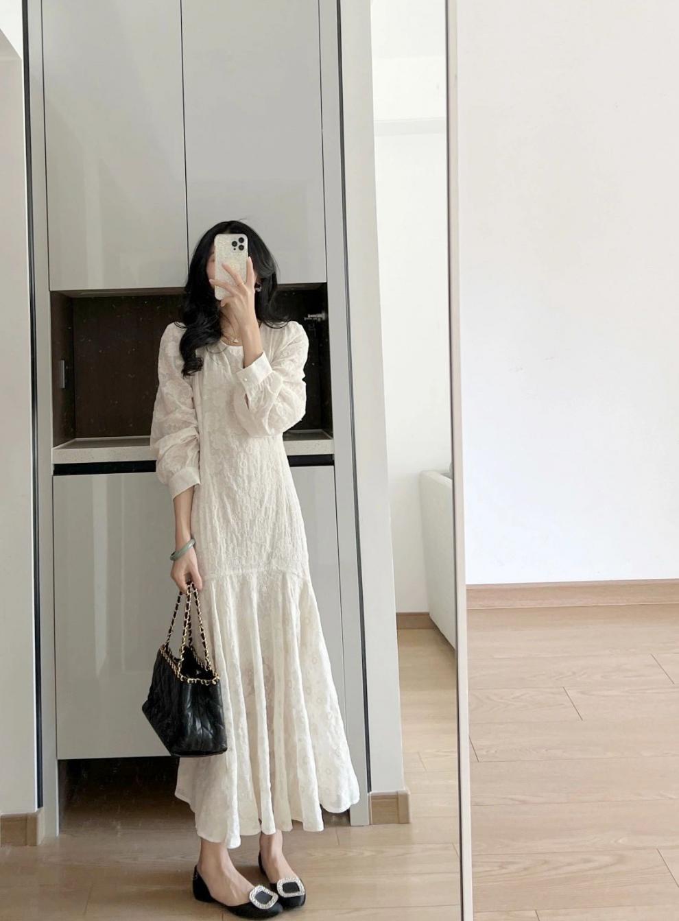 Chiếc đầm dài tay này được làm từ chất liệu voan mỏng nhẹ, tạo cảm giác thoải mái và dịu dàng. Kiểu dáng thướt tha theo phong cách Pháp, giúp tôn lên vẻ đẹp nữ tính. Thiết kế cổ và tay xử lý tinh tế, phù hợp cho những ngày xuân ấm áp. Có thể mặc đi làm, dạo phố hay dự những buổi gặp mặt thân mật. Dễ dàng phối cùng giày bệt hoặc giày có qu. | Tên sản phẩm: Váy Đầm Liền Thân Nữ Chất Liệu Vải Voan Dài Tay Hàng Mùa Xuân Thu Đông - Thời Trang Nữ | Mã sản phẩm: K0737 - Giá: 990.000đ | Mã nhà sản xuất: GUDGA-G03Hình ảnh sản phẩm