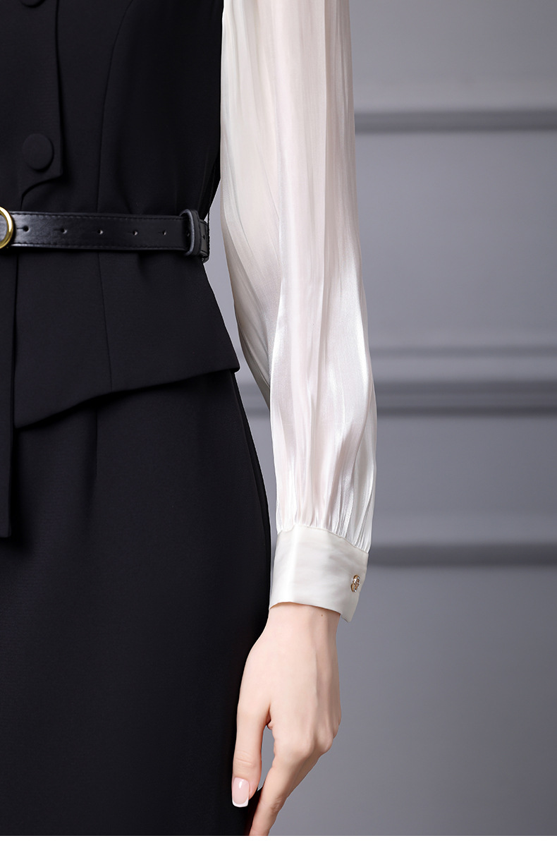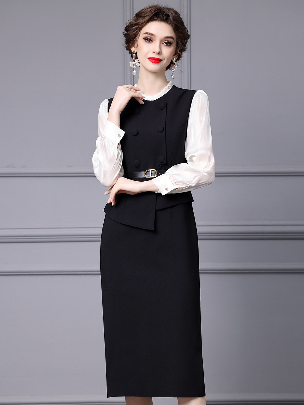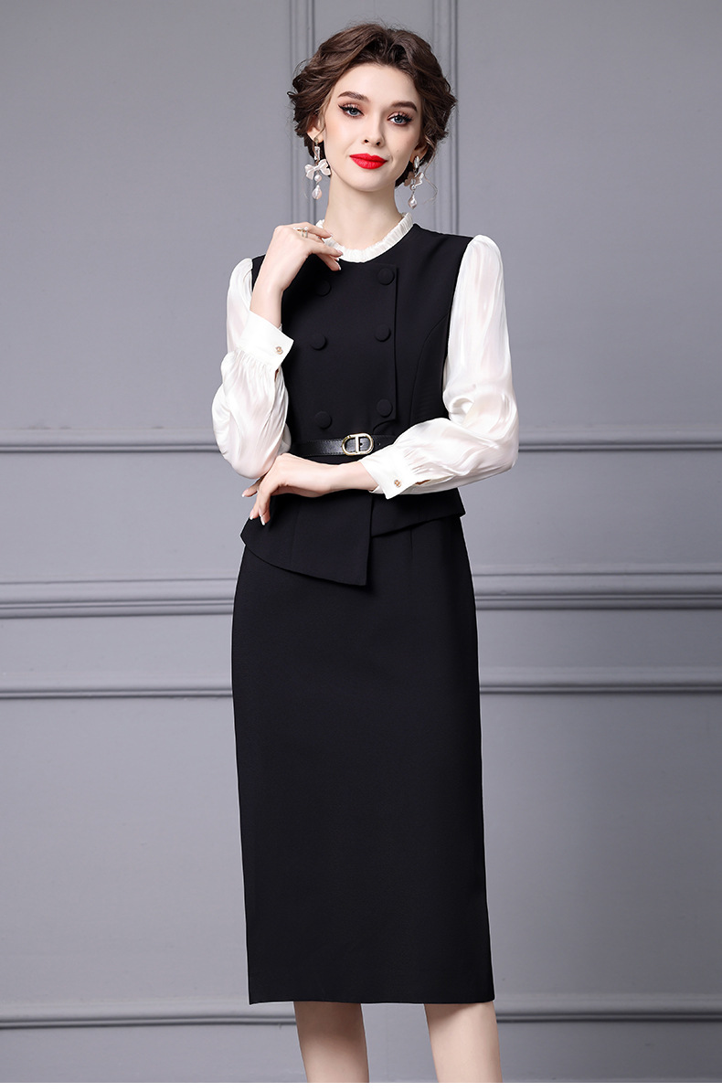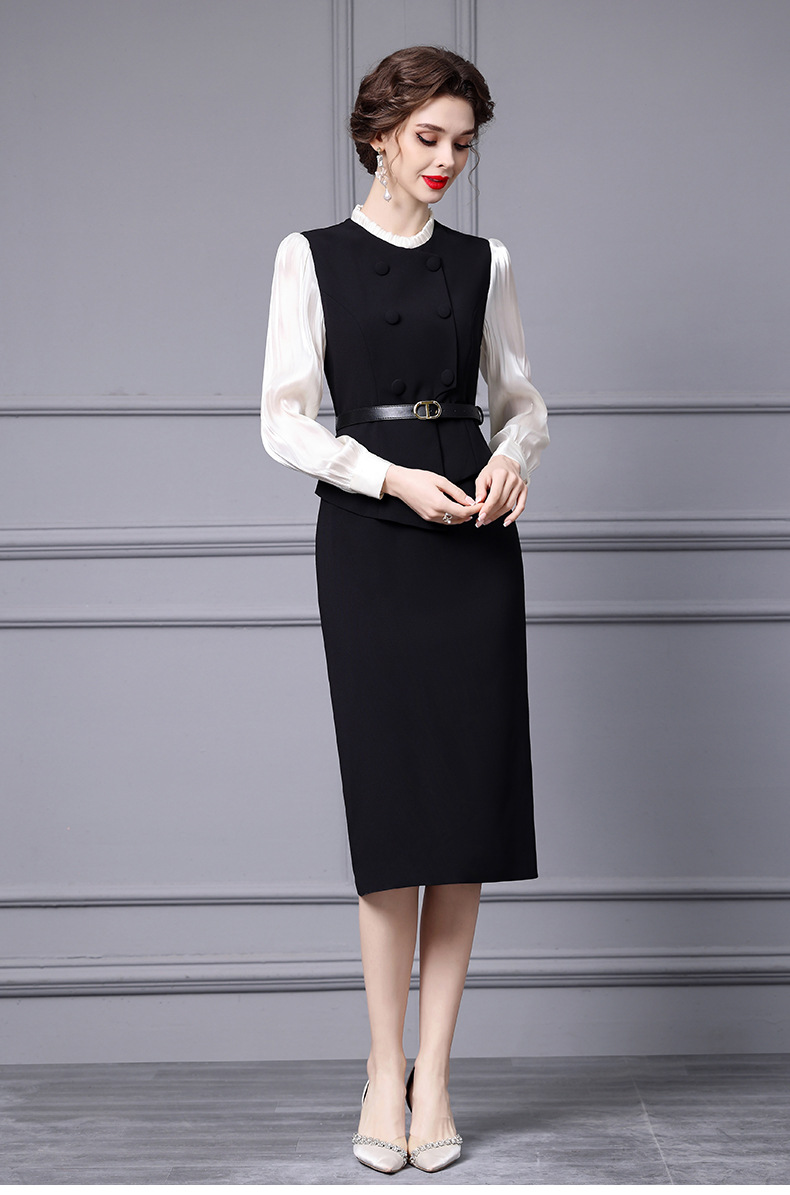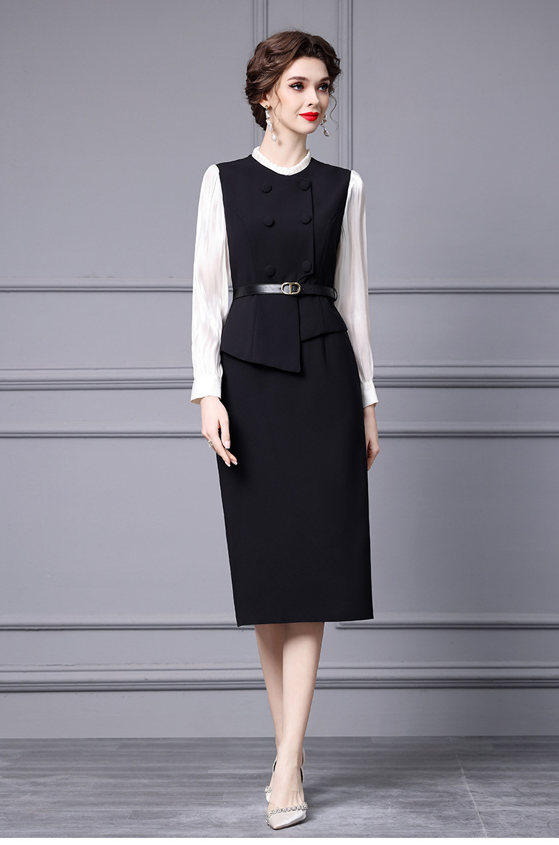 Đầm đi làm với hai tông màu đen trắng được phối cách tinh tế, tạo vẻ ngoài lịch sự và gọn gàng. Thiết kế dáng ôm có thắt nơ eo, giúp tôn dáng một cách tự nhiên. Kiểu dáng giả hai mảnh mang đến sự tiện lợi nhưng vẫn đảm bảo tính thẩm mỹ. Sản phẩm phù hợp cho dịp đi làm, gặp đối tác hoặc dự các buổi gặp mặt. Có thể phối cùng giày gót thấp và túi xách nhỏ để hoàn thiện bộ trang phục. | Tên sản phẩm: Váy Đầm Liền Thân Nữ Cả Bộ 2 Món Hàng Mùa Xuân Thu Đông - Thời Trang Nữ | Mã sản phẩm: K0753 - Giá: 3.050.000đ | Mã nhà sản xuất: SHDAP-G06Hình ảnh sản phẩm