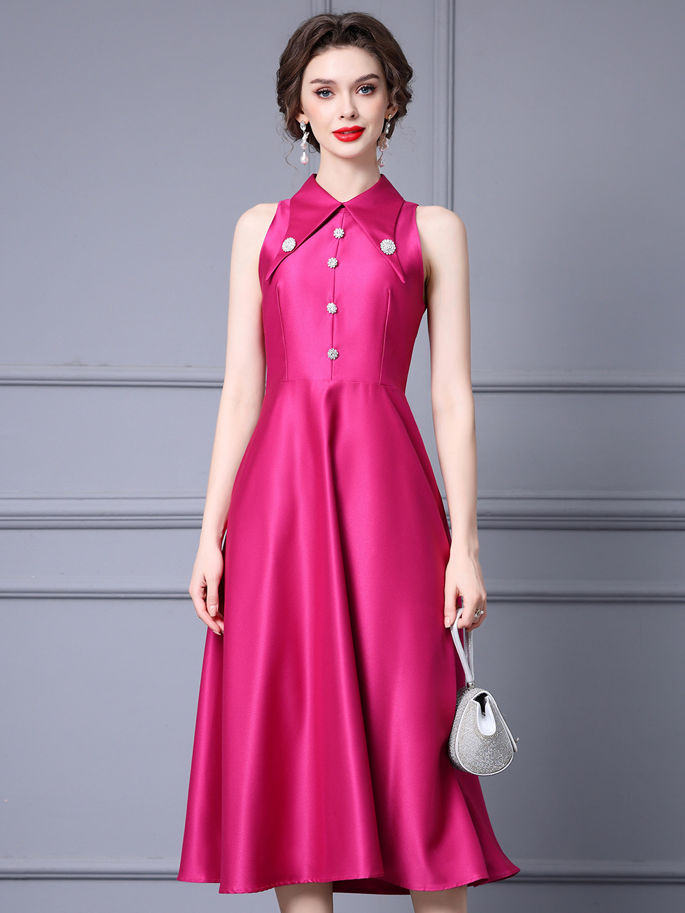 Chiếc đầm này có màu hồng đỏ tươi sáng, phù hợp cho mùa hè. Kiểu dáng không tay, cổ bẻ và eo cao giúp tôn dáng người mặc. Điểm nhấn đặc biệt là những hạt đá được gắn thủ công tinh xảo quanh cổ áo, tạo nên vẻ đẹp nổi bật. Chất vải mềm mại, thoáng mát mang lại sự dễ chịu khi mặc. Sản phẩm thích hợp dự tiệc hoặc các dịp gặp gỡ. Bạn có thể phối cùng giày cao gót và túi xách nhỏ để hoàn thiện bộ trang phục. | Tên sản phẩm: Váy Đầm Liền Thân Nữ Kín Cổ Hàng Mùa Hè - Thời Trang Nữ | Mã sản phẩm: K0785 - Giá: 2.690.000đ | Mã nhà sản xuất: SHDAP-G06Hình ảnh sản phẩm