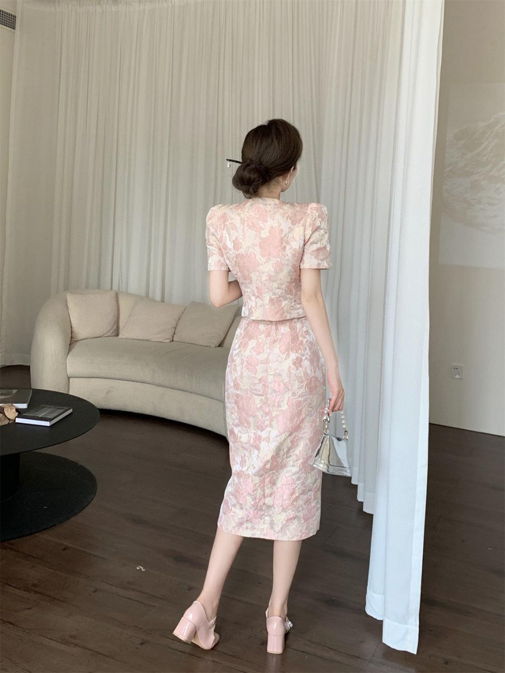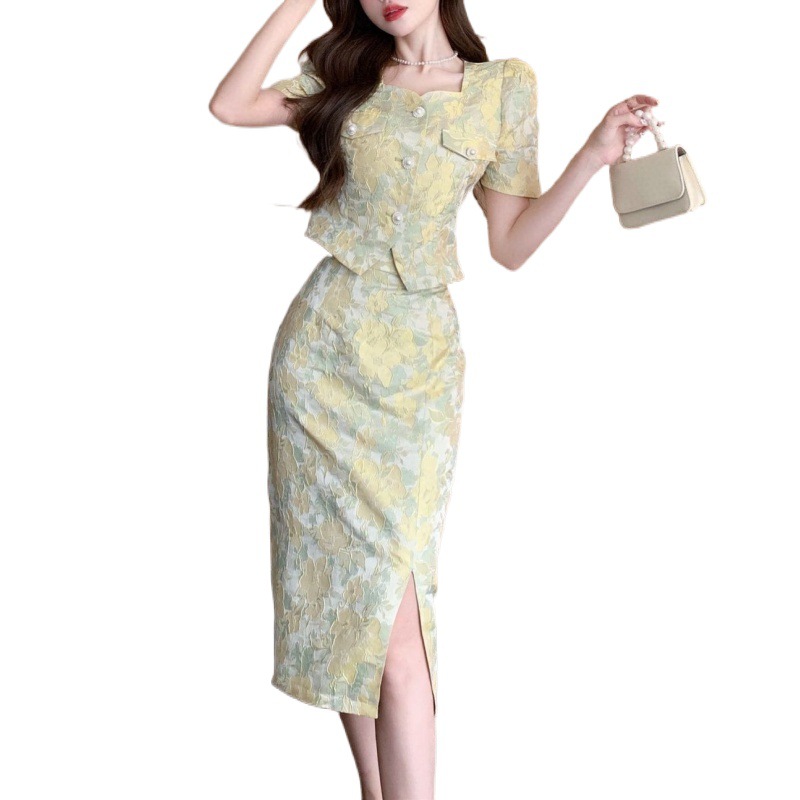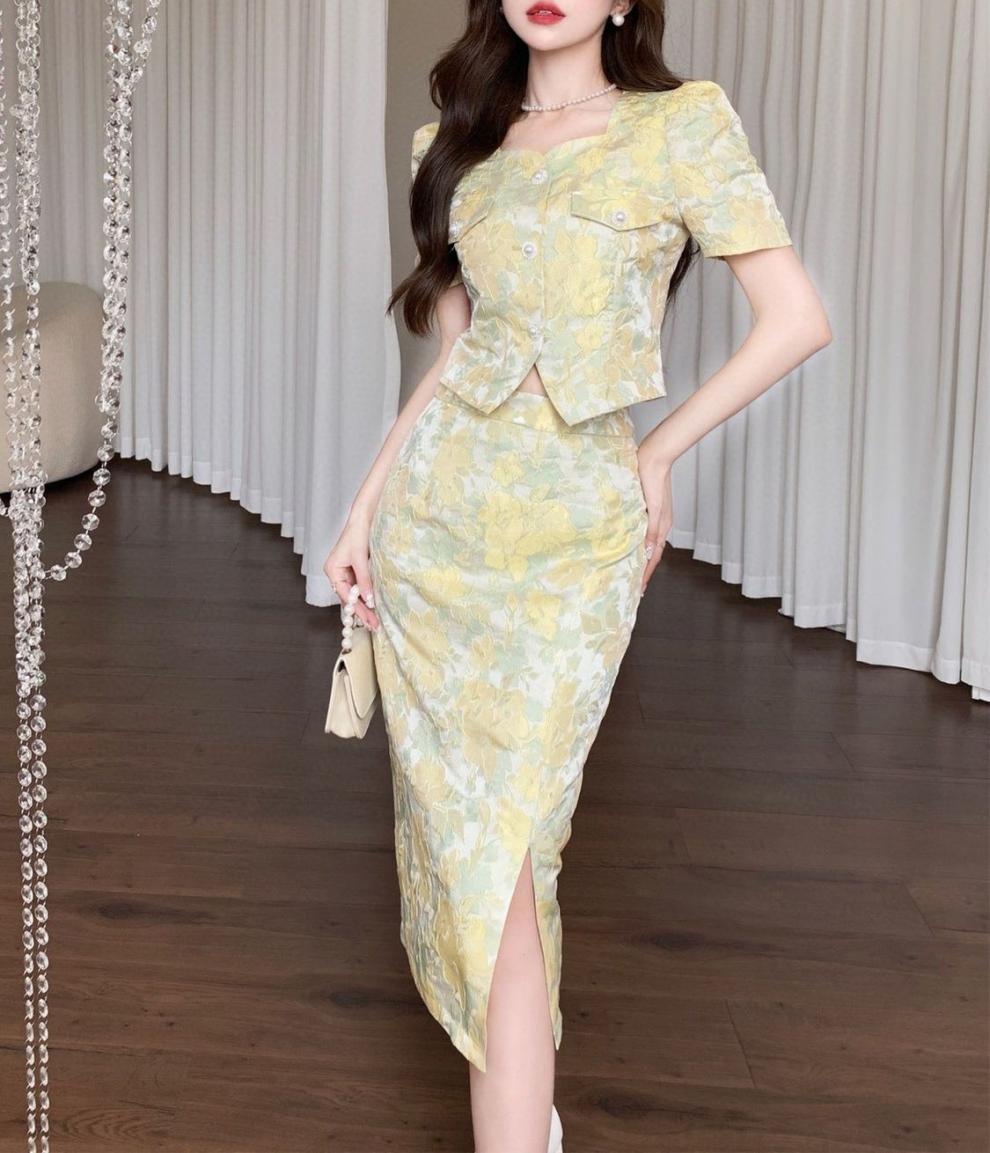 Bộ trang phục hai mảnh này gồm áo ngắn và chân váy, được thiết kế dành riêng cho mùa hè. Áo kiểu dáng ngắn tay, phối cùng chân váy dài tạo nên vẻ ngoại hình thanh lịch. Chất vải dệt hoa văn tinh tế, mang đến cảm giác mát mẻ, thoải mái khi mặc. Bạn có thể phối bộ này đi làm, dự tiệc hoặc những dịp gặp mặt thông thường. Mix đồ hoàn chỉnh cùng giày cao gót và túi xách nhỏ để có vẻ ngoài hài hòa. | Tên sản phẩm: Đồ Bộ Nữ Cả Bộ 2 Món Họa Tiết Hoa Hàng Mùa Hè - Thời Trang Nữ | Mã sản phẩm: k0791 - Giá: 1.430.000đ | Mã nhà sản xuất: CHTYAI-G04Hình ảnh sản phẩm