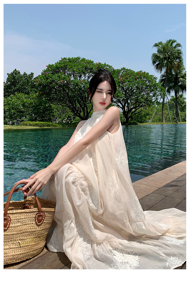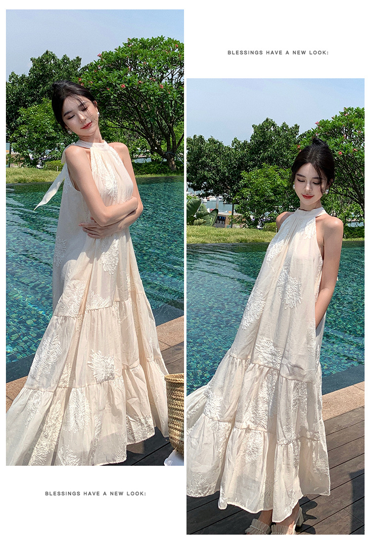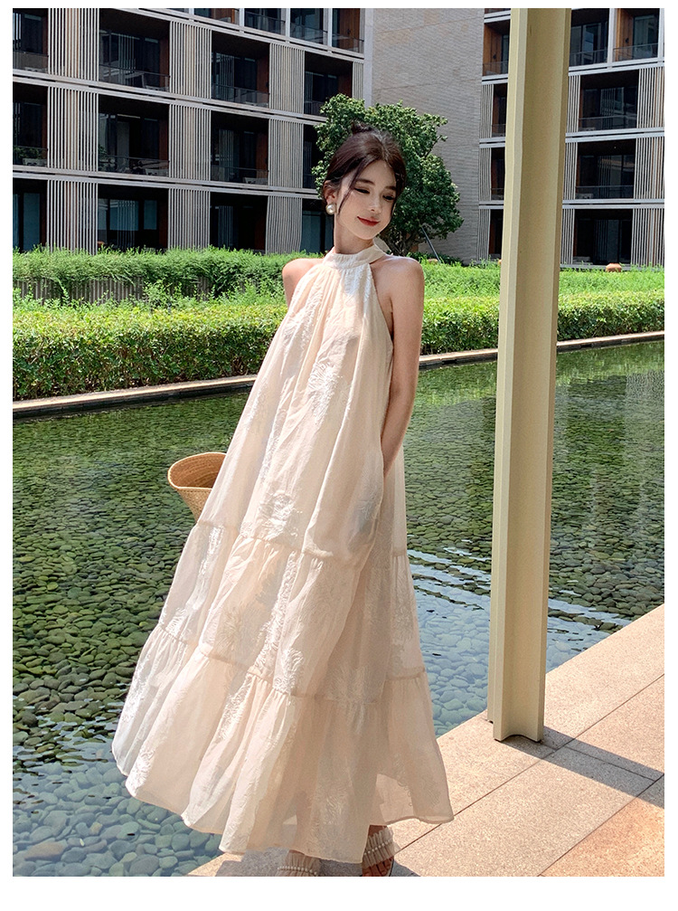 Chiếc váy dài mang phong cách dịu dàng, phù hợp cho mùa hè và những chuyến đi biển. Thiết kế cổ vòng ôm trọn vòng cổ, kết hợp với phần v áo được khoét nhẹ nhàng, tôn lên vẻ đẹp nữ tính. Kiểu dáng thướt tha như công chúa, giúp người mặc cảm thấy thoải mái và tự tin. Cách sử dụng rất đơn giản, bạn chỉ cần mặc và điều chỉnh phần dây vòng cổ cho vừa vặn là đã có một set đồ hoàn hảo. | Tên sản phẩm: Váy Đầm Liền Thân Dáng Dài Nữ Hàng Mùa Hè Đồ Đi Biển Váy Maxi - Thời Trang Nữ | Mã sản phẩm: K0819 - Giá: 870.000đ | Mã nhà sản xuất: GUDGA-G03Hình ảnh sản phẩm