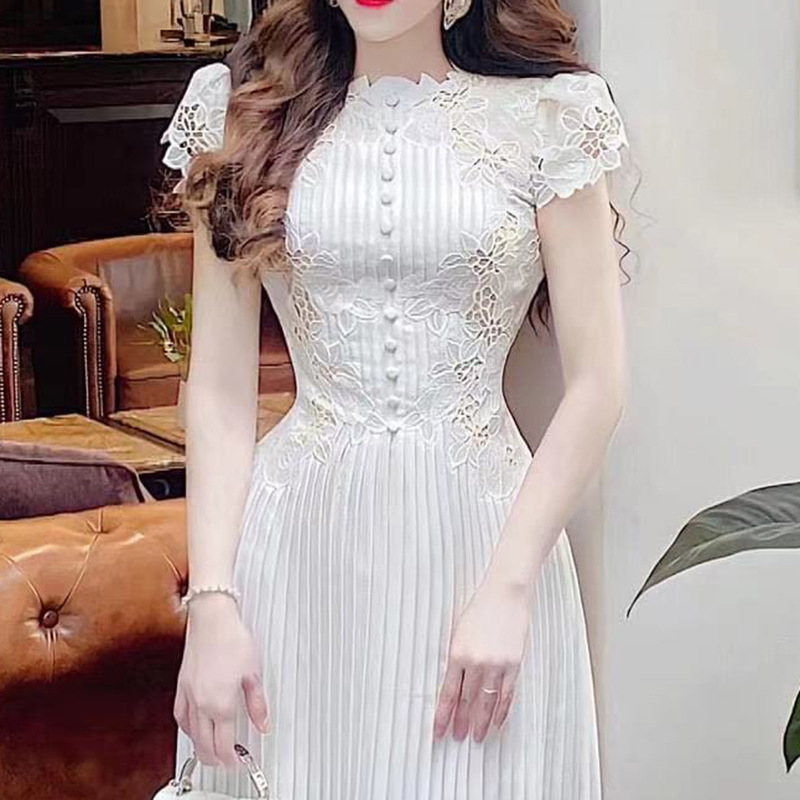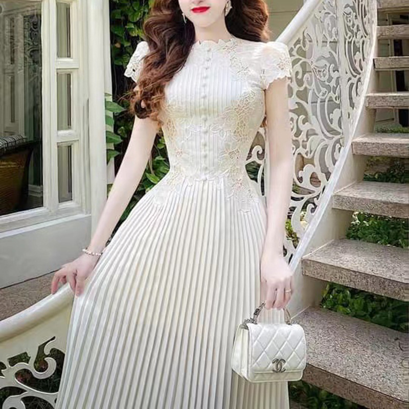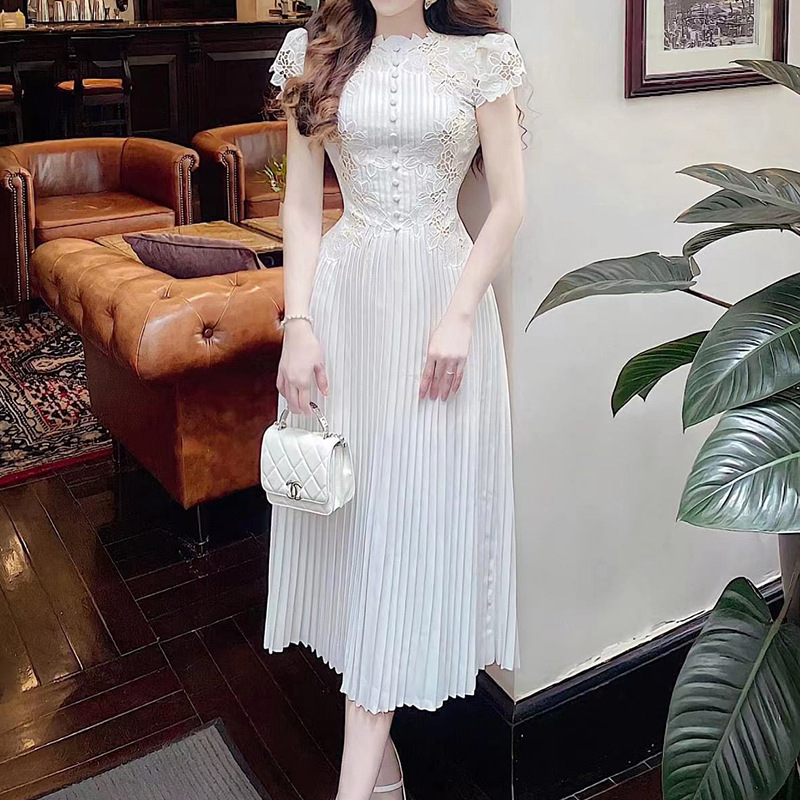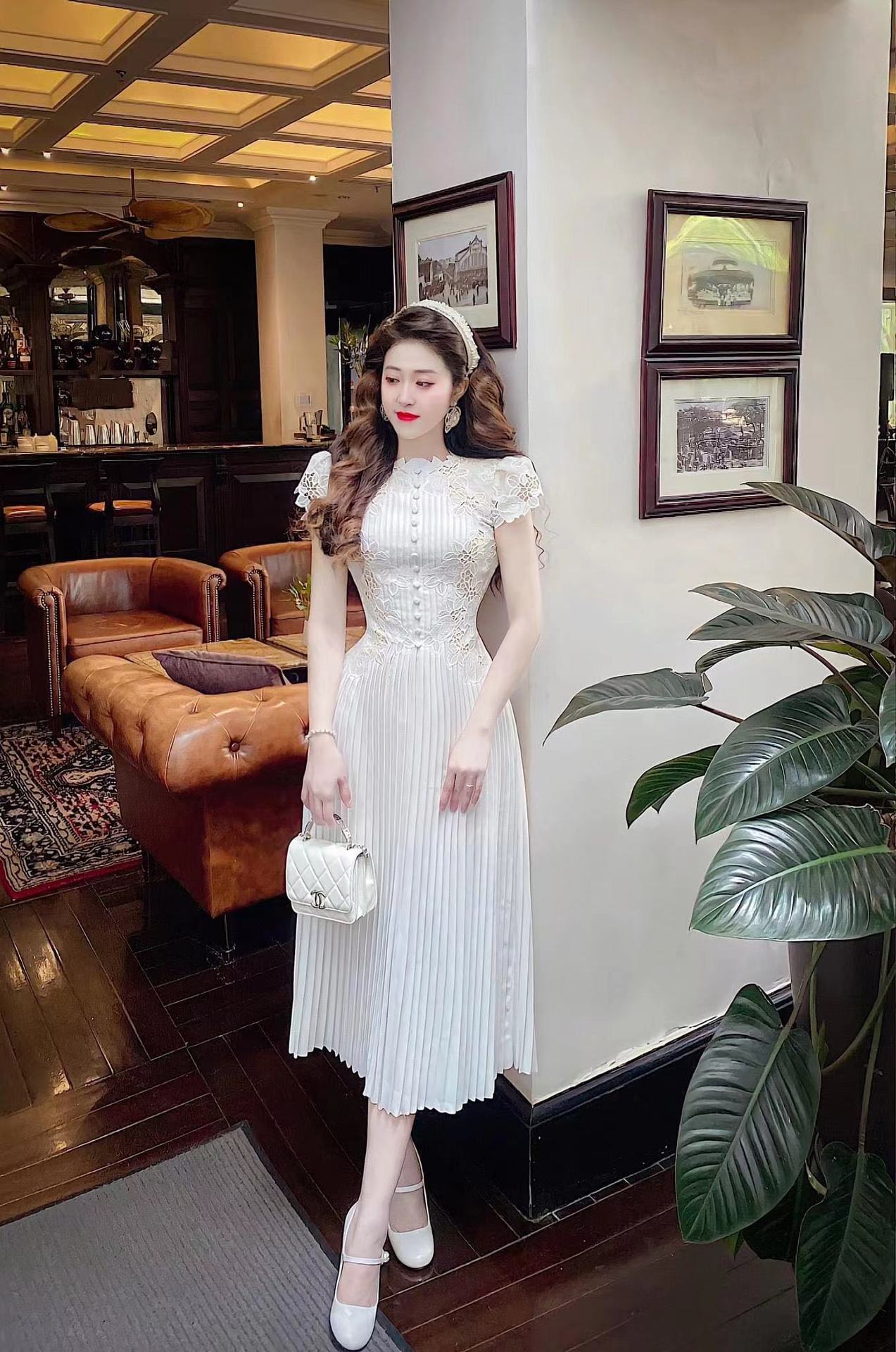 Chiếc đầm dành cho những cô nàng dịu dàng, thanh lịch. Thiết kế cổ yếm, tay phồng cùng phần eo thắt dây tạo điểm nhấn. Điểm nổi bật là họa tiết ren thêu tinh tế kết hợp với phần chân váy xếp ly nhẹ nhàng, giúp tôn lên vóc dáng và sự nữ tính. Chất vải mềm mại, thoáng mát, phù hợp cho mùa hè. Có thể mặc đi làm, dạo phố hay dự những buổi gặp mặt. | Tên sản phẩm: Váy Đầm Liền Thân Nữ Chất Liệu Ren Thêu Họa Tiết Hoa Hàng Mùa Hè - Thời Trang Nữ | Mã sản phẩm: k0862 - Giá: 1.380.000đ | Mã nhà sản xuất: GUDG-G04Hình ảnh sản phẩm