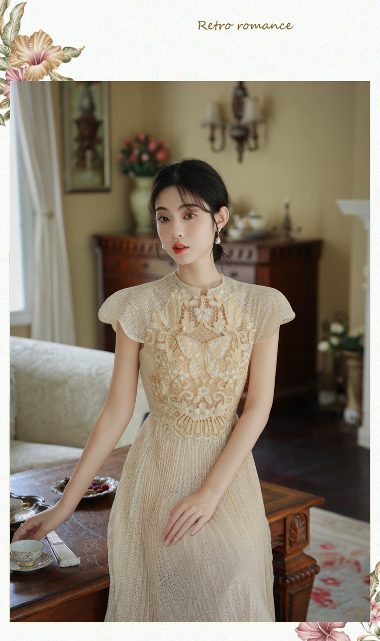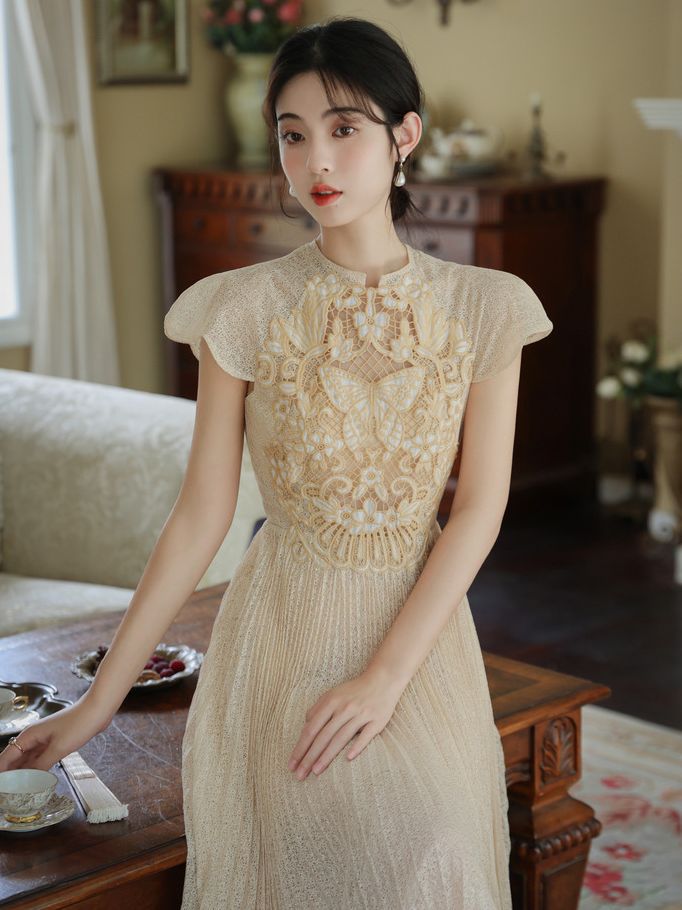 Chiếc đầm ngắn tay này có điểm nhấn là những đường thêu tỉ mỉ kết hợp họa tiết khoét lỗ tinh tế. Thiết kế dáng dài với phần chân váy xếp lớp tạo nên sự uyển chuyển, phù hợp cho những dịp dạo phố hay đi chơi. Chất vải nhẹ nhàng giúp người mặc cảm thấy thoải mái. Bạn có thể phối cùng giày sandal và một chiếc mũ rộng vành để tôn lên vẻ đẹp của trang phục. | Tên sản phẩm: Váy Đầm Liền Thân Dáng Dài Nữ Ngắn Tay Thêu Họa Tiết Hoa - Thời Trang Nữ | Mã sản phẩm: k0893 - Giá: 1.390.000đ | Mã nhà sản xuất: GUDG-G04Hình ảnh sản phẩm