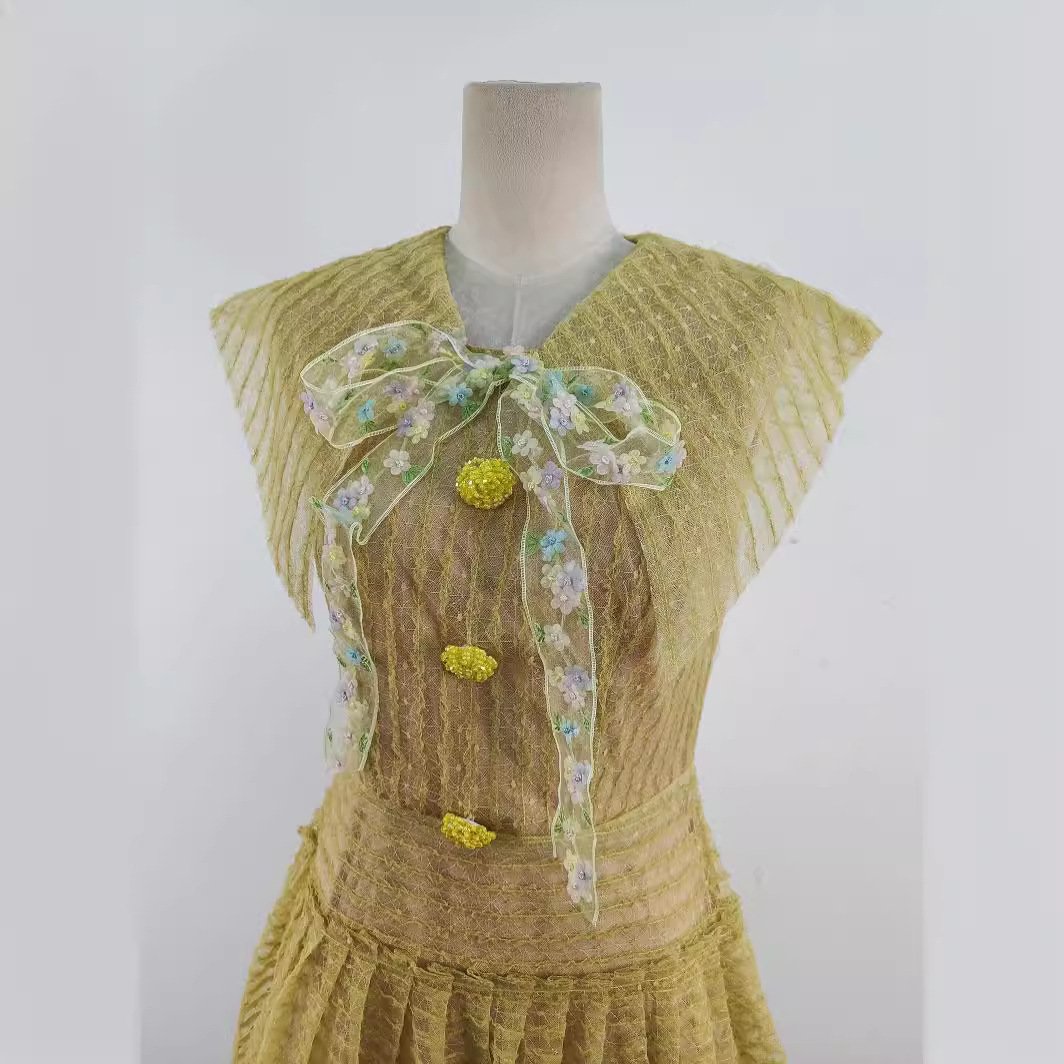 Chiếc đầm ngắn mới này có điểm nhấn là cổ áo kiểu búp bê và nơ xinh xắn. Chất vải ren mỏng nhẹ tạo nên vẻ duyên dáng, trong khi thiết kế ôm eo giúp tôn dáng người mặc. Sản phẩm phù hợp cho những dịp đi chơi, dạo phố hay chụp ảnh. Bạn có thể mặc cùng giày bệt hoặc giày có qu để hoàn thiện set đồ. | Tên sản phẩm: Váy Đầm Liền Thân Nữ Chất Liệu Ren Thắt Nơ Bướm - Thời Trang Nữ | Mã sản phẩm: K0898 - Giá: 3.520.000đ | Mã nhà sản xuất: FORYCT-G06Hình ảnh sản phẩm
