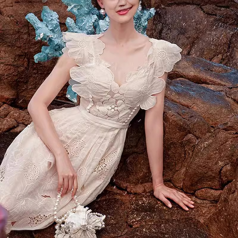 Chiếc đầm dạ hội này mang đến vẻ đẹp nhẹ nhàng, thanh thoát. Chất liệu voan mỏng trong suốt tạo nên sự mềm mại, bay bổng. Trên nền vải là những bông hoa được thêu tinh xảo, điểm xuyết duyên dáng. Kiểu dáng ôm nhẹ cơ thể, phù hợp cho các buổi tiệc hoặc sự kiện. Mặc cùng giày cao gót và phụ kiện tóc đơn giản để hoàn thiện phong cách. | Tên sản phẩm: Váy Đầm Liền Thân Nữ Thêu Họa Tiết Hoa - Thời Trang Nữ | Mã sản phẩm: k0901 - Giá: 1.720.000đ | Mã nhà sản xuất: GUDG-G05Hình ảnh sản phẩm