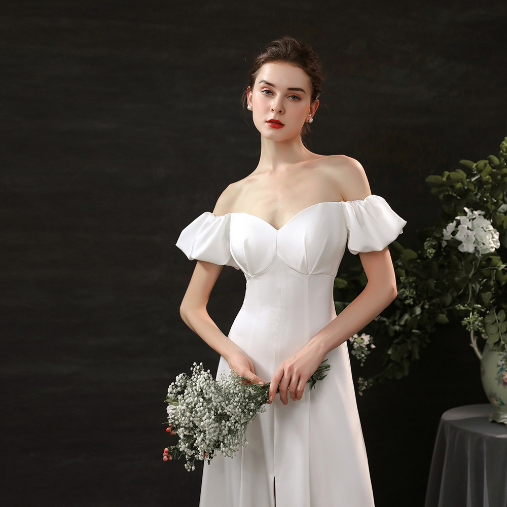 Váy cưới với phần v được khoét thẳng tạo nên điểm nhấn thanh lịch, kết hợp tay bồng nhẹ nhàng. Chất vải satin mềm mại ôm sát cơ thể một cách tinh tế, giúp tôn lên những đường nét cơ thể. Thiết kế dáng chữ A với phần váy xòe nhẹ vừa chạm đất, phù hợp cho các buổi tiệp hay sự kiện. Bạn chỉ cần mặc và kéo nhẹ phần v để tạo dáng hoàn hảo. | Tên sản phẩm: Váy Đầm Liền Thân Nữ Dáng Chữ A Tay Phồng Dùng Trong Lễ Cưới - Thời Trang Nữ | Mã sản phẩm: K0958 - Giá: 1.710.000đ | Mã nhà sản xuất: SHTYFA-G05Hình ảnh sản phẩm