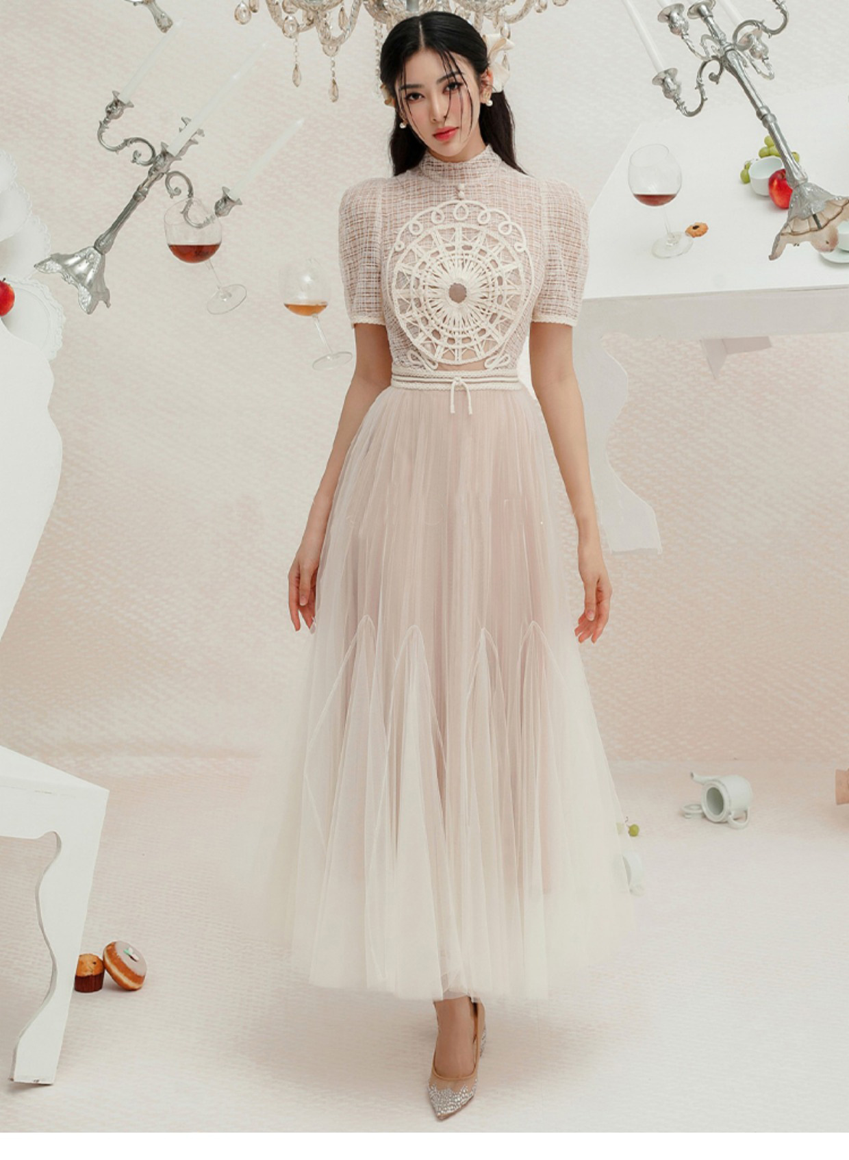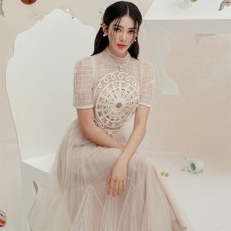 Chiếc đầm dài mang phong cách thoáng nhẹ cho những ngày xuân hè. Chất vải mỏng kết hợp những chi tiết đan móc tinh tế và lớp voan mềm mại, tạo nên vẻ đẹp dịu dàng và nữ tính. Thiết kế ôm nhẹ cơ thể, phù hợp cho nhiều dịp gặp gỡ hằng ngày. Có thể mặc một mình hoặc phối cùng áo khoác mỏng tùy thích. Giặt tay và phơi nơi râm mát để giữ dáng áo bền lâu. | Tên sản phẩm: Váy Đầm Liền Thân Dáng Dài Nữ Chất Liệu Ren Lưới Mỏng Họa Tiết Hoa Hàng Mùa Hè - Thời Trang Nữ | Mã sản phẩm: k0964 - Giá: 1.290.000đ | Mã nhà sản xuất: GUDG-G04Hình ảnh sản phẩm