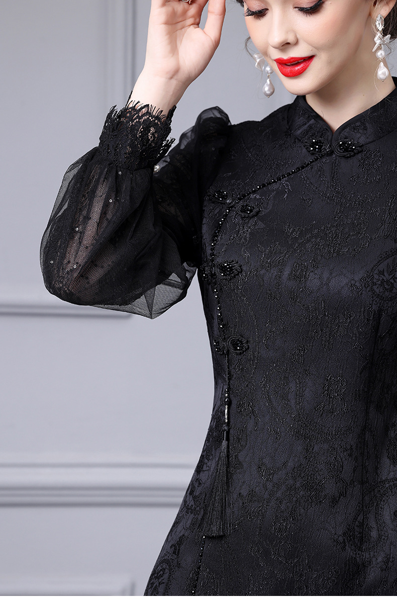 Áo dài cách tân mang phong cách hiện đại kết hợp nét cổ điển. Váy có họa tiết dệt nổi tinh tế, kết hợp chất vải mỏng nhẹ tạo nên sự dịu dàng. Điểm nhấn là hàng khuy cài kiểu truyền thống được cách điệu tinh xảo. Thiết kế phù hợp cho tiết trời mát mẻ. Có thể mặc đi làm, dự tiệc hoặc những dịp gặp mặt. Phối cùng giày gót thấp và túi xách nhỏ để hoàn thiện bộ trang phục. | Tên sản phẩm: Váy Đầm Liền Thân Nữ Chất Liệu Ren Lưới Mỏng Họa Tiết Hoa Hàng Mùa Xuân Thu Đông Phục Cổ Cổ Điển - Thời Trang Nữ | Mã sản phẩm: K0984 - Giá: 2.690.000đ | Mã nhà sản xuất: SHDAP-G06Hình ảnh sản phẩm