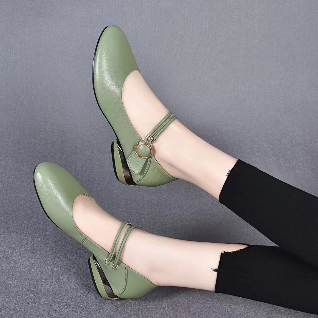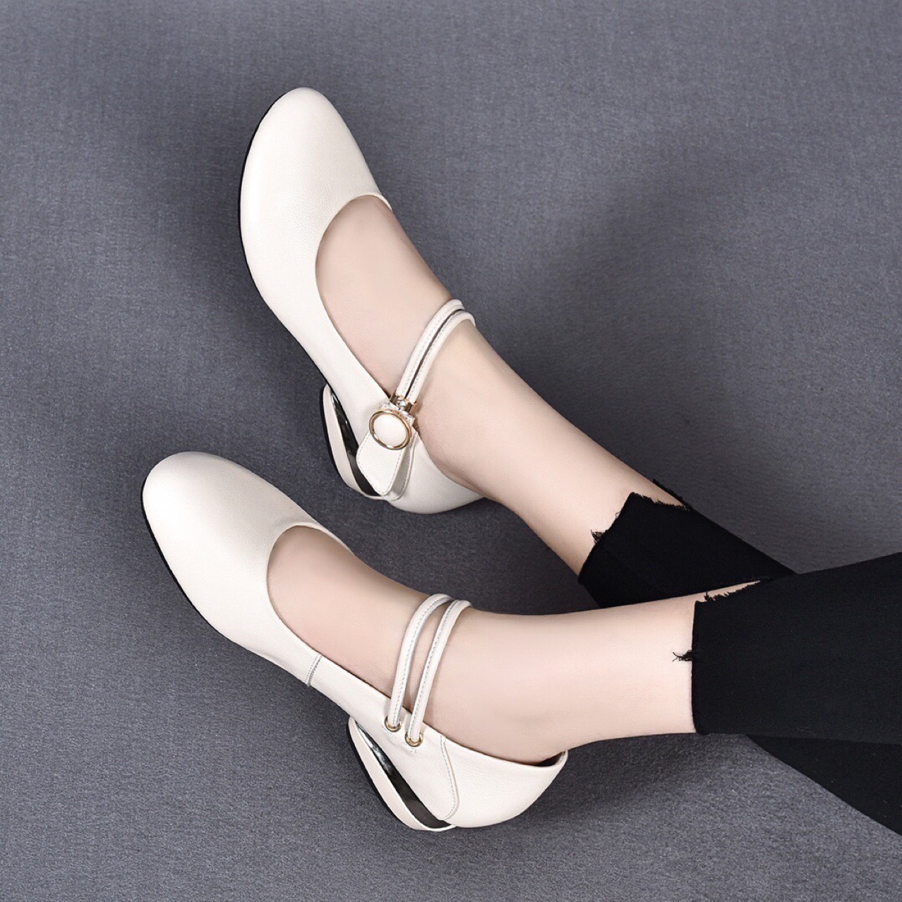 Giày da thật dành cho nữ, kiểu dáng đơn giản với qu cài tiện lợi. Chất liệu da mềm mại cùng đế nhẹ tạo cảm giác dễ chịu khi mang. Mẫu giày này có phần gót thấp vừa phải, phù hợp cho những bước đi hàng ngày. Dễ dàng phối cùng nhiều loại trang phục khác nhau như quần tây, váy hay quần jeans. Sử dụng bằng cách xỏ chân vào và cài qu cho vừa vặn. | Tên sản phẩm: Giày Cao Gót Nữ Chất Liệu Da Bò Đế Mềm Quai Hậu Hàng Mùa Hè Trung Niên - Giày Dép Nữ | Mã sản phẩm: K0997 - Giá: 1.240.000đ | Mã nhà sản xuất: TOREHU-G04Hình ảnh sản phẩm