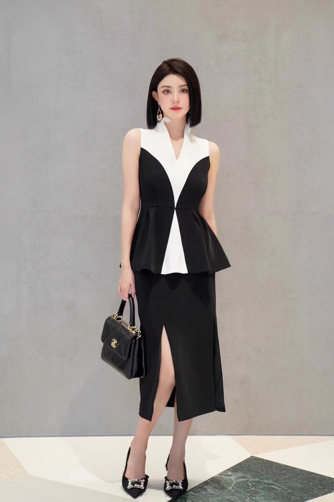 Bộ trang phục hai mảnh này có điểm nhấn là áo khoác cổ bẻ kết hợp cùng đầm vest bên trong. Họa tiết hoa lá và cách phối màu tương phản tạo nên vẻ đẹp trẻ trung, năng động. Thiết kế eo thon giúp tôn dáng người mặc. Sản phẩm phù hợp cho những buổi đi làm hoặc dạo phố. Có thể mặc nguyên bộ hoặc phối cùng các trang phục khác để đa dạng phong cách. | Tên sản phẩm: Đồ Bộ Nữ Cả Bộ 2 Món Họa Tiết Hoa Kín Cổ - Thời Trang Nữ | Mã sản phẩm: K1003 - Giá: 3.240.000đ | Mã nhà sản xuất: FORYCT-G06Hình ảnh sản phẩm